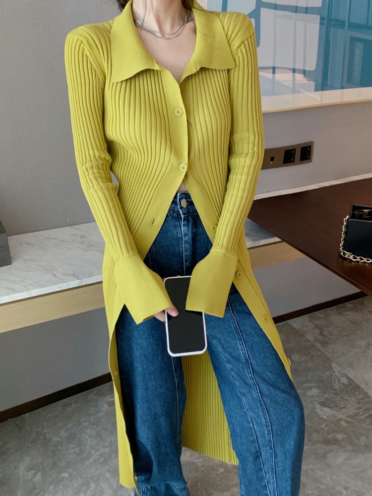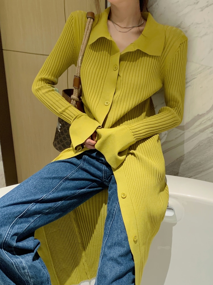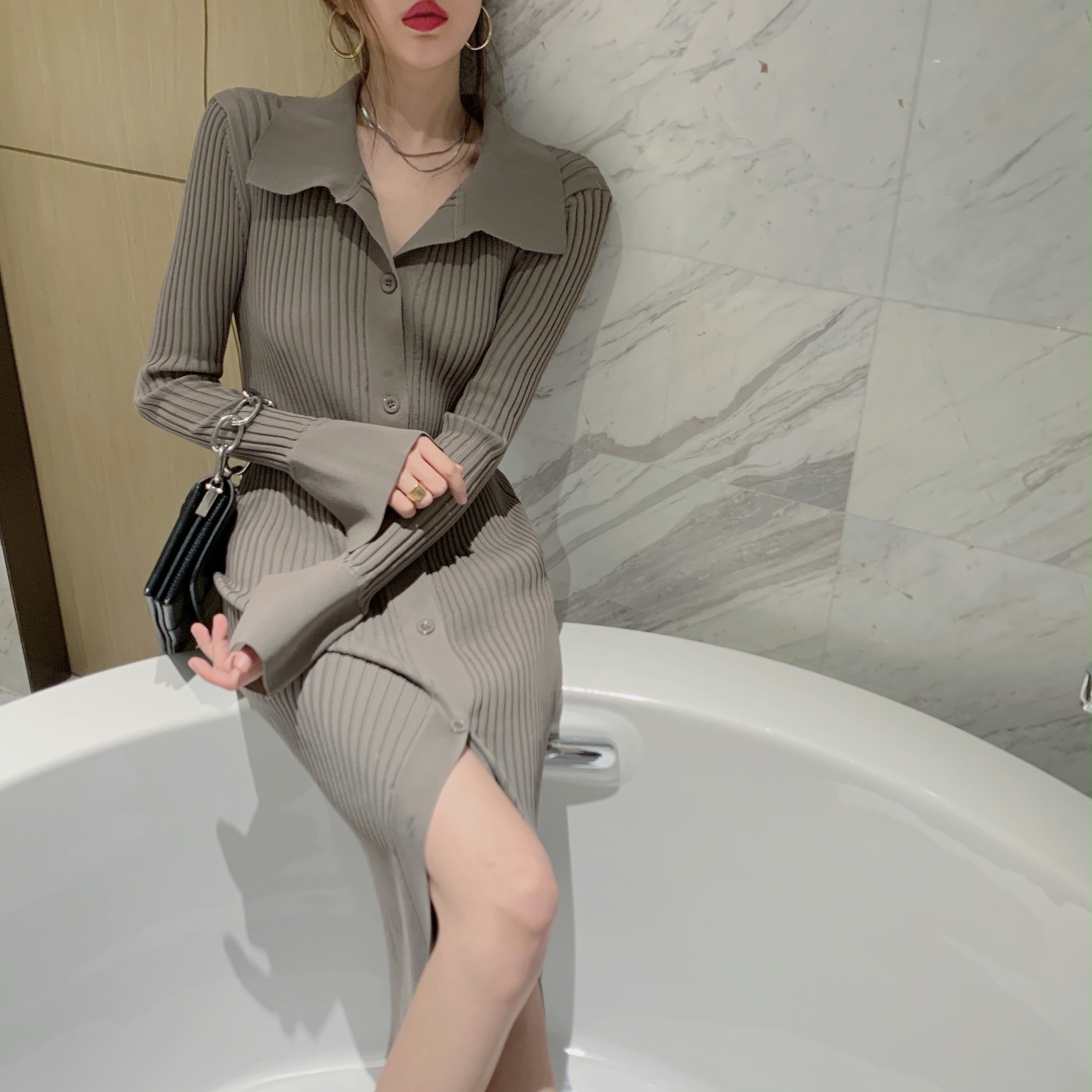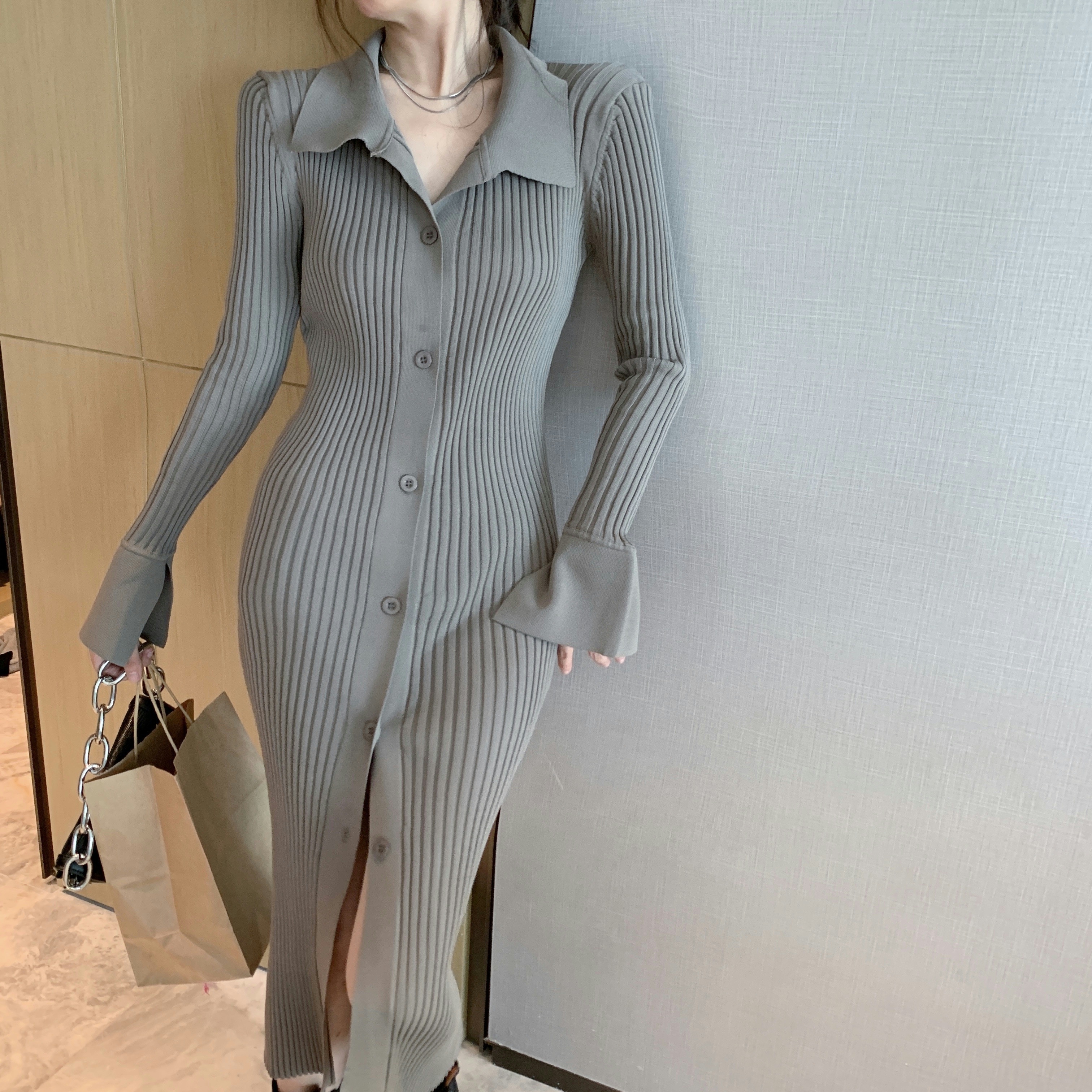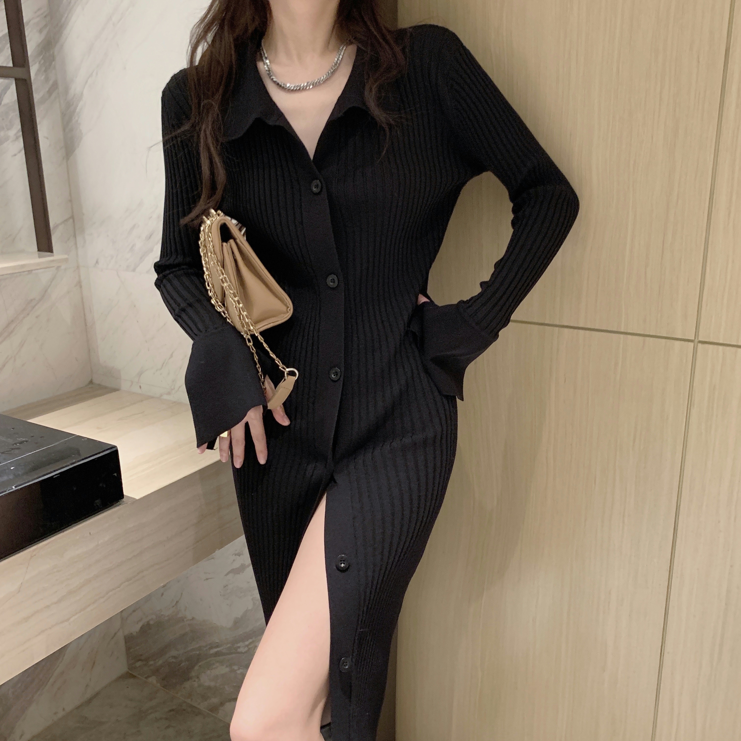 All Products 2022 Autumer Winter Knit Casual Long Sleeve Button Elegant Chic POLO Collar Slim Sweater Dress for Women Vintage Korean Fashion