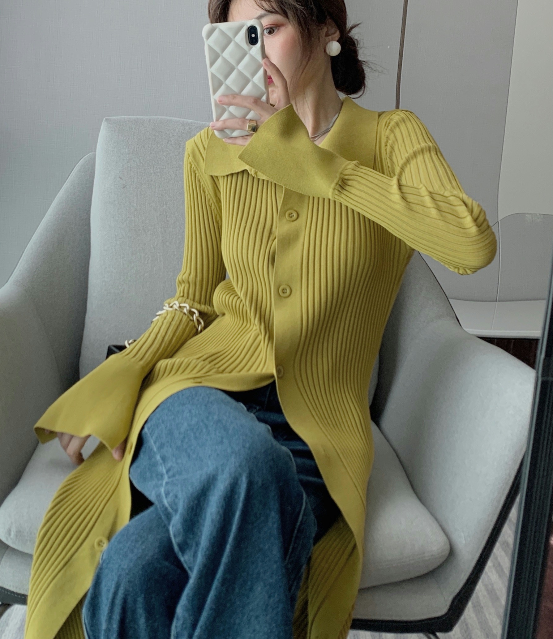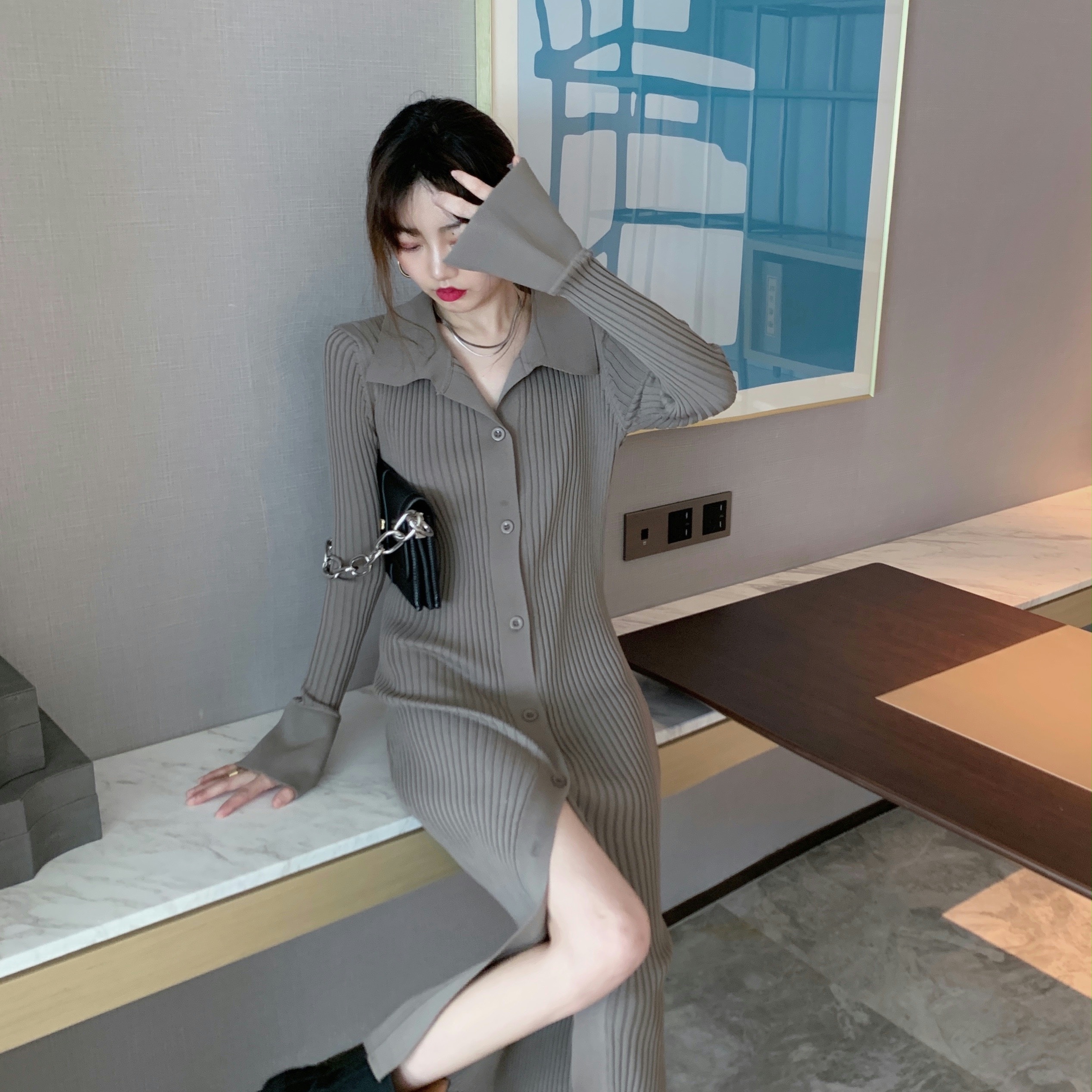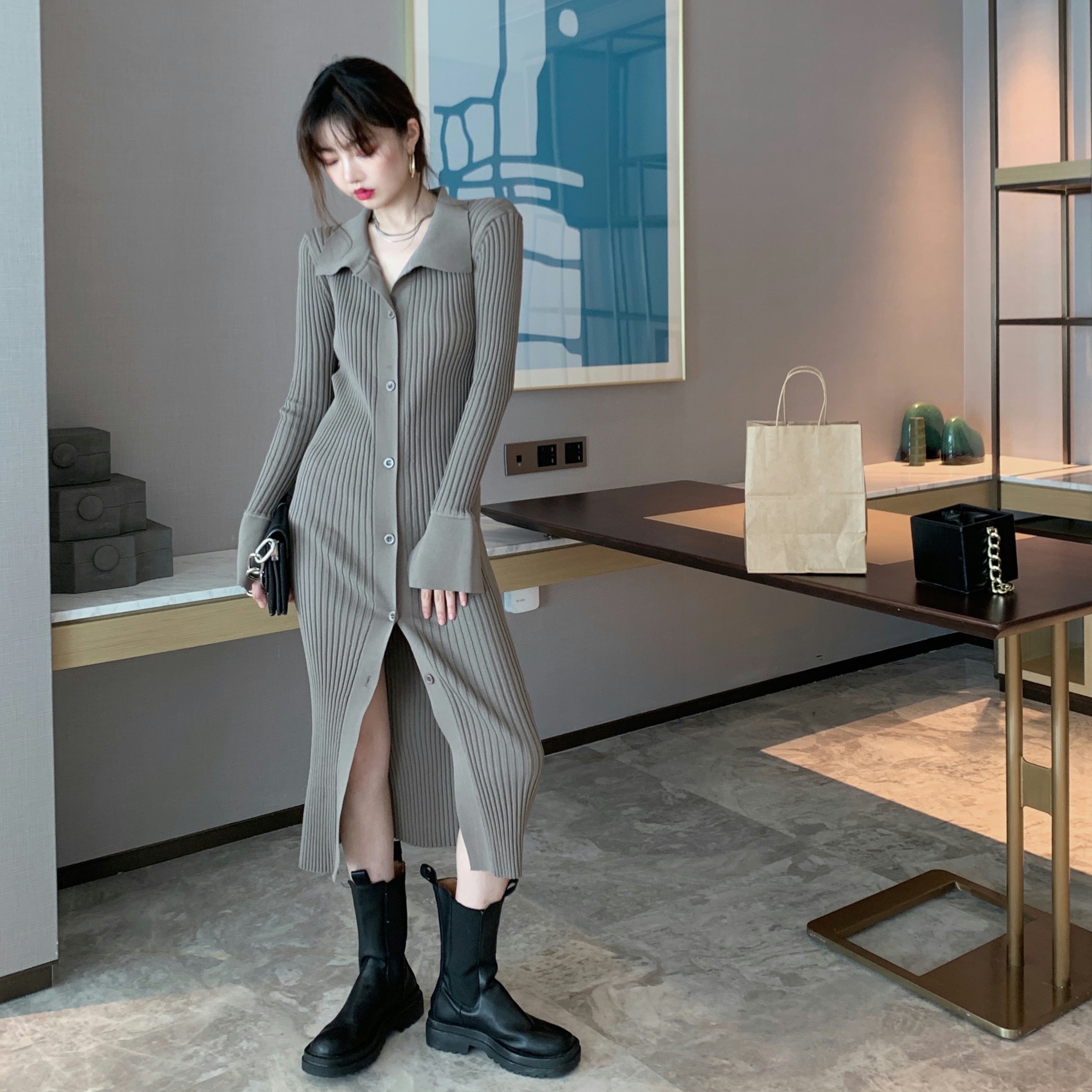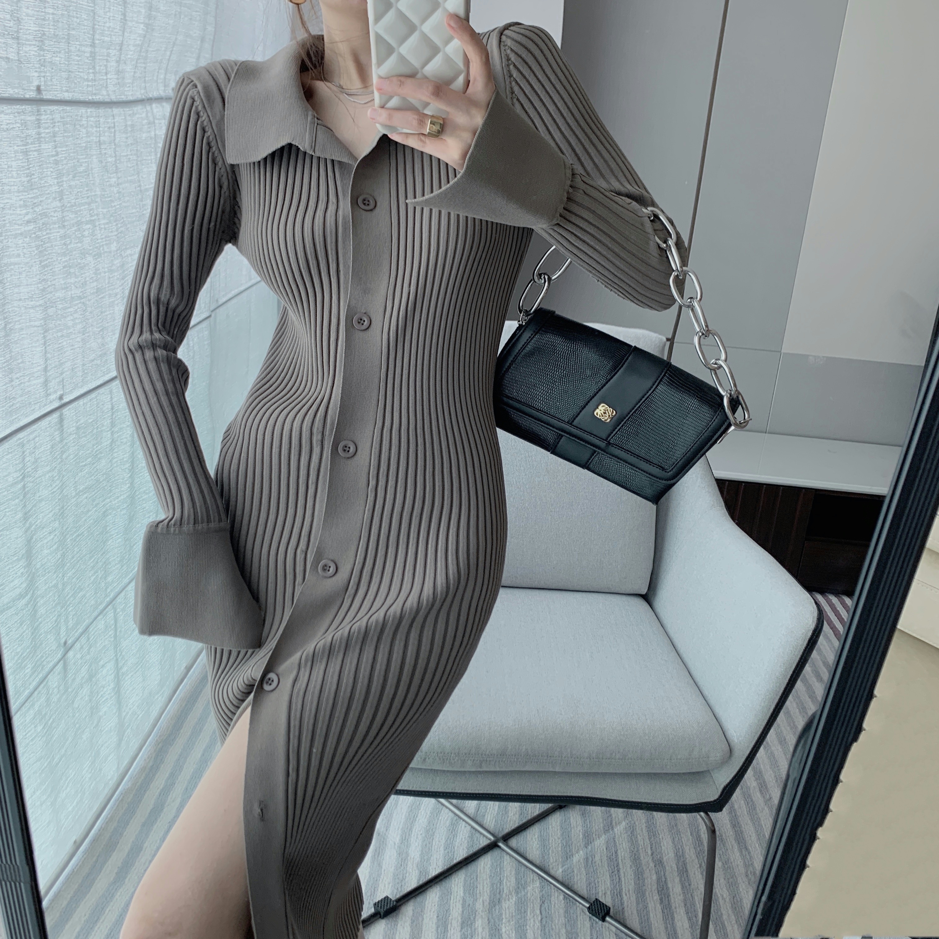 All Products 2022 Autumer Winter Knit Casual Long Sleeve Button Elegant Chic POLO Collar Slim Sweater Dress for Women Vintage Korean Fashion