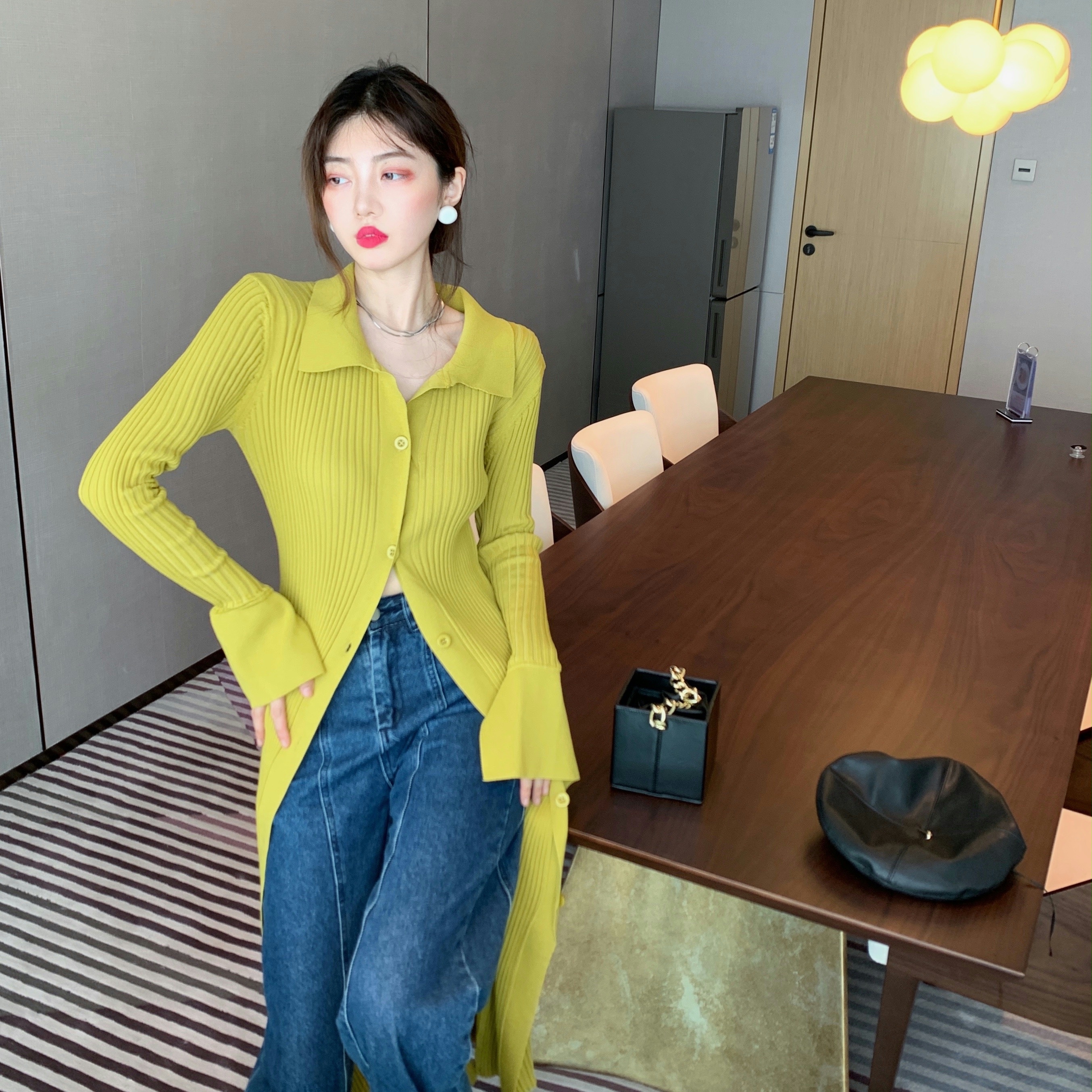 2022 Autumer Winter Knit Casual Long Sleeve Button Elegant Chic POLO Collar Slim Sweater Dress for Women Vintage Korean Fashion