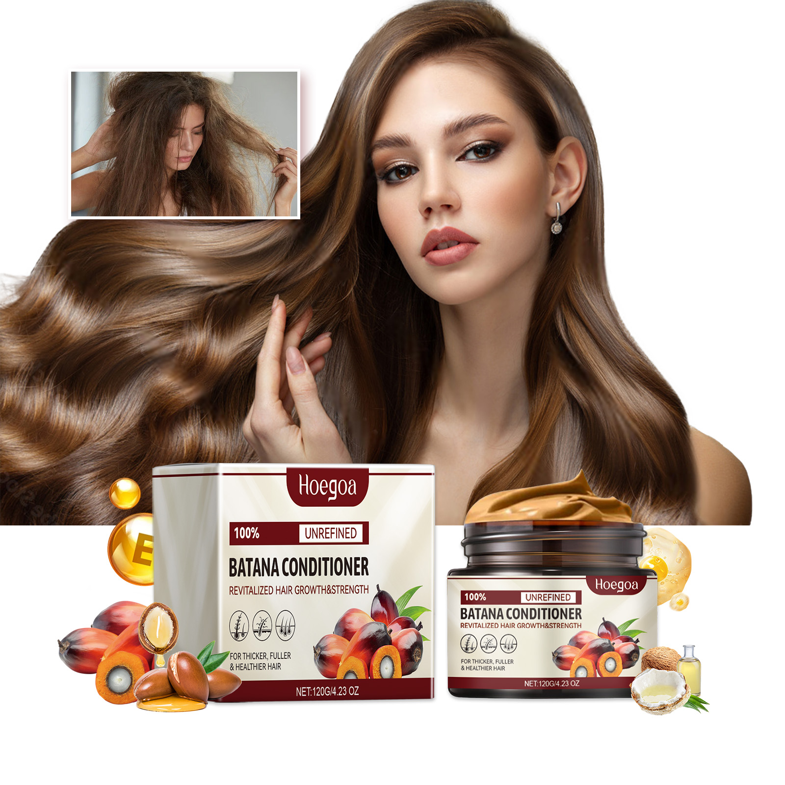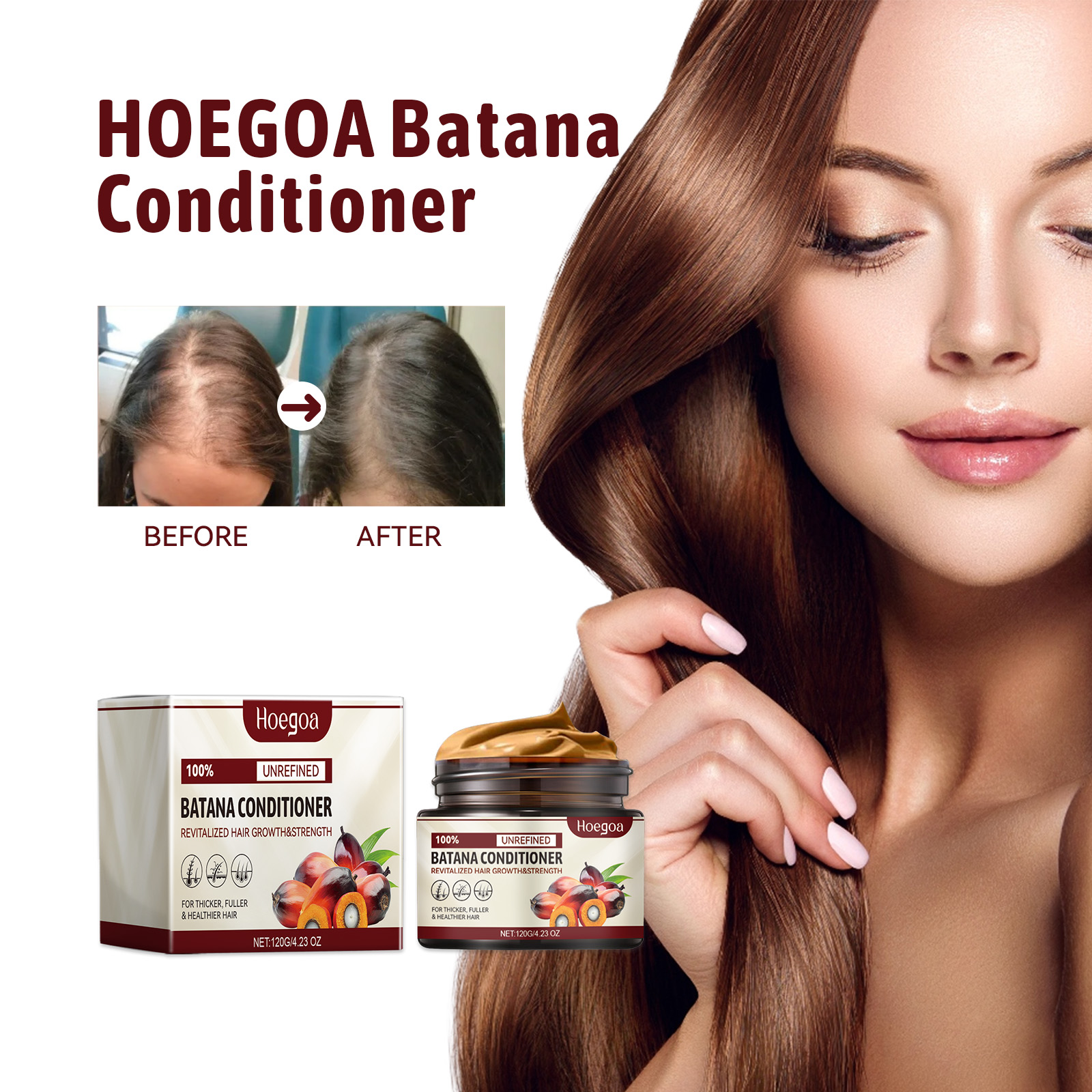 Our Batana conditioner contains polyquaternium-7, polydimethylsiloxane. It can provide long-lasting moisturizing that locks in moisture and leaves hair with volume and shine. Its use method is very simple: 1. Wash and dry your hair. 2. Apply appropriate amount to hair and scalp. 3. Gently massage until absorbed, and then rinse with water. And rich in nutrients, it effectively promotes hair growth, creating stronger roots and thicker hair.