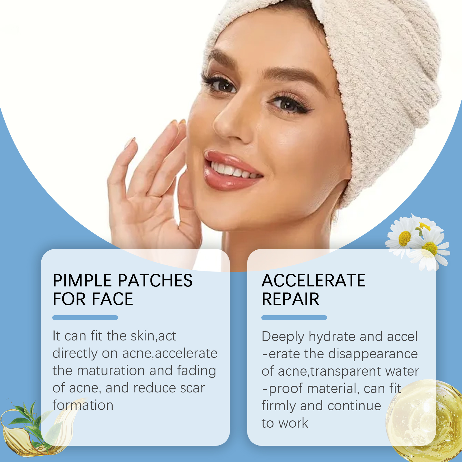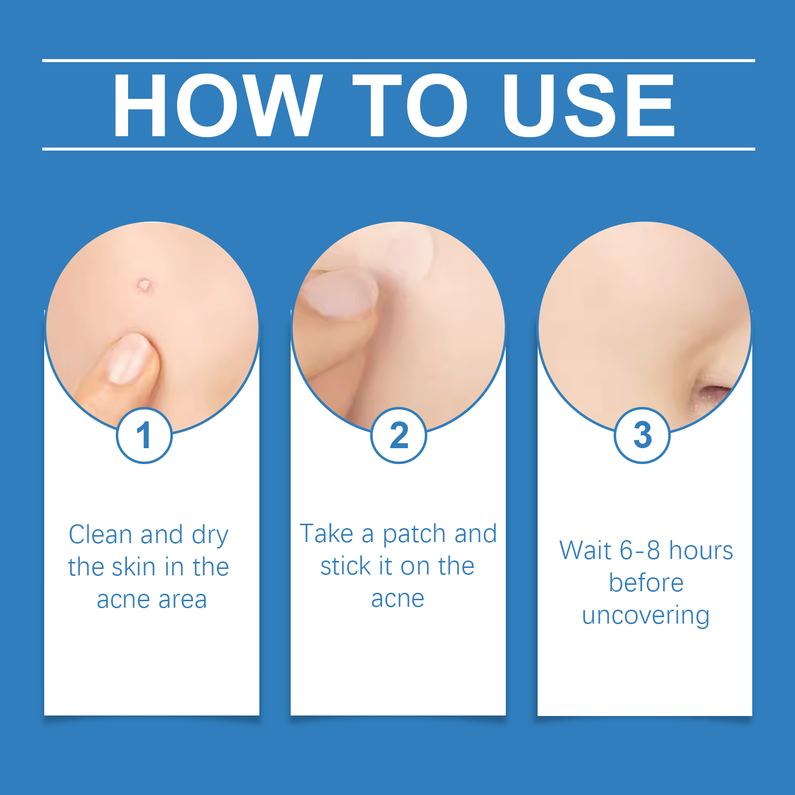 Our acne strips contain polyvinyl chloride. It relieves redness, calms skin and reduces discomfort, fights oxidation, repairs damaged skin and prevents scar formation. Its application is simple: clean and dry the skin on the acne area, take a patch and apply it to the pimple, and wait 6-8 hours before uncovering it. And it can fit the skin, directly act on acne to accelerate the maturity and regression of acne, and reduce the formation of scars.