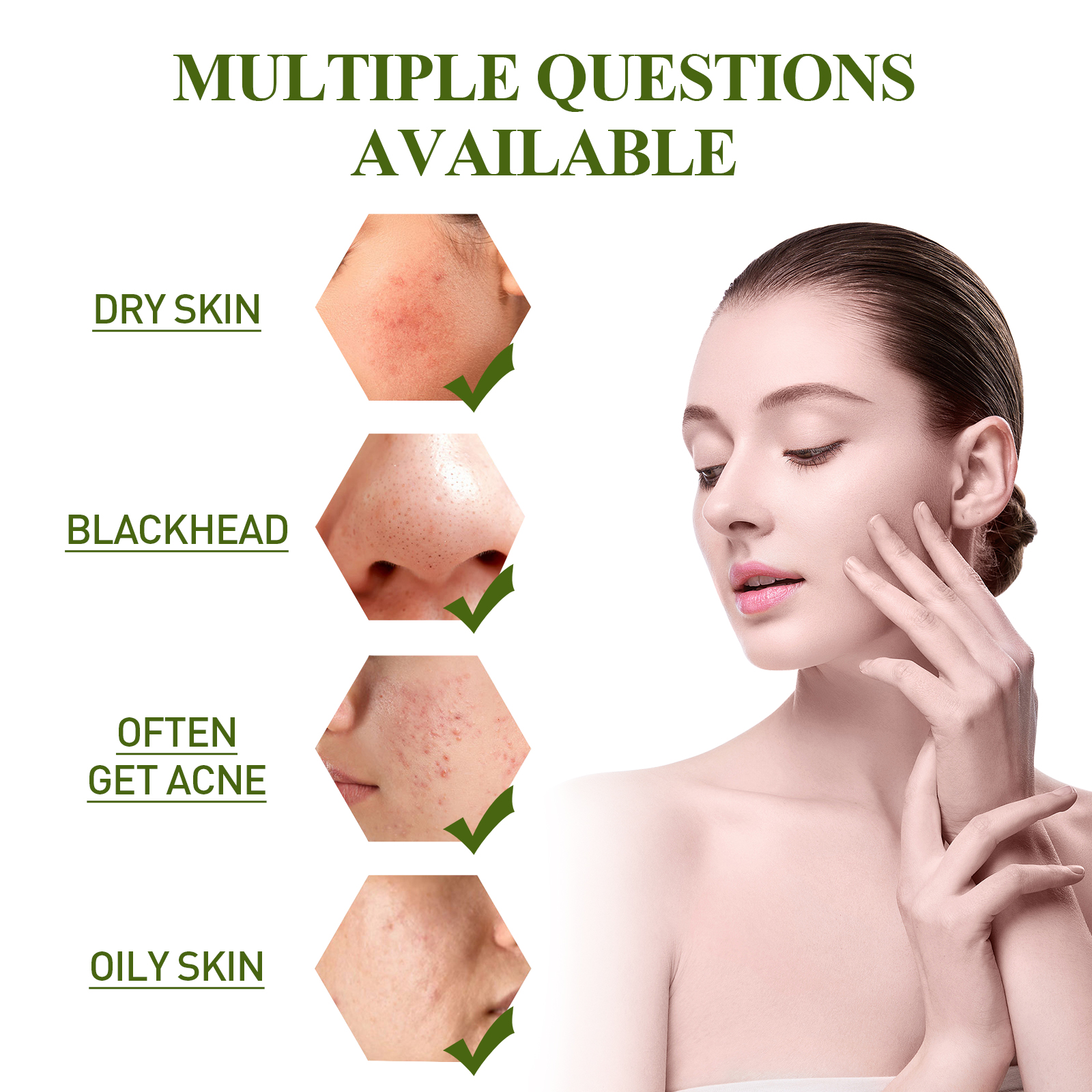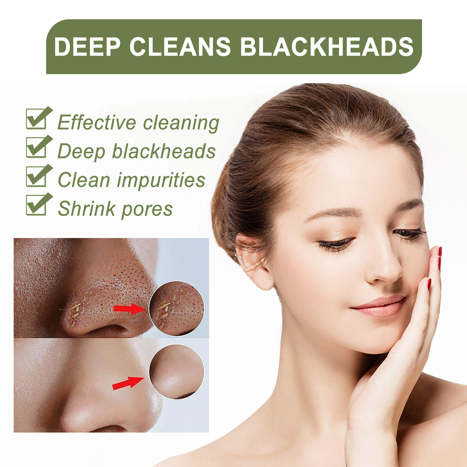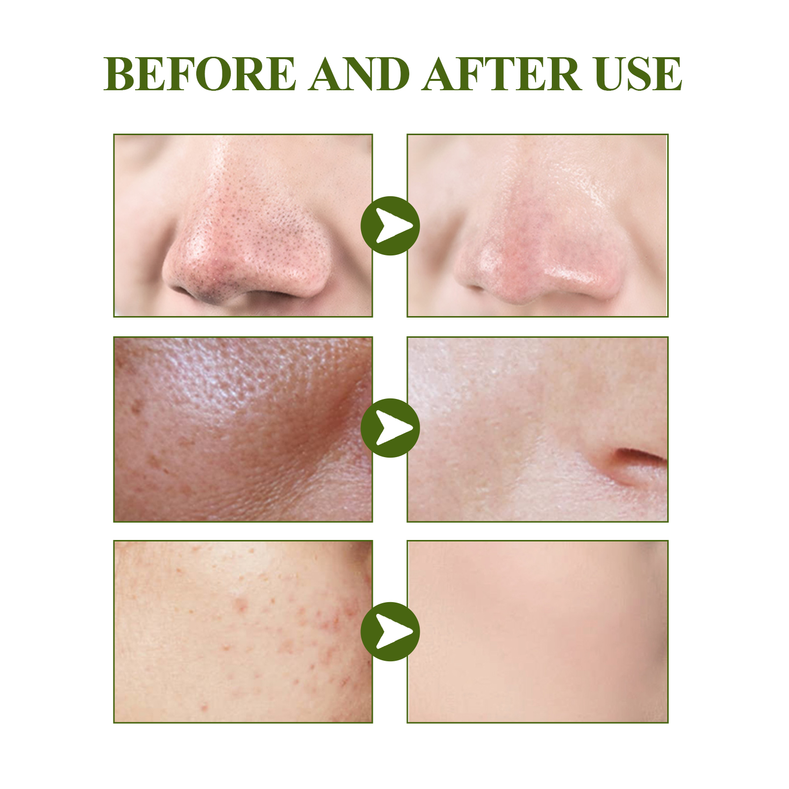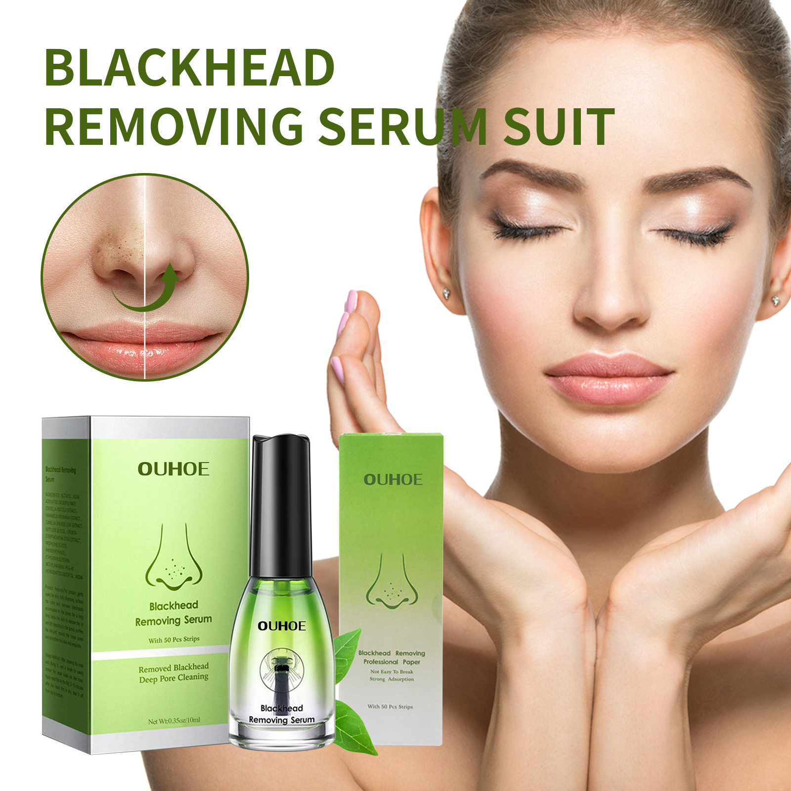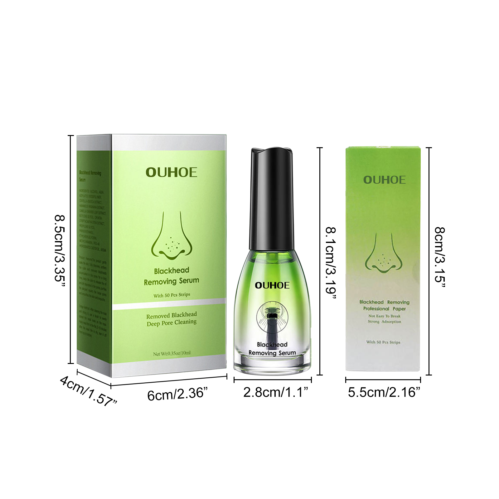 Our Blackhead Removing Serum Suit contains tea tree oil, lanolin wax and castor oil. It can gently and effectively remove blackheads and whiteheads. Refine and shrink pores, clean dirt, balance oil, effectively improve clogged pores, soothe skin, and make skin clean and smooth. The way to use it is very simple: clean and dry the face skin, apply a hot towel to the nose, remove the towel, use a brush to evenly apply the serum to the nose, and then stick the nose sticker on the nose, 5-10 minutes later, tear the nose sticker from top to bottom. After use, it helps to remove blackheads, shrink pores, soothe skin and make skin clean and smooth.