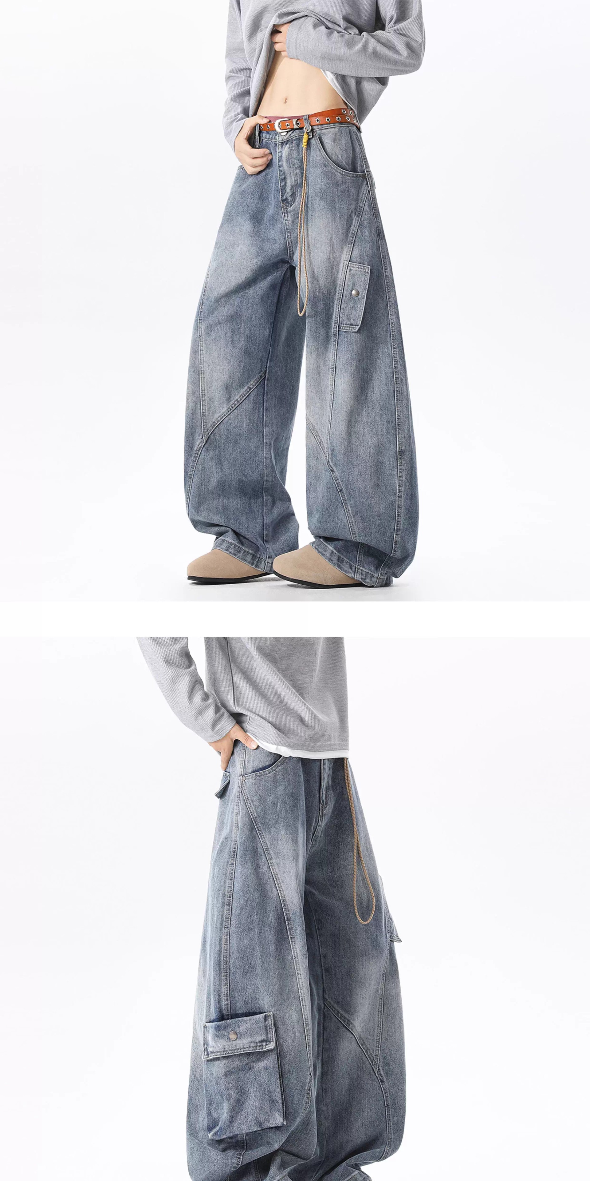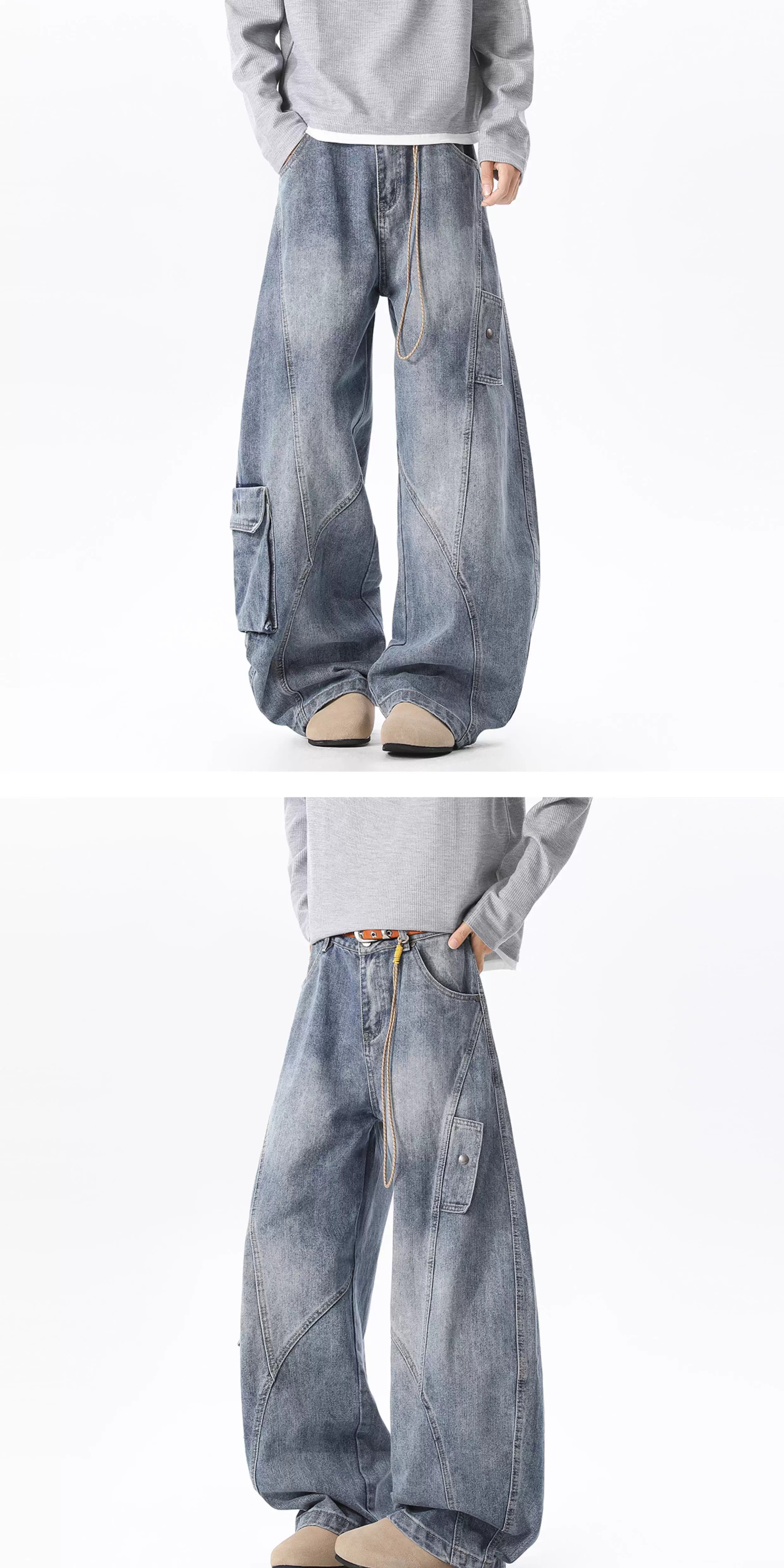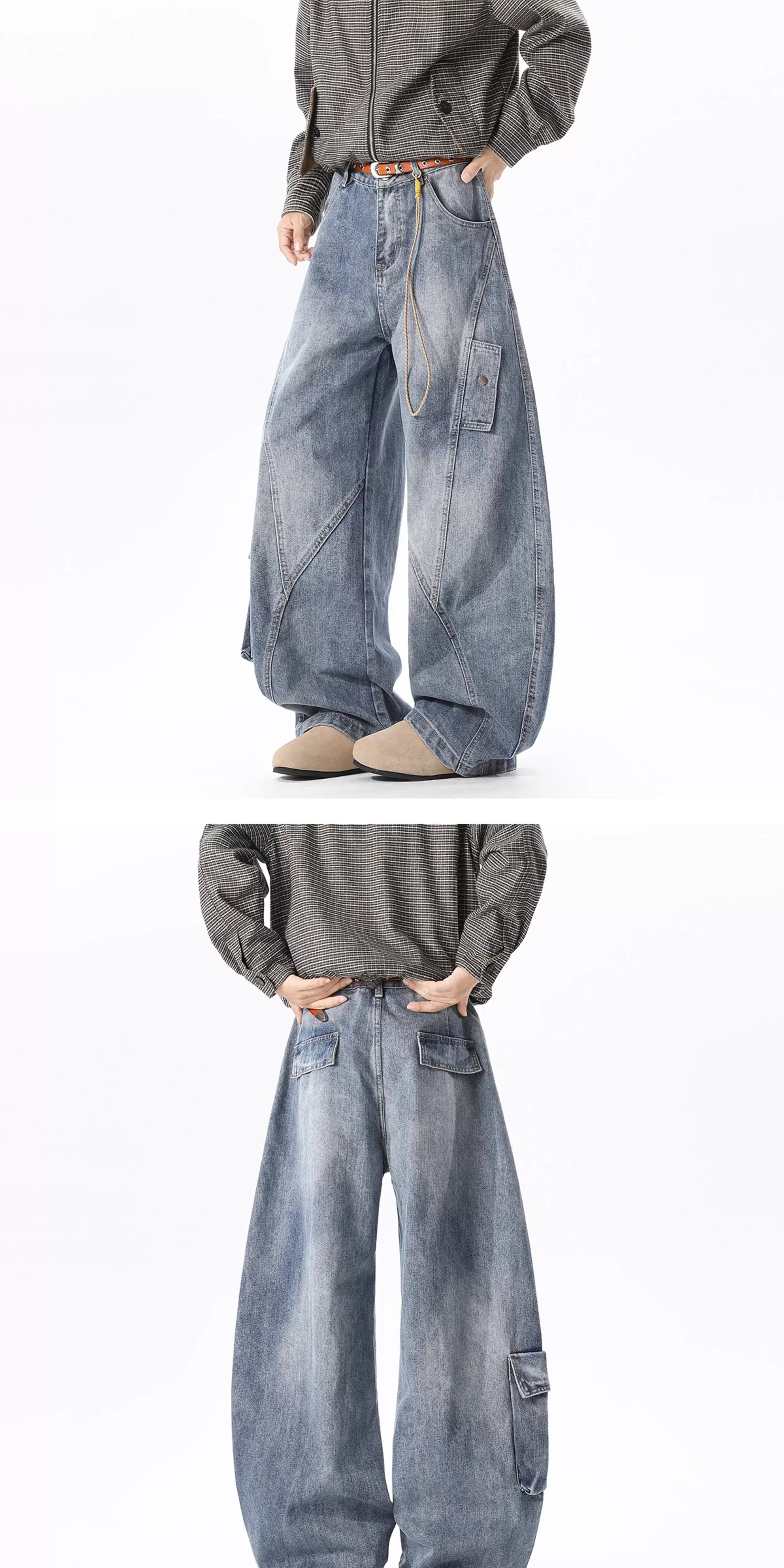 Details: Stitched Topstitching, Washed & Distressed