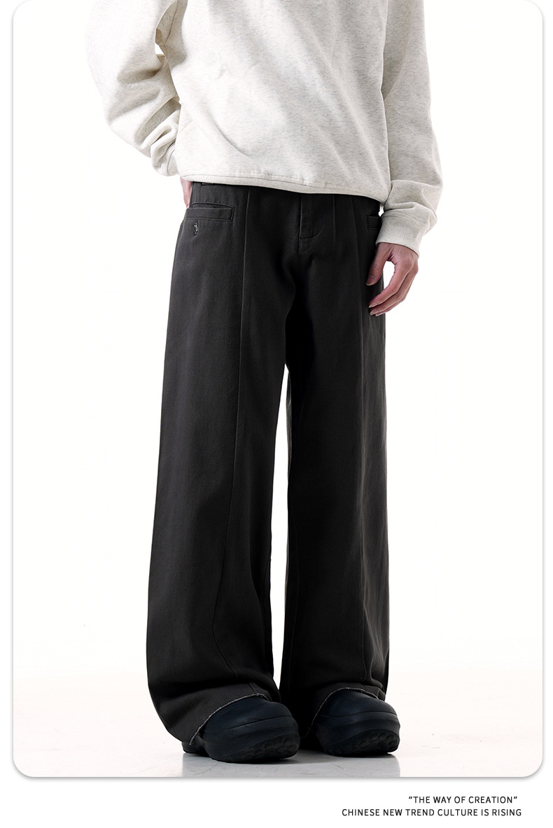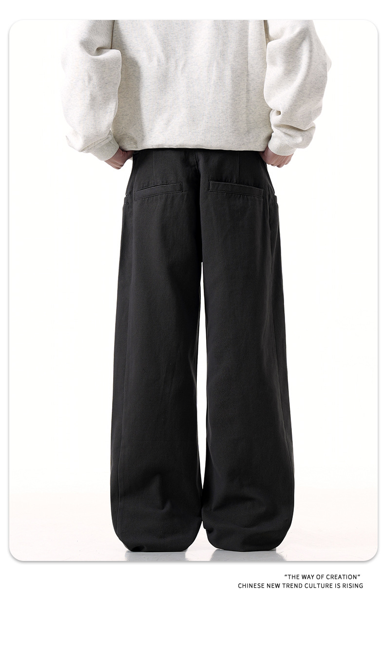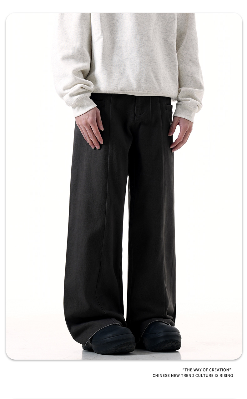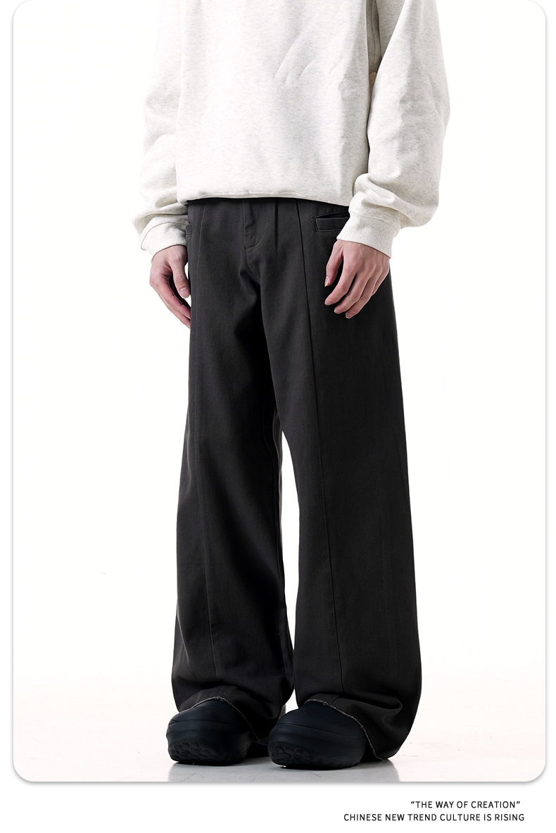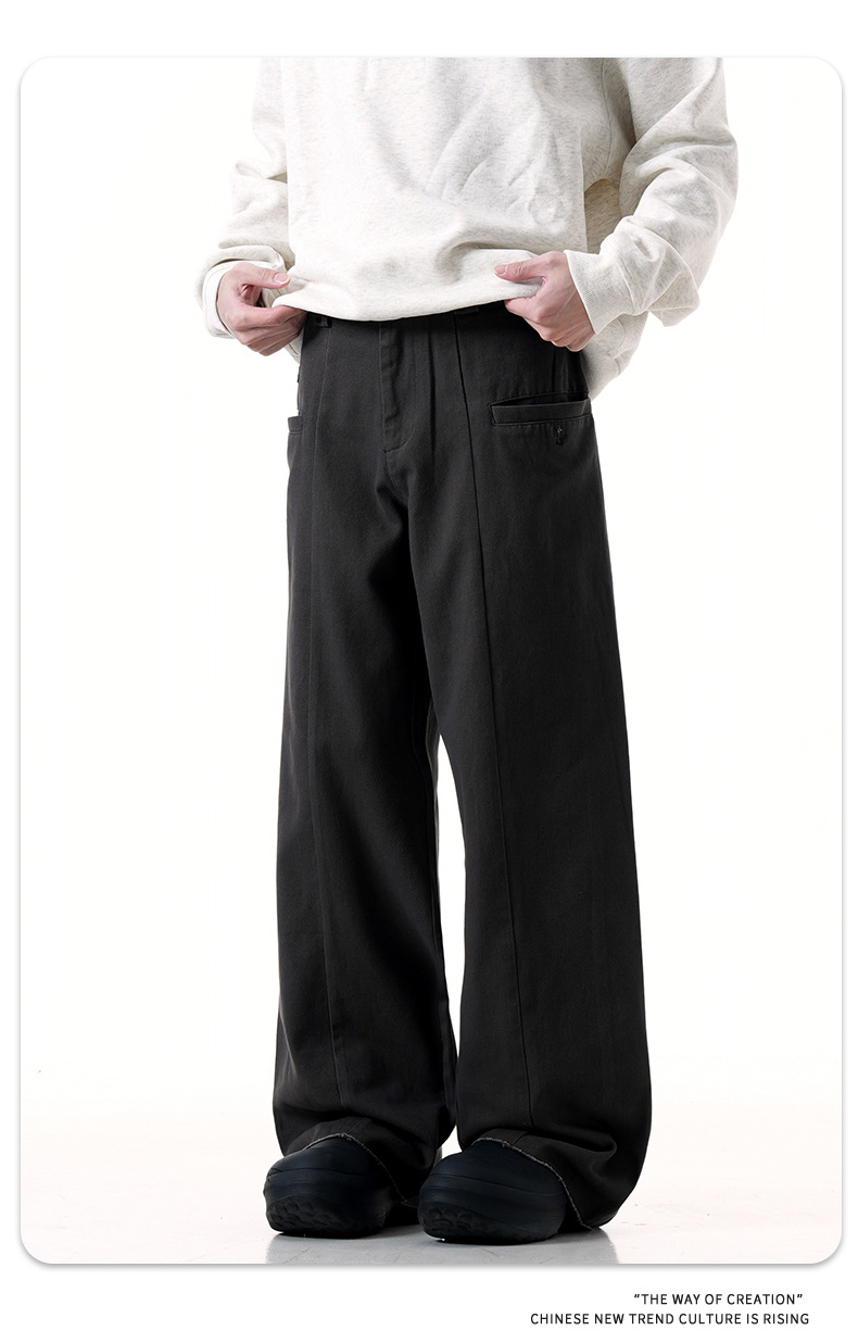 American cement grey suit work pants for men and women, new retro vintage style, straight tube, loose fit, slimming casual pants, trendy