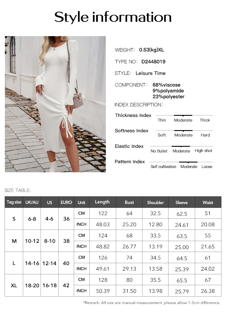 Autumn and winter European and American women's clothing temperament sexy bag hip round neck slit dress