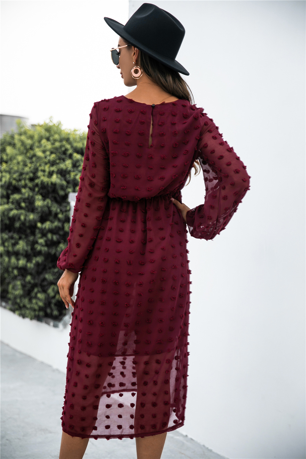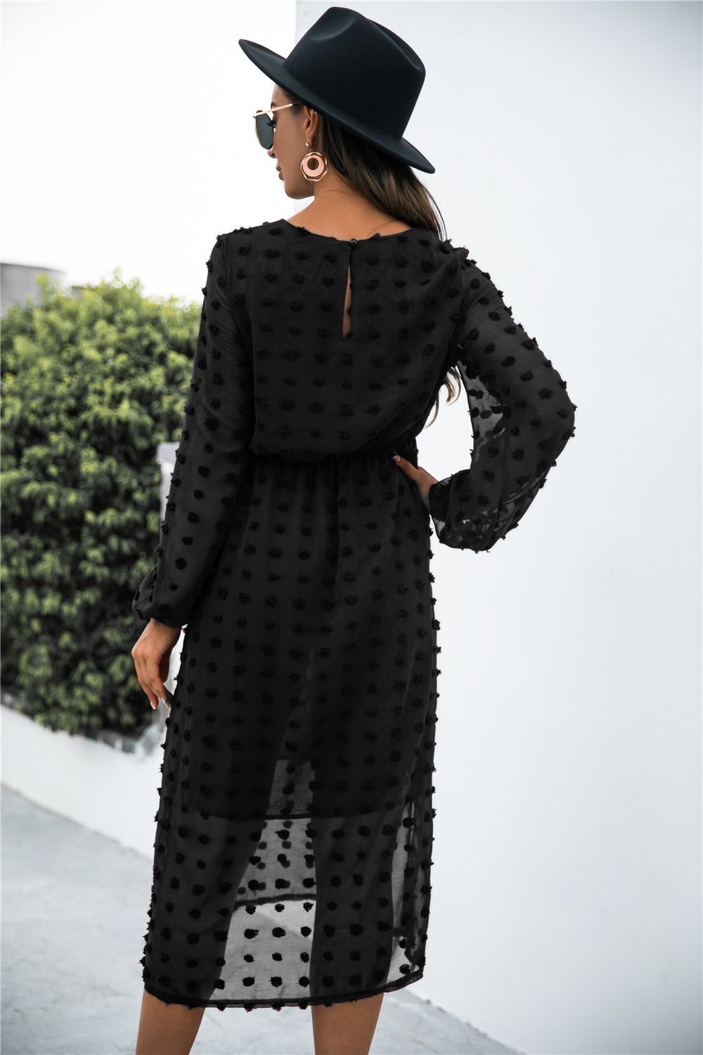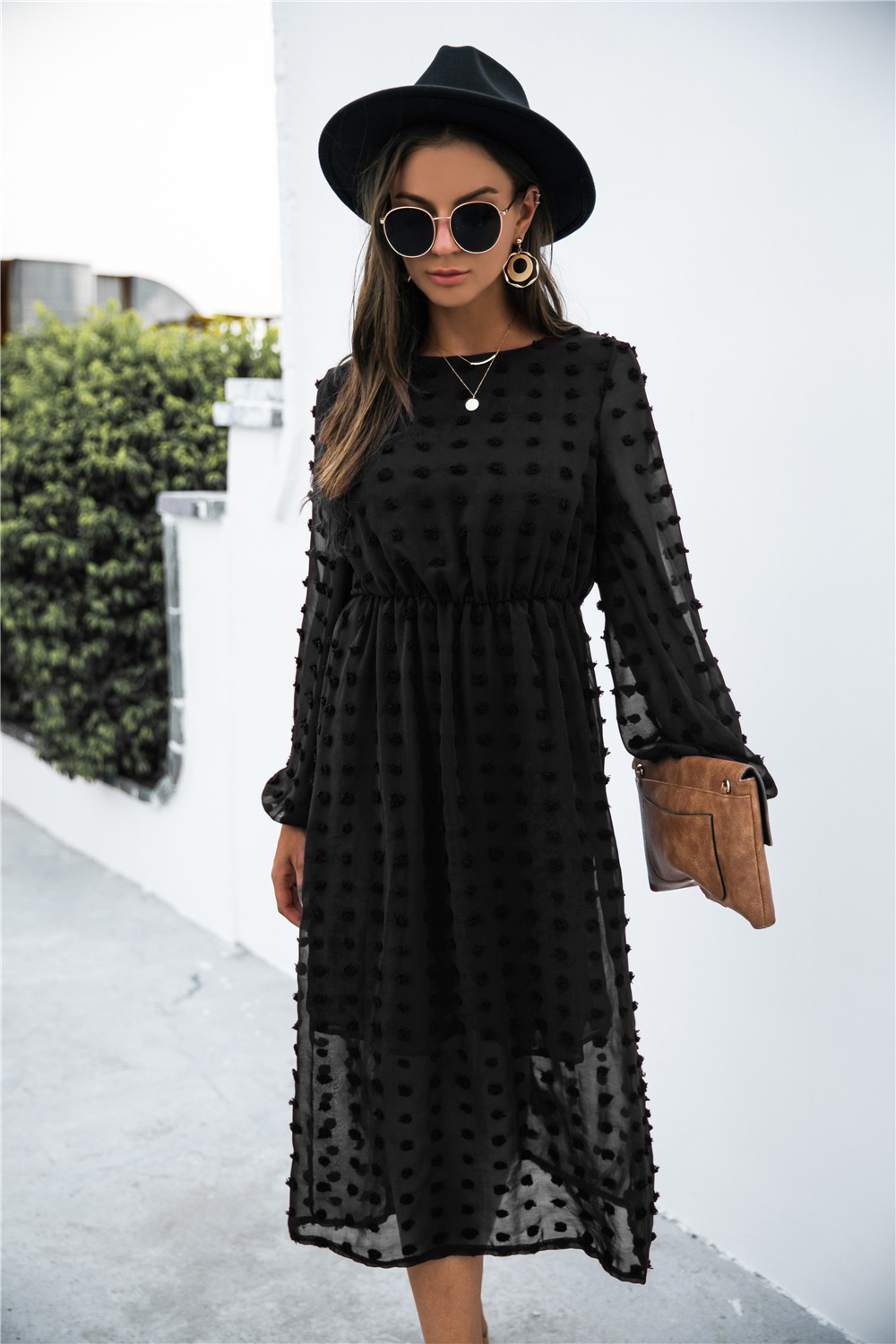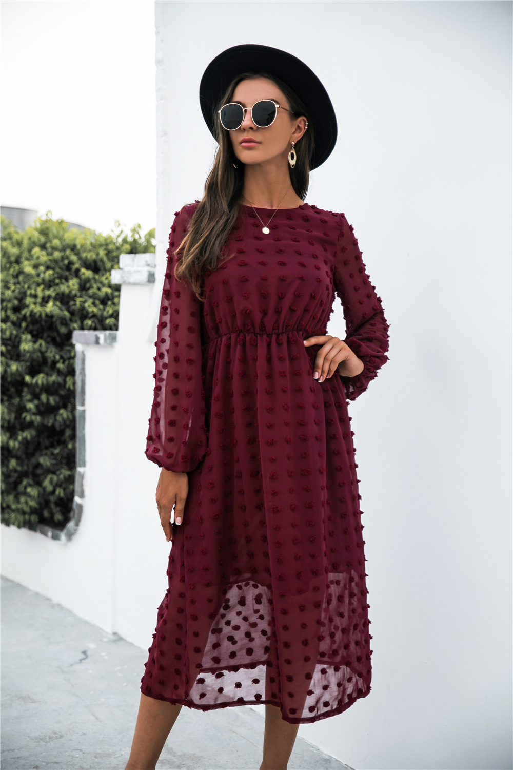 Product Name: Long Sleeve Jacquard Puff Dress