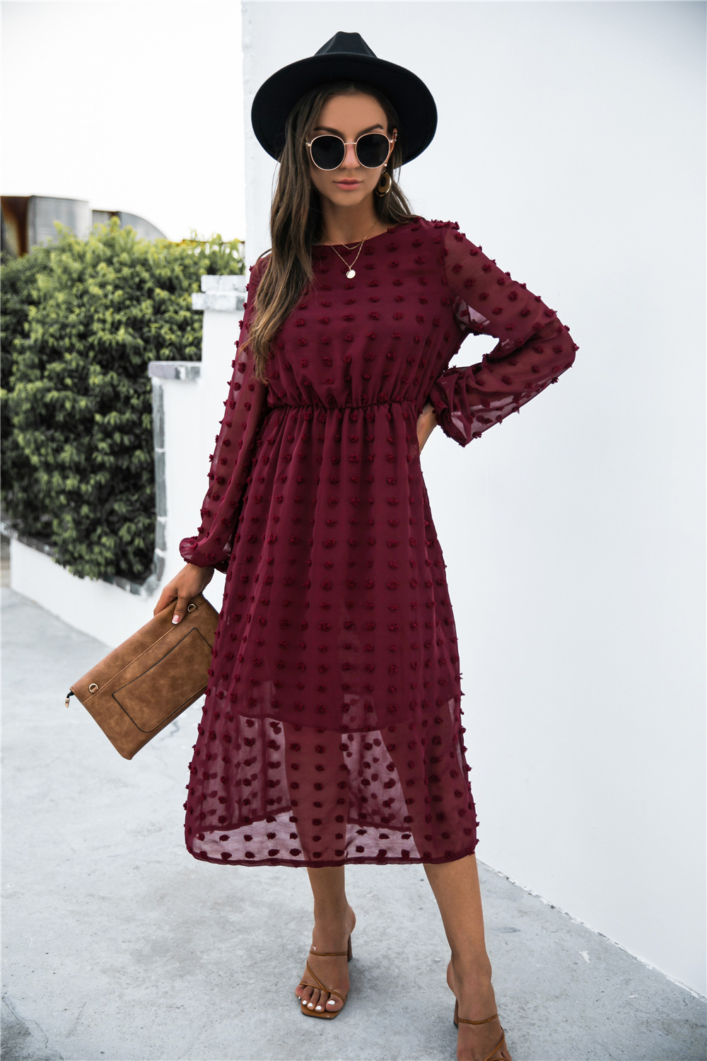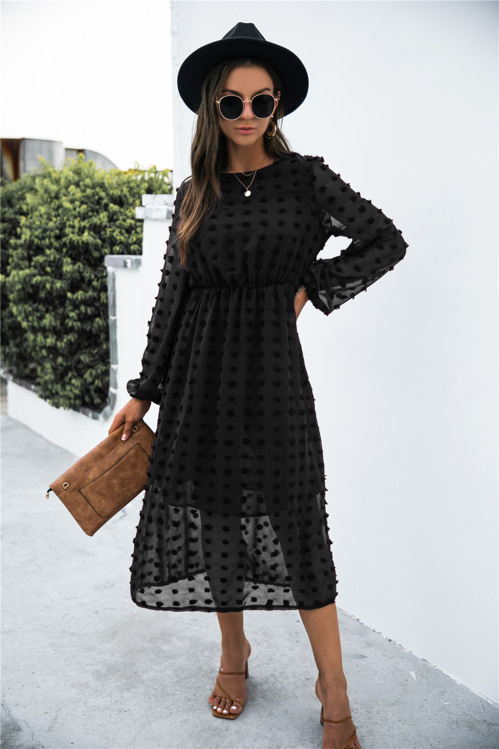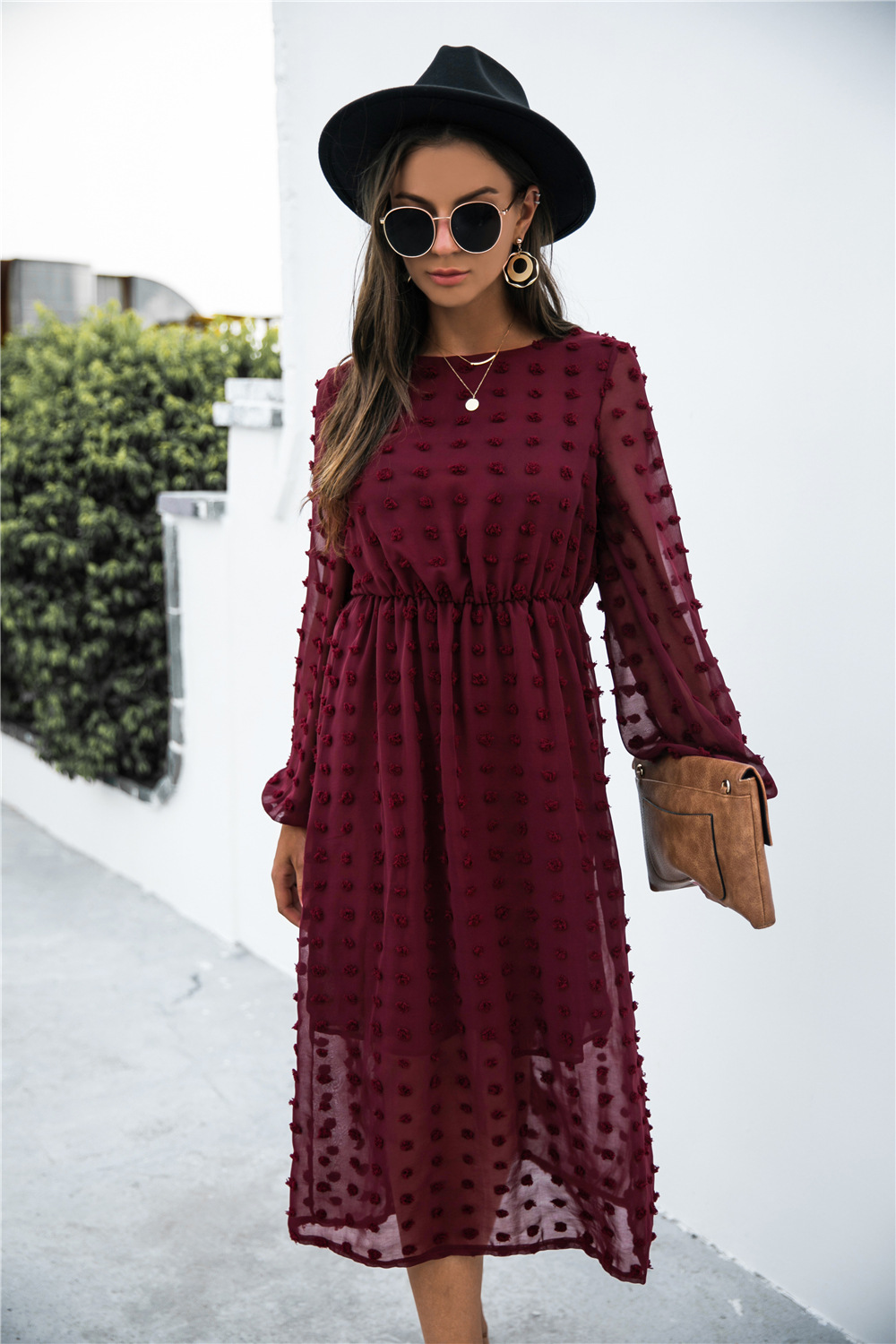 Product Name: Long Sleeve Jacquard Puff Dress