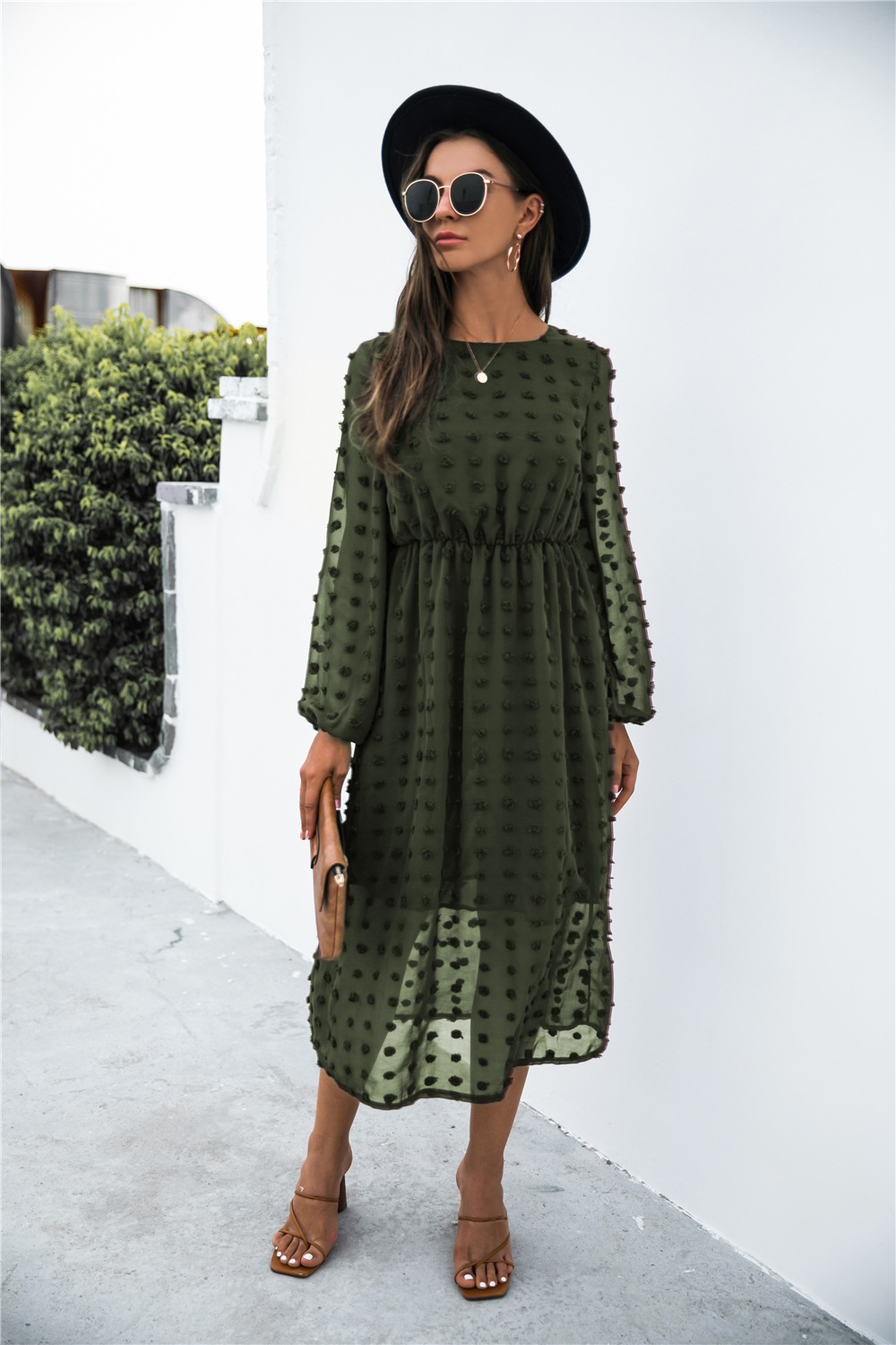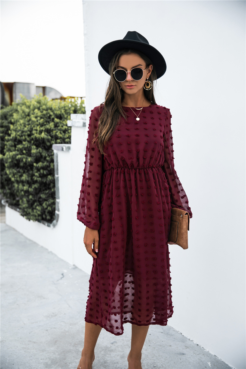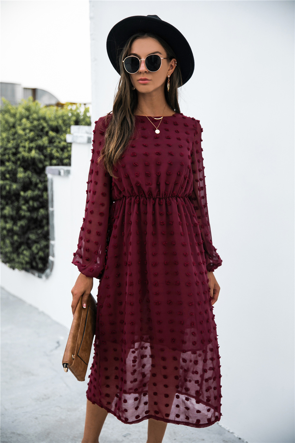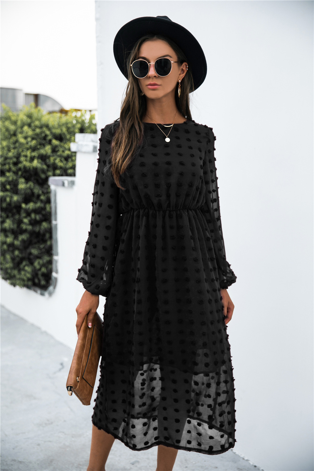 Product Name: Long Sleeve Jacquard Puff Dress