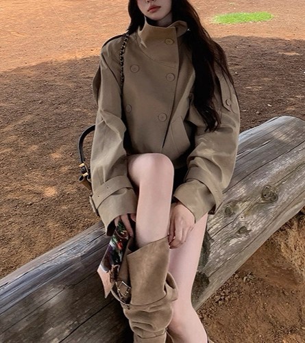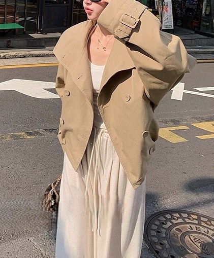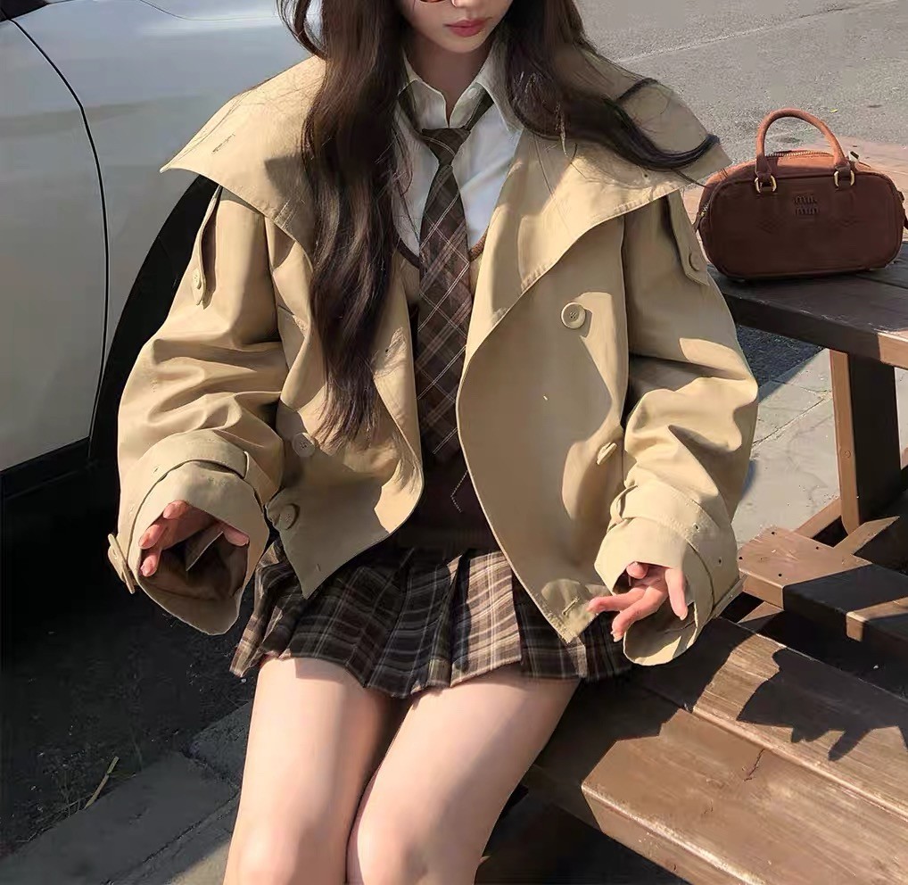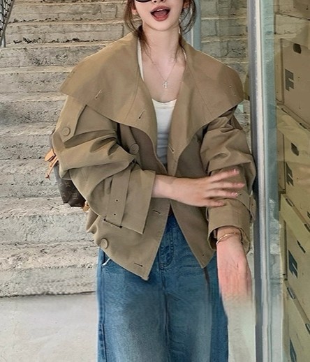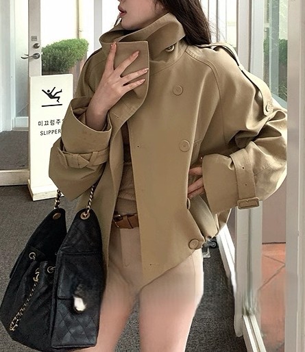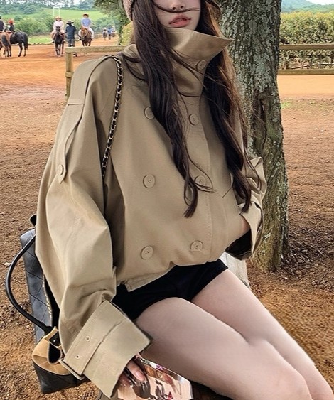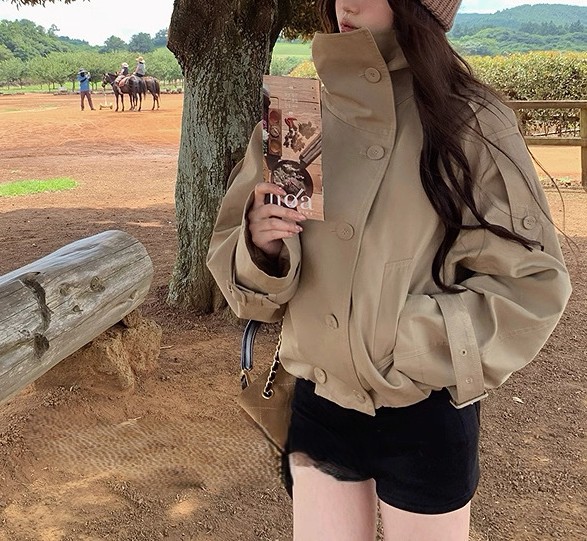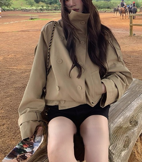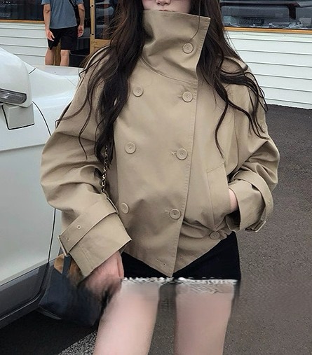 陈佳楠NNS Ac*e25秋季新款英伦风 设计感立领短款韩系风衣外套女