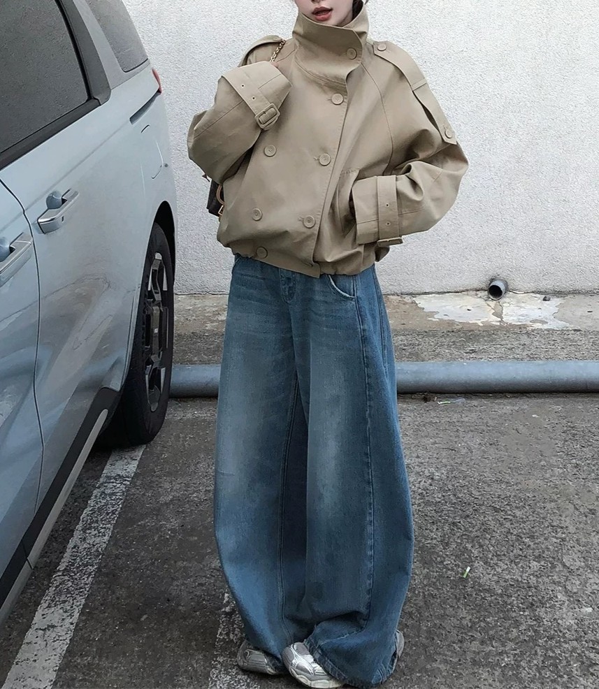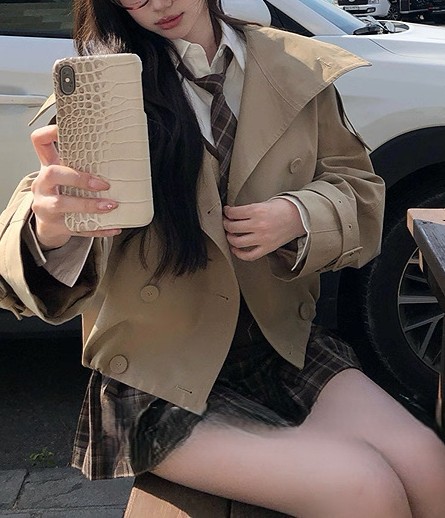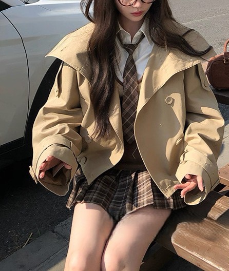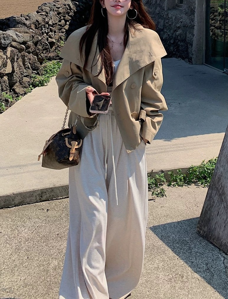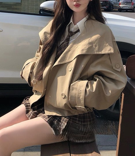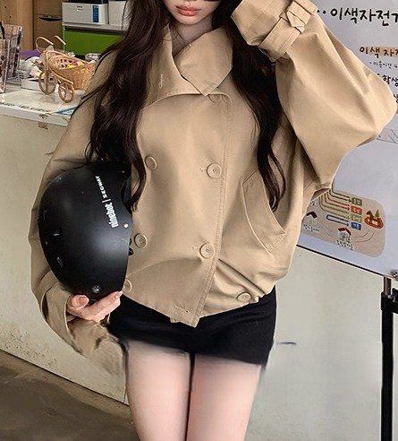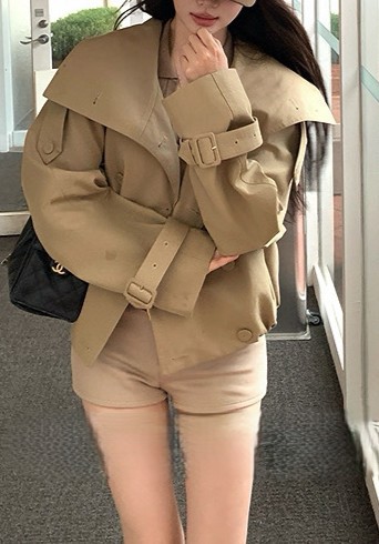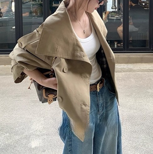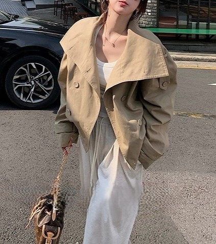 陈佳楠NNS Ac*e25秋季新款英伦风 设计感立领短款韩系风衣外套女