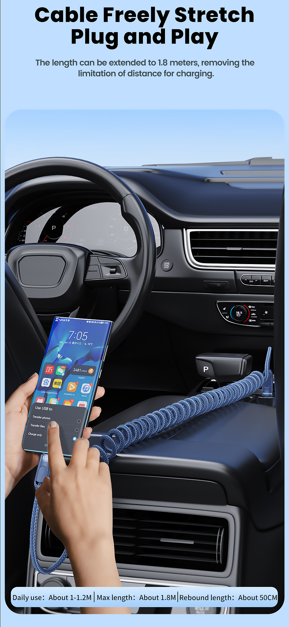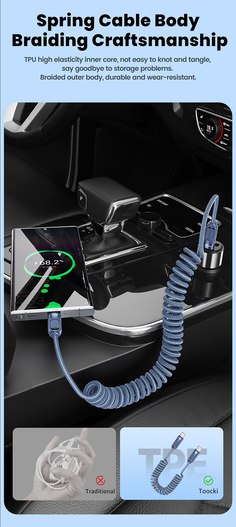 Material: Aluminum alloy+braided wire+TPE+TPU