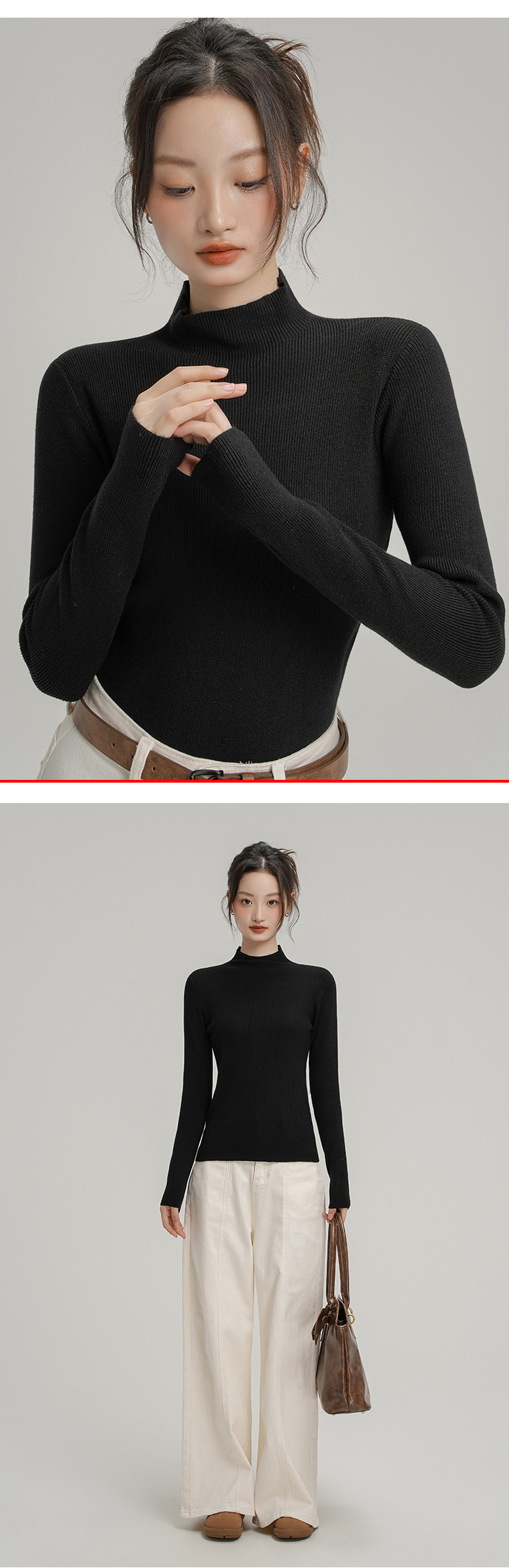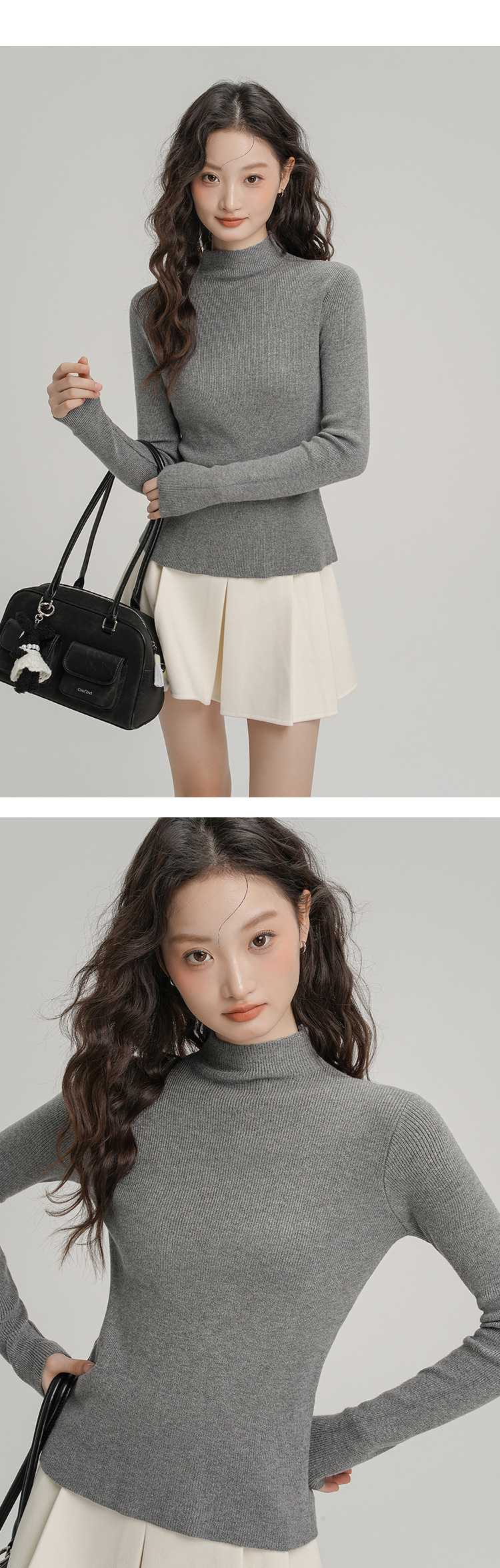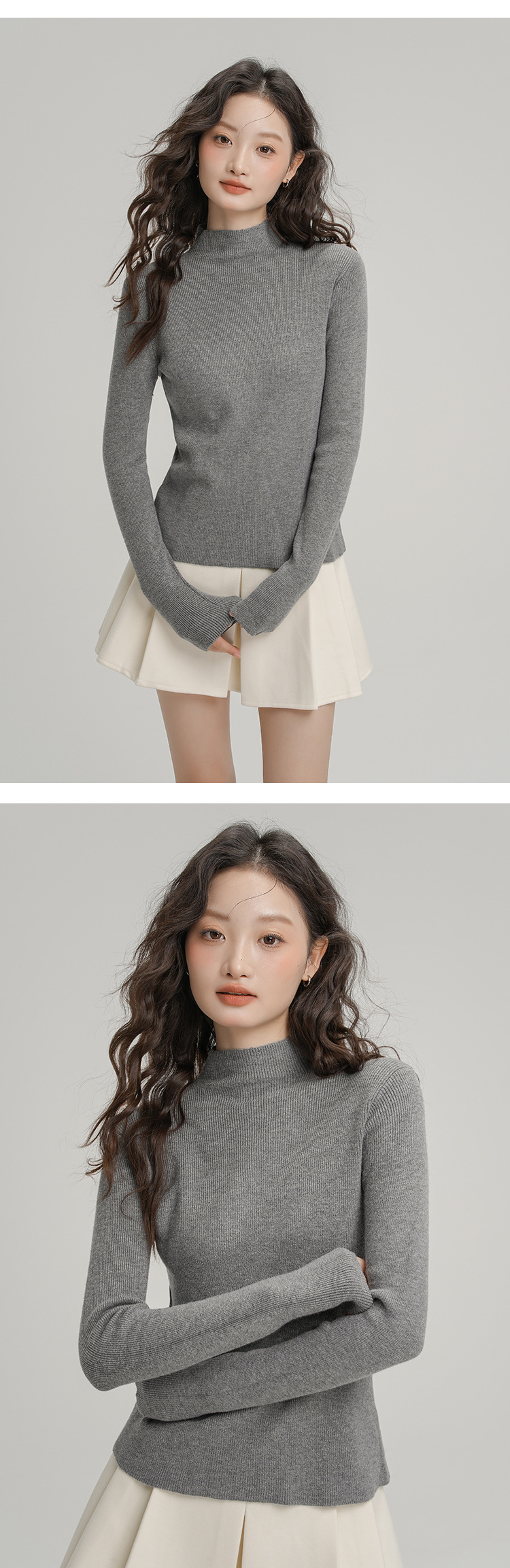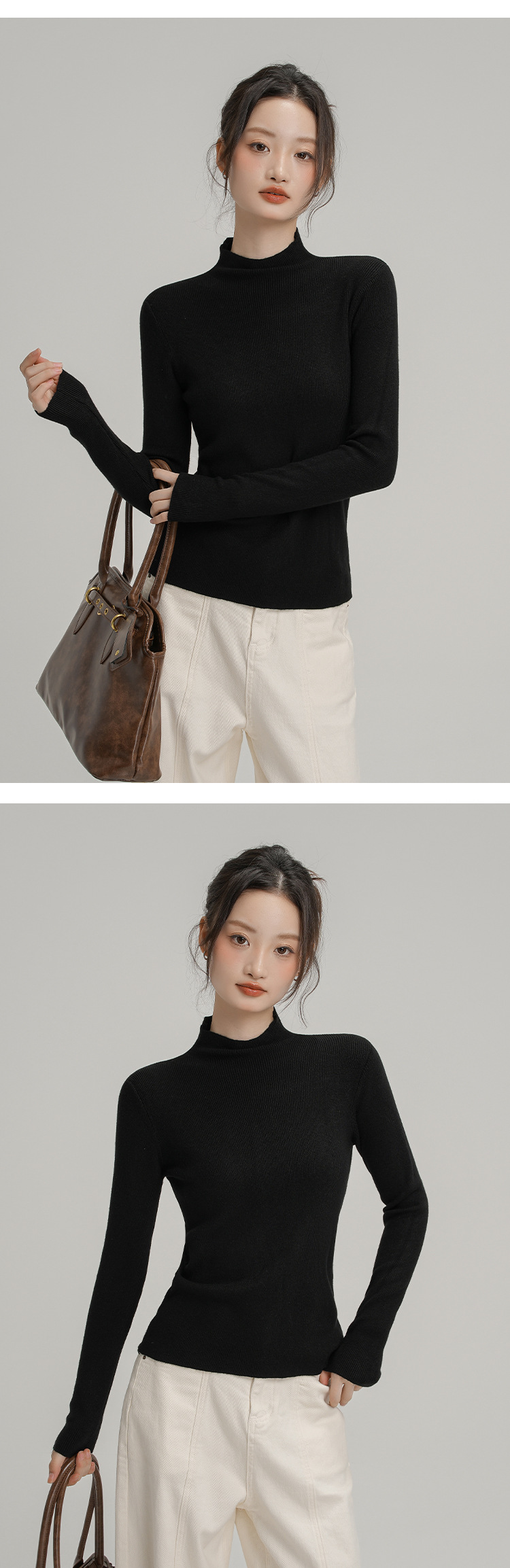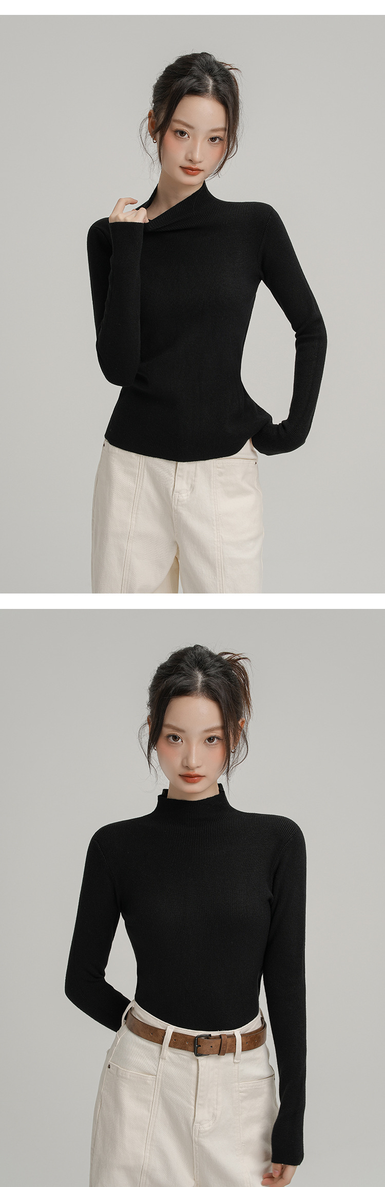 Neckline: Half high collar