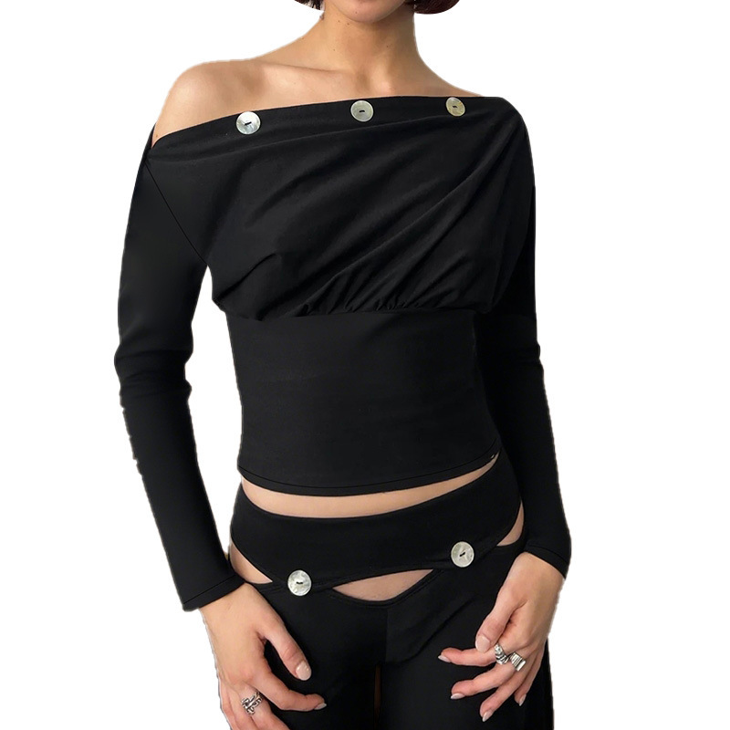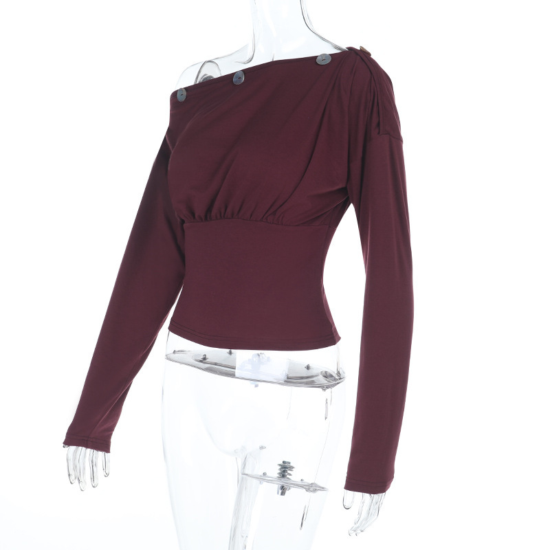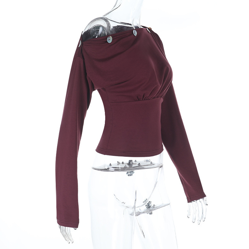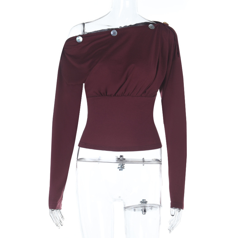 Neckline: Asymmetrical shoulder collar