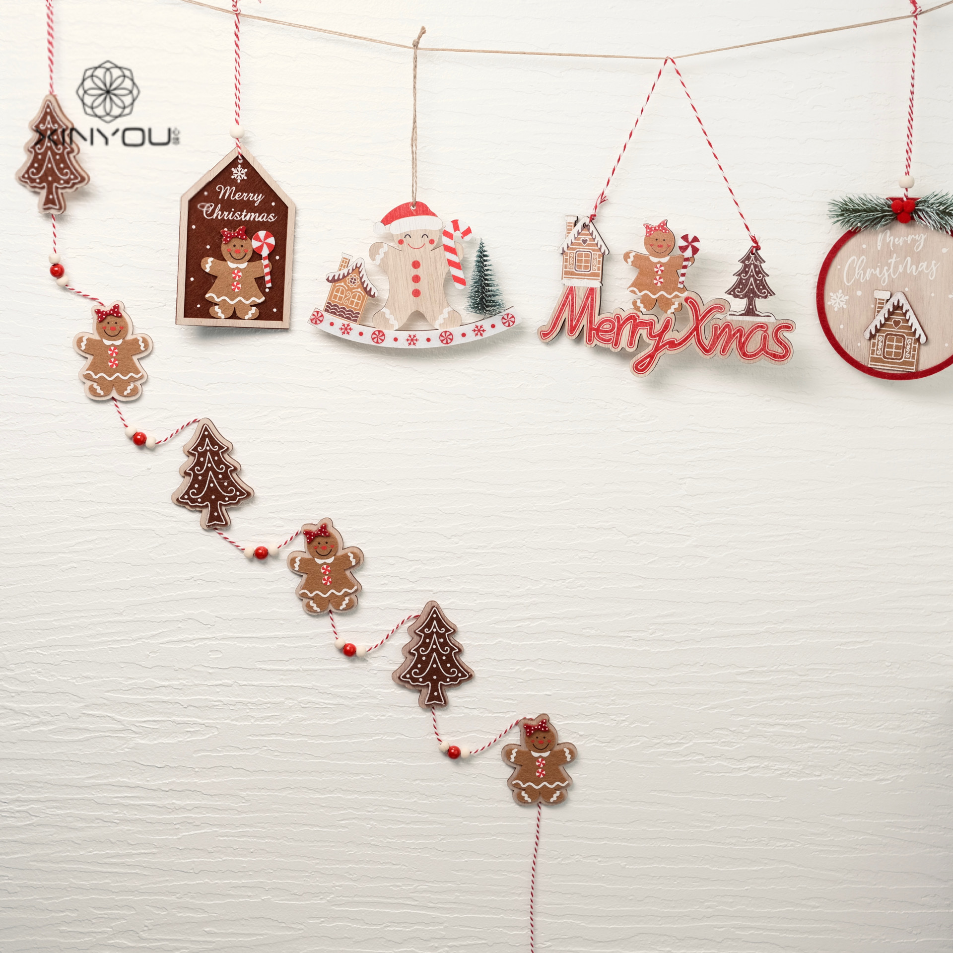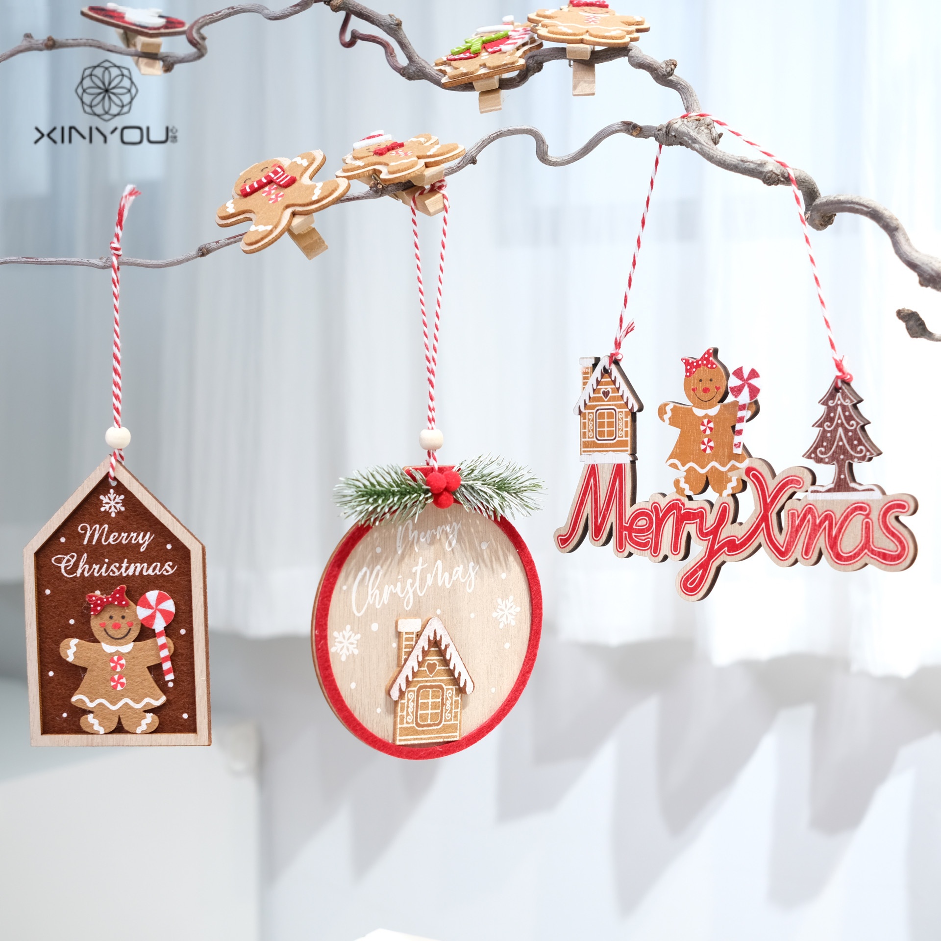 Specification: Lollipop Gingerbread Man [No.1] 1 piece, Wheel Gingerbread Man [No.2] 1 piece, Letter Gingerbread Man [No.3] 1 piece, Round Snow House [No.4] 1 piece, Tree and Gingerbread Man Long Pendant [No.5] 1 piece