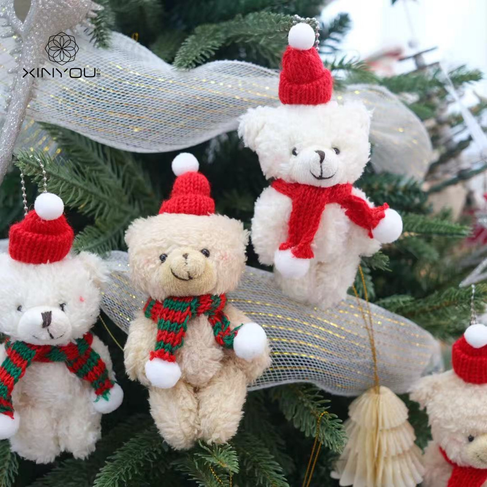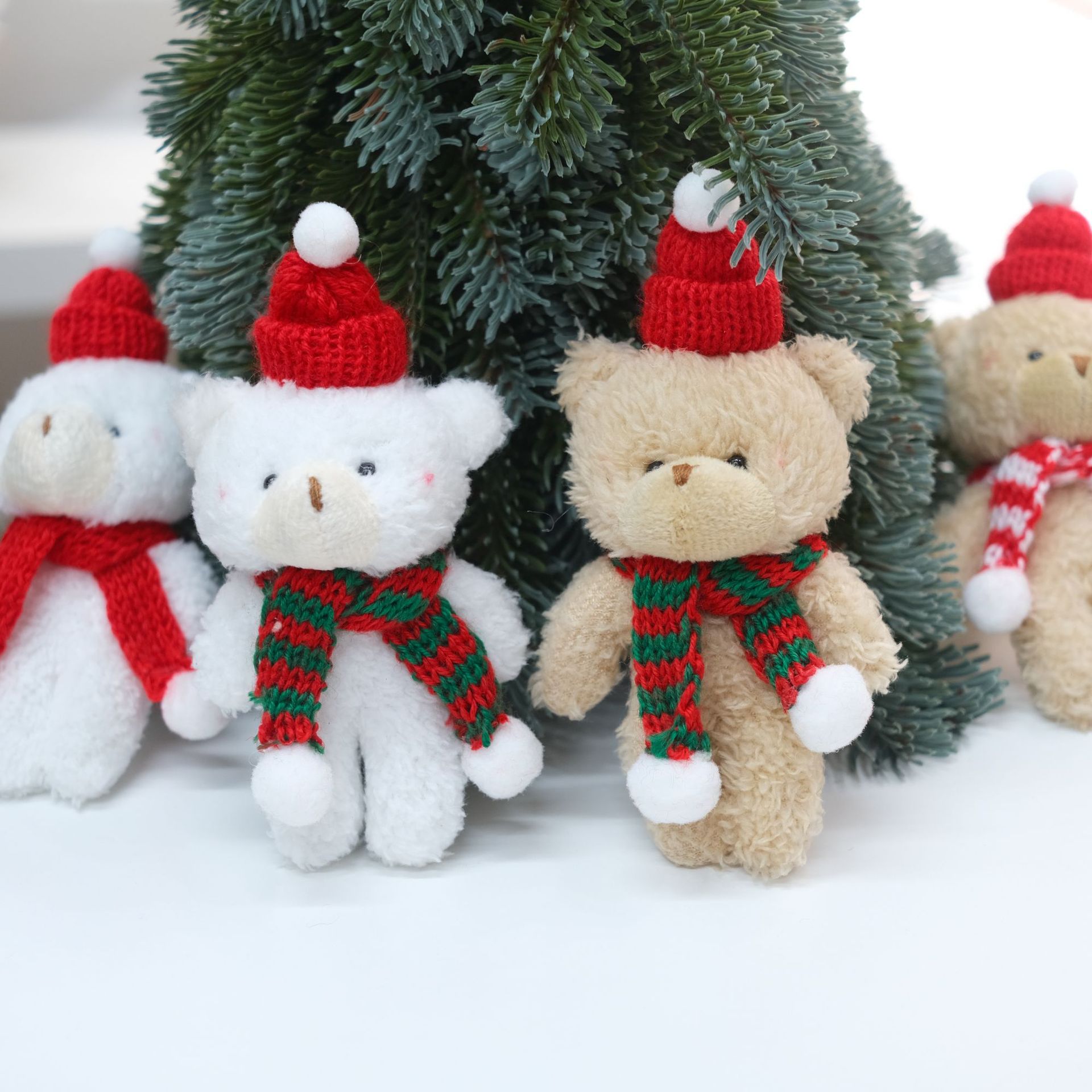 Color: 1 small red hat joint bear / beige white red scarf, 1 small red hat joint bear / beige white red green scarf, 1 small red hat joint bear / beige white red white scarf, 1 small red hat joint bear / brown red scarf, 1 small red hat joint bear / brown red green scarf, 1 small red hat joint bear / brown red white scarf