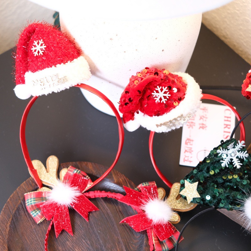 Color: 1 Christmas Hairband [27] Red Glitter Small Hat