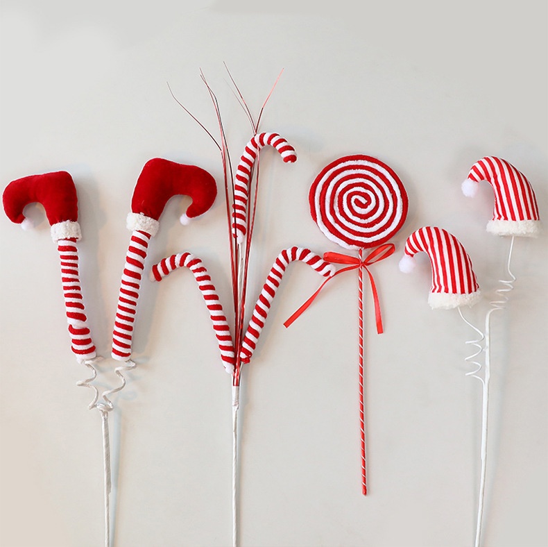 Color: Red Green Elf Leg, Red White Cane 3 Head, Red White Elf Leg, Red White Candy Stick, Red White Elf Hat, 4 pcs per pack