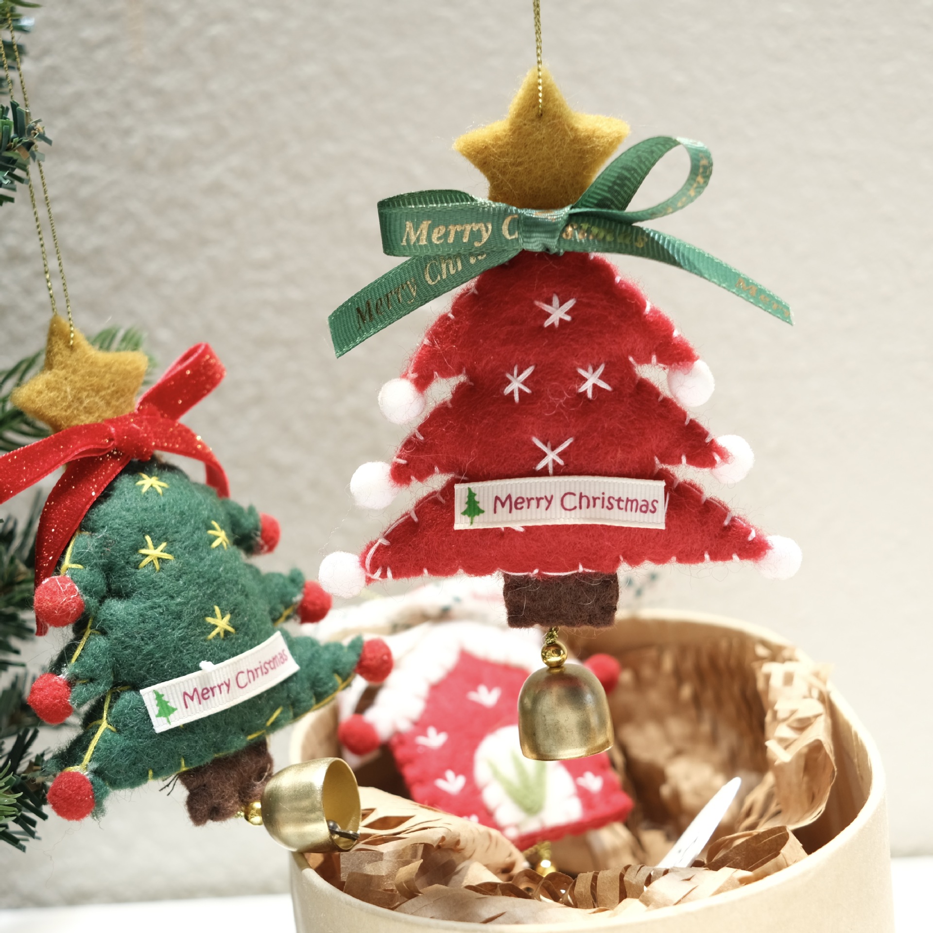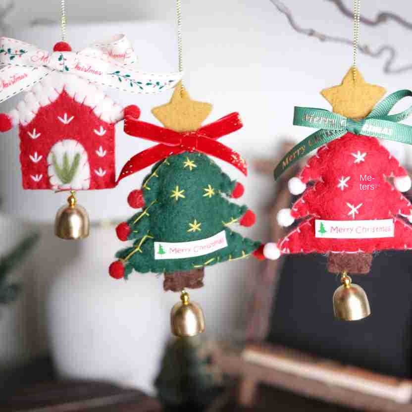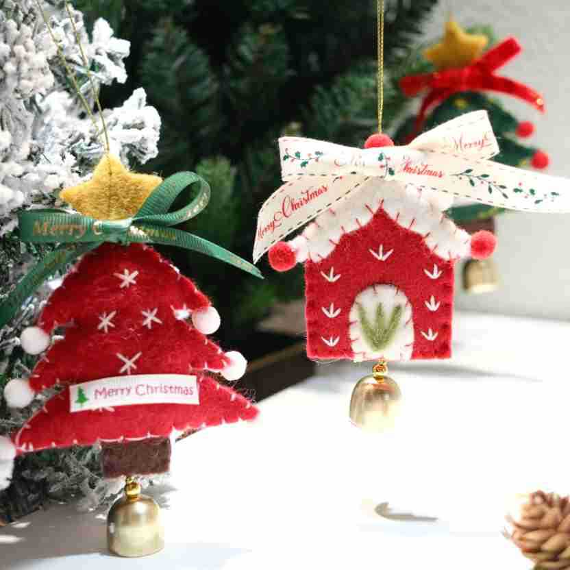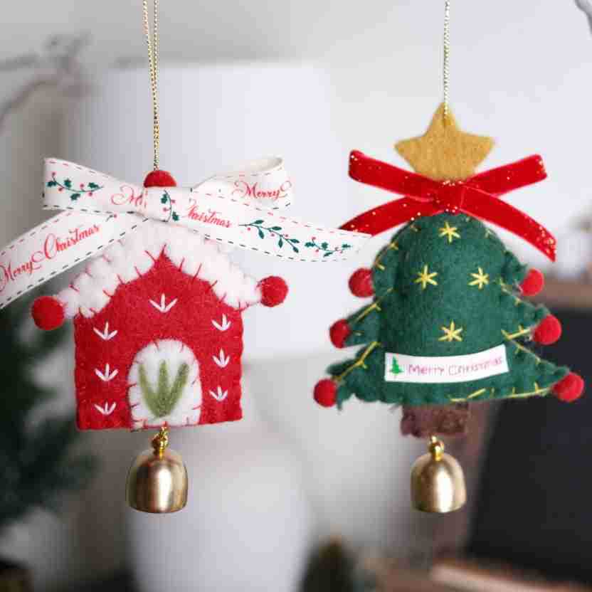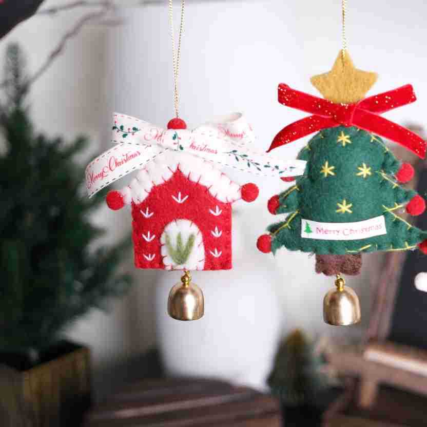 Color: Christmas Tree Felt Ornament No.5, Christmas Tree Felt Ornament No.6, Christmas House Felt Ornament No.7, Golden Christmas Tree Ornament No.1, Golden Christmas Tree Ornament No.2, Golden Star Ornament No.3, Pink Moon Ornament No.4