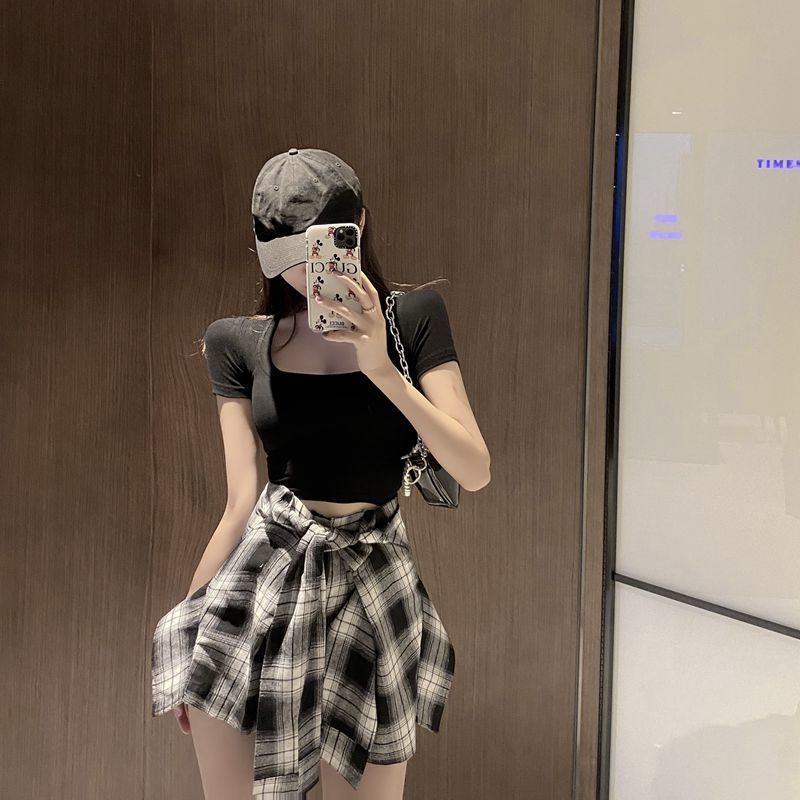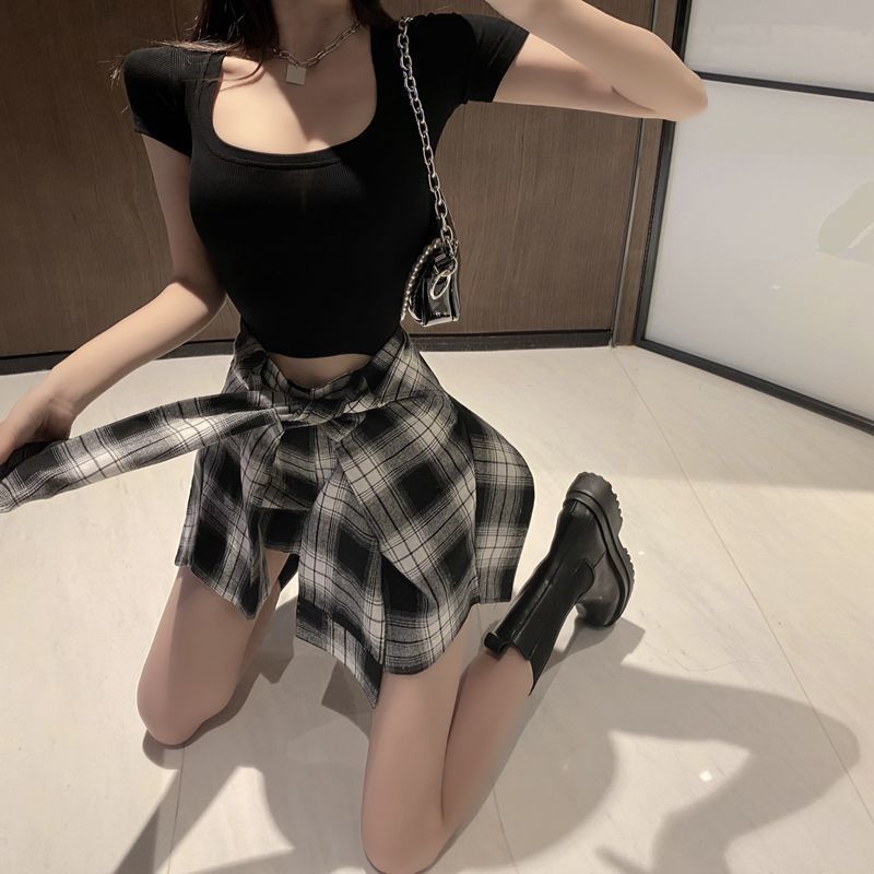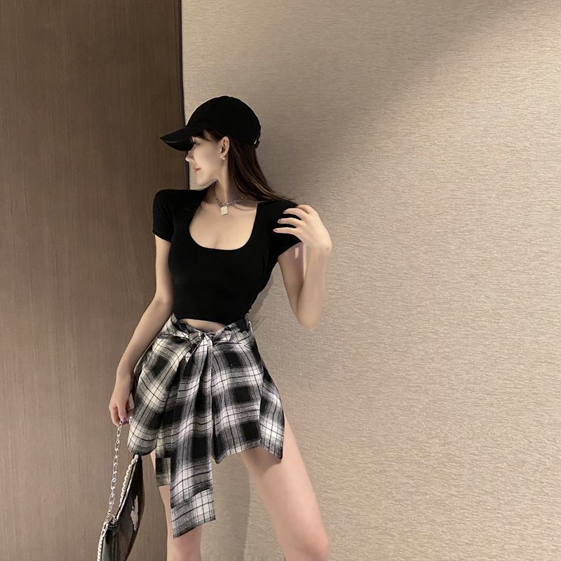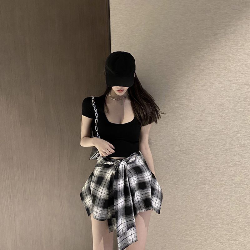 Color: Black Top + Black and White Check Shorts