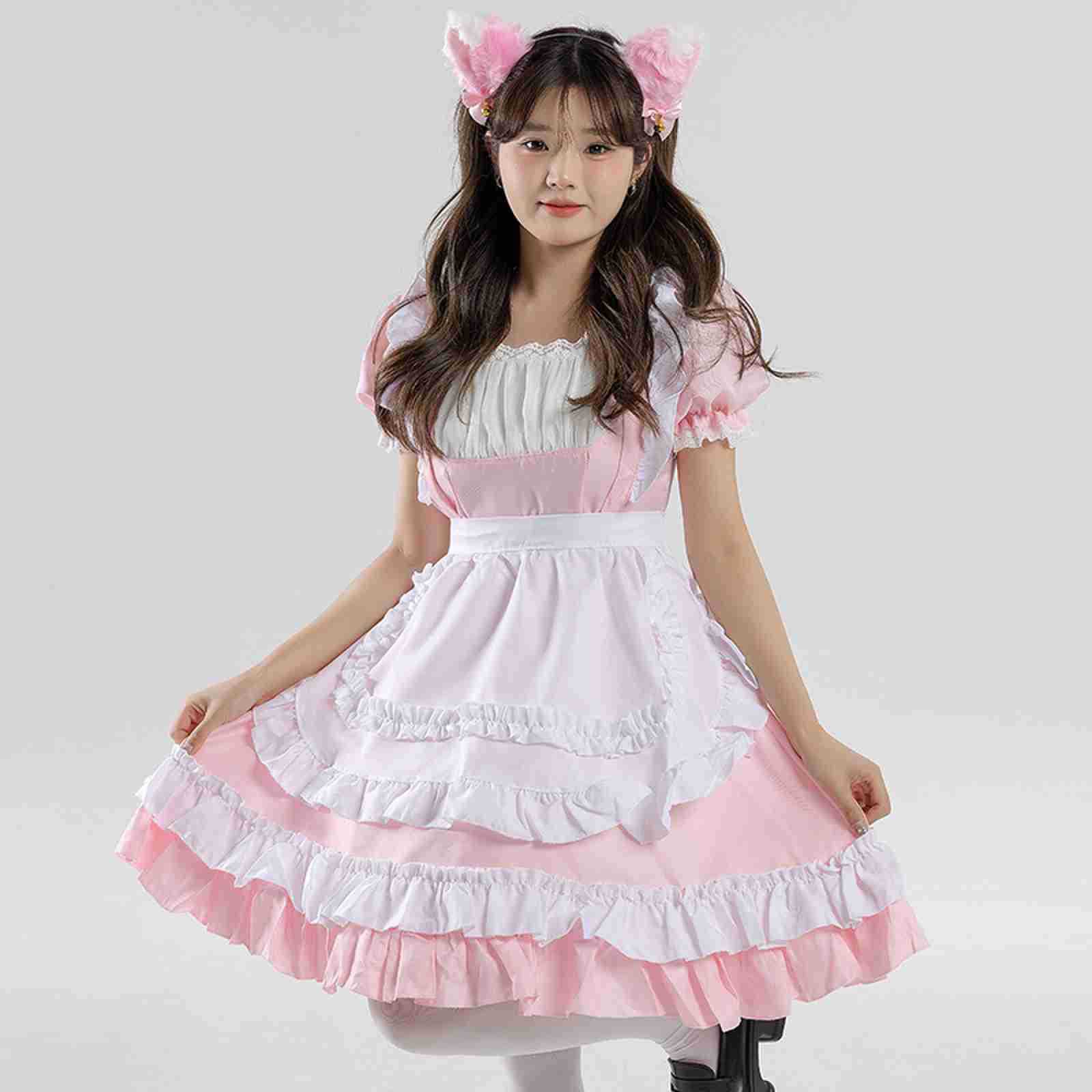 Color: Pink [Dress + Apron + Neckwear + Headwear]