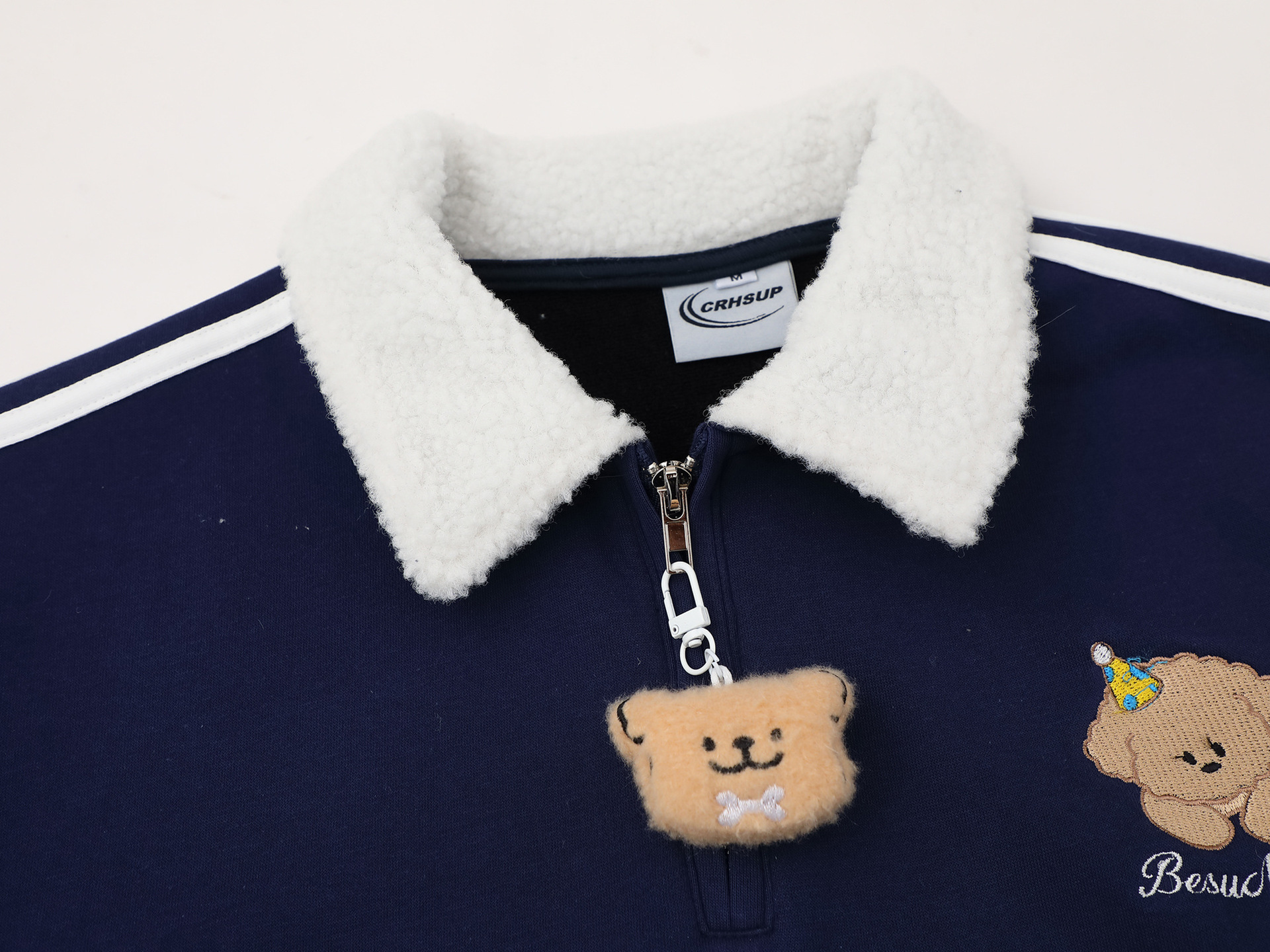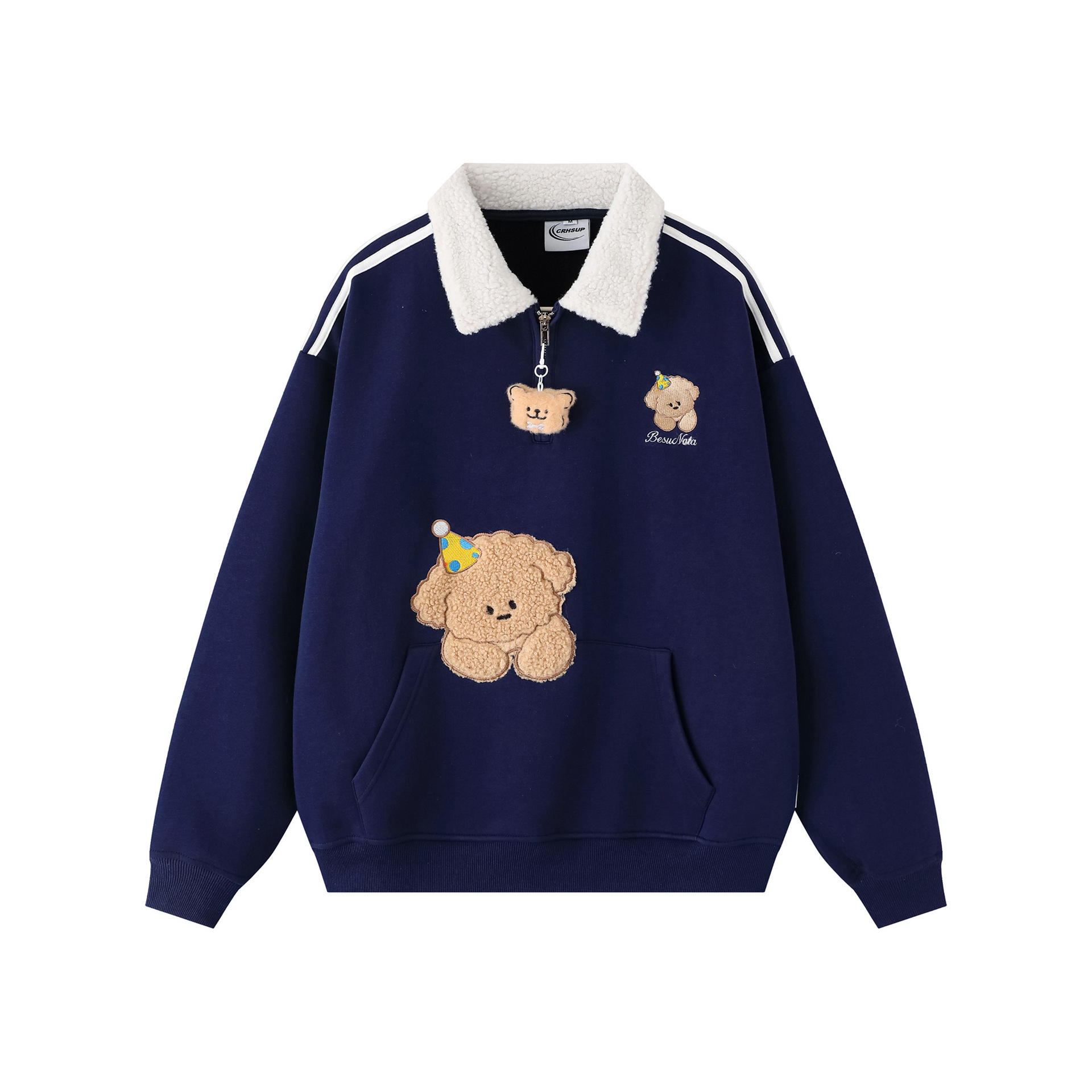 Details: Half Zipper, Flocking, Side Seam Pockets