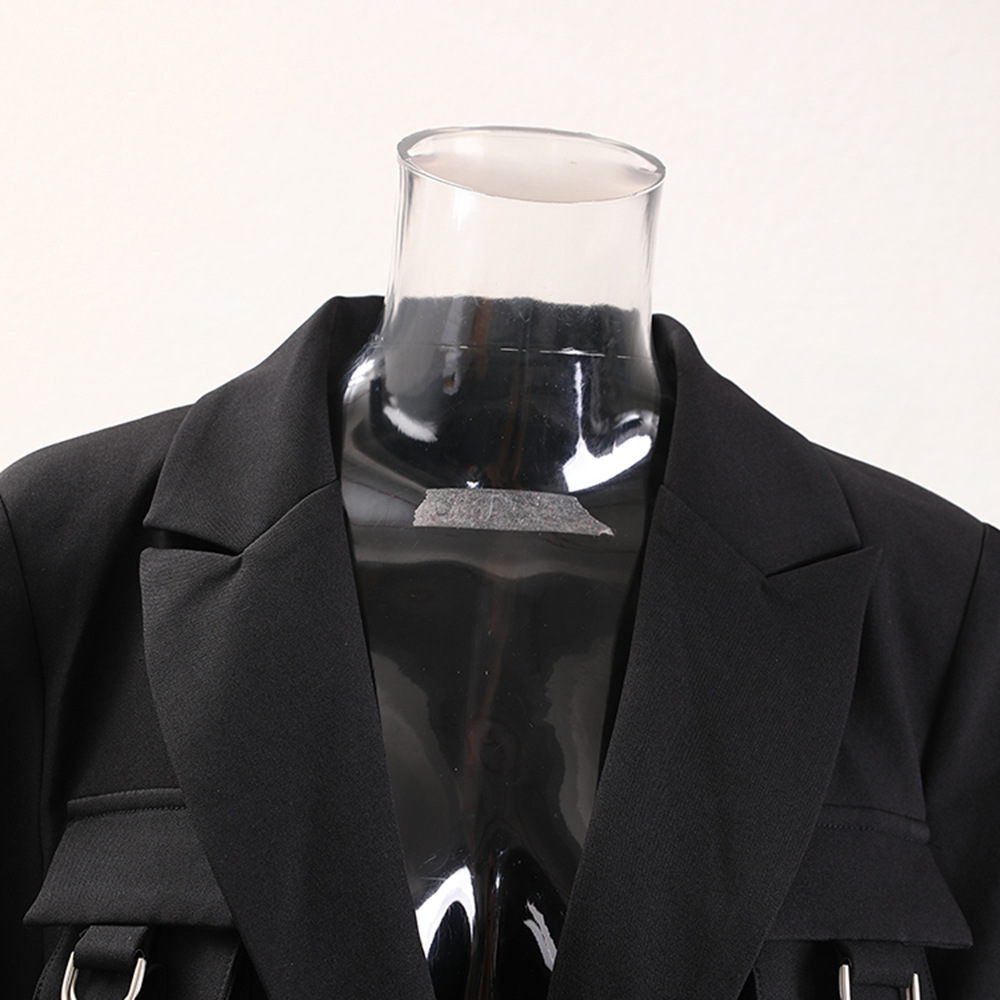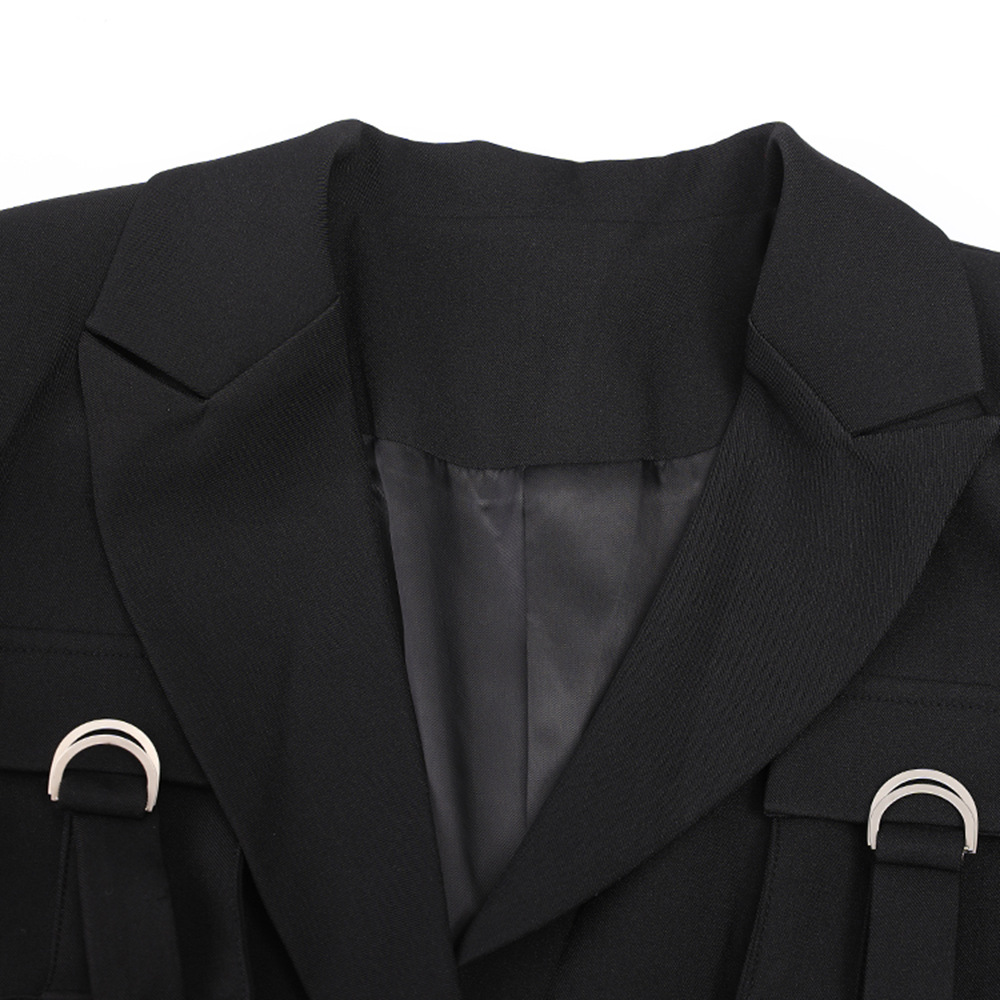 Details: Single breasted buckle with pocket