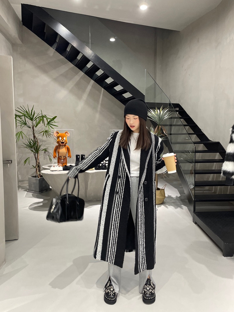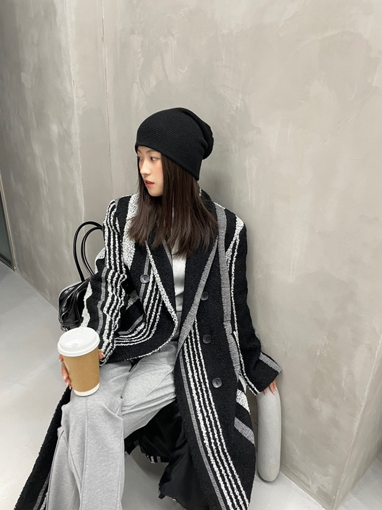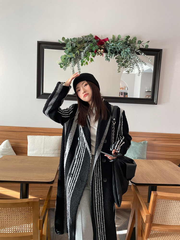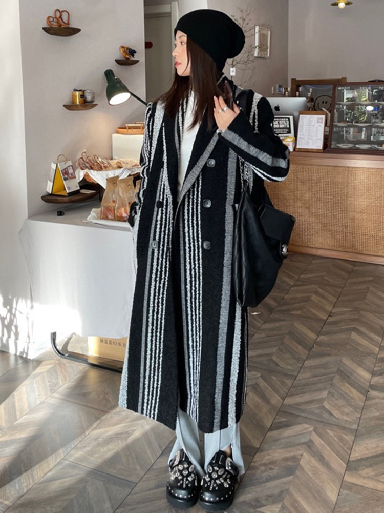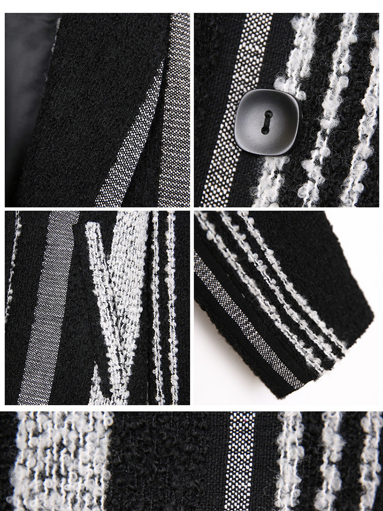 Pattern: Stripes Style: Commuter Commuting: Retro Collar: suit collar Clothes placket: Double breasted Sleeve Length: Long Sleeve Length: long Clothing version: straight Material composition: other materials 100% |