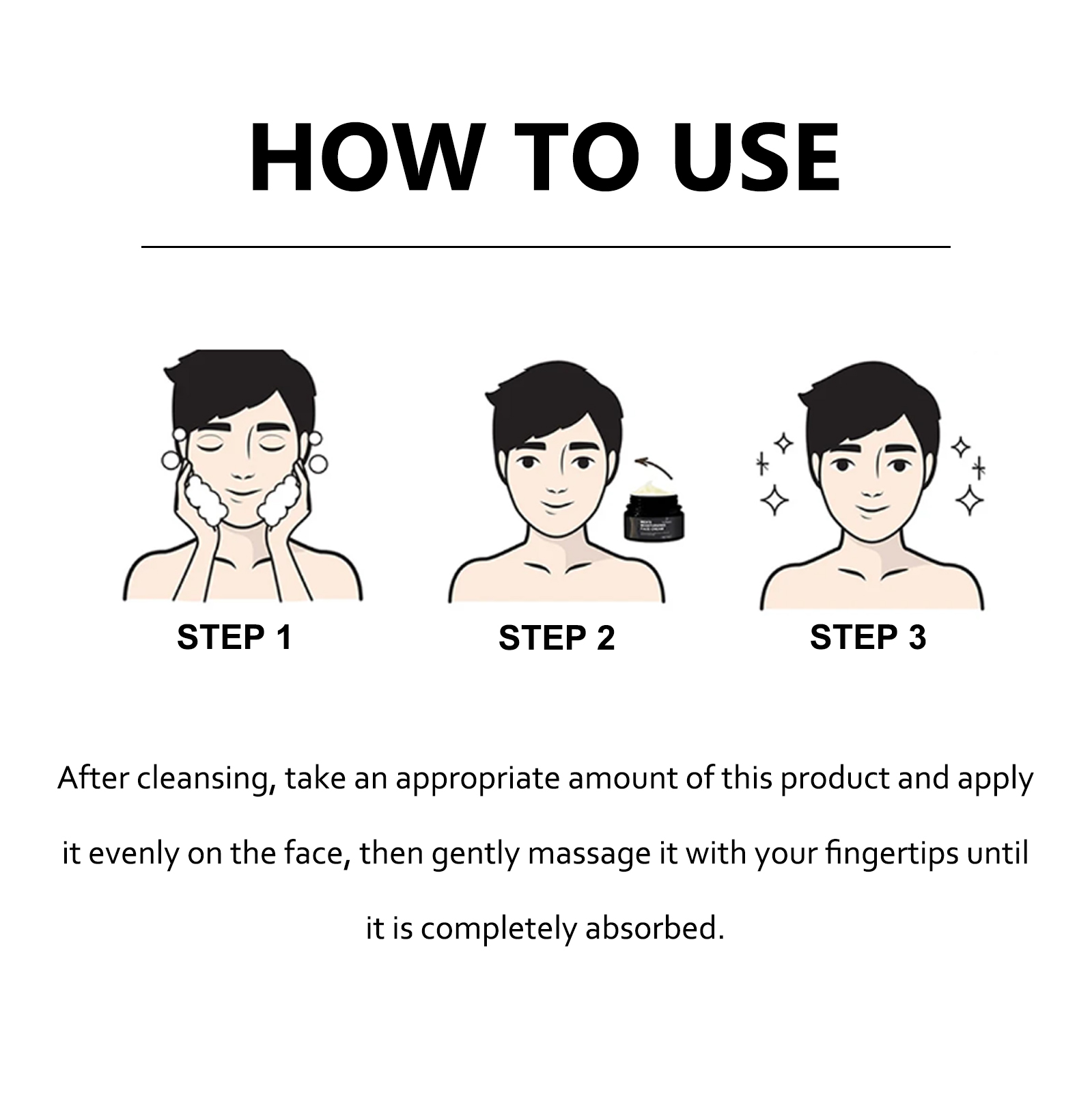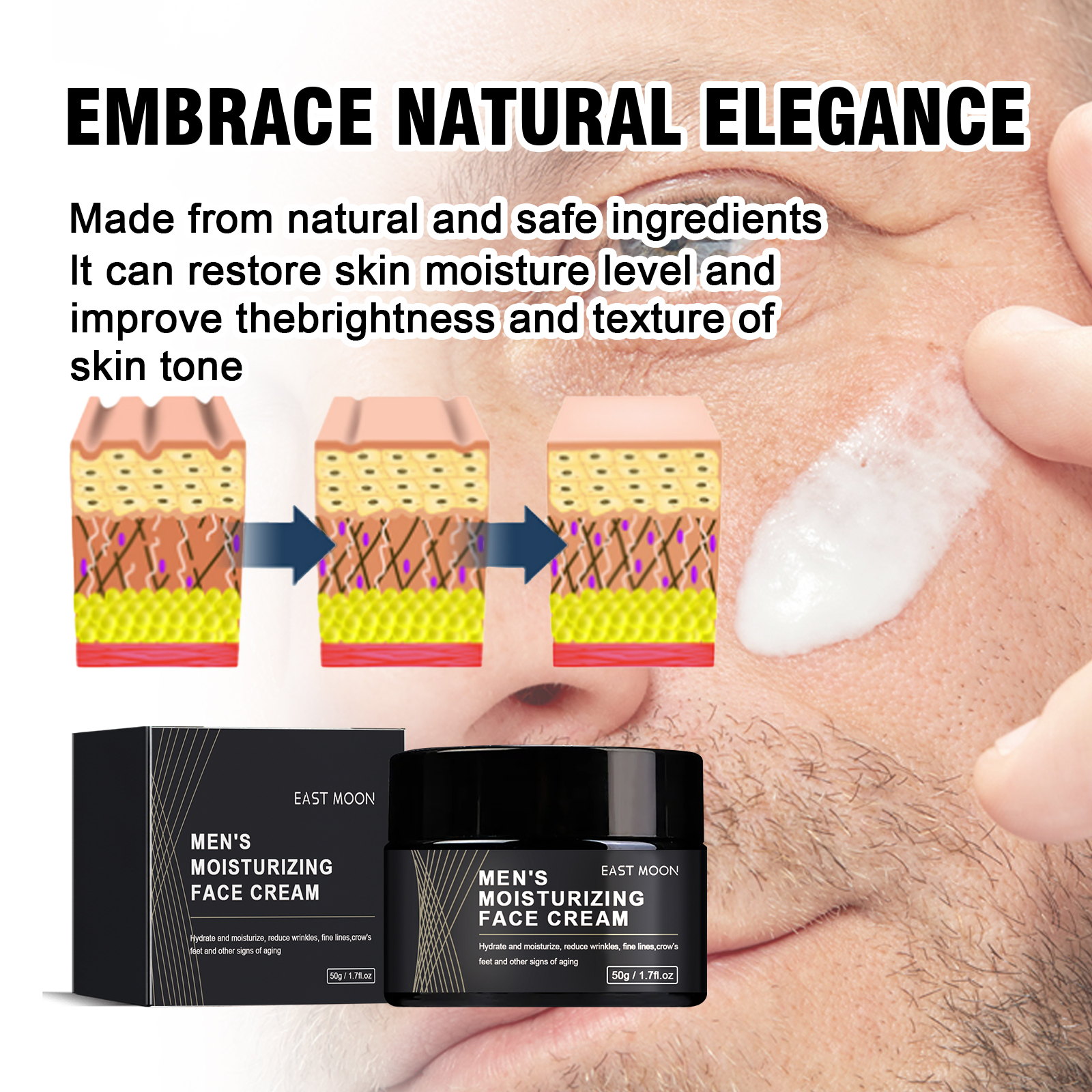 Our anti-wrinkle cream for men contains green tea extract and evening primrose oil. It can help the skin retain moisture, reduce wrinkles and fine lines, and make you look younger. Its use method is very simple: after cleansing, apply appropriate amount of this product evenly on the face, gently massage with fingertips until completely absorbed. And can moisten and firm, anti-aging.