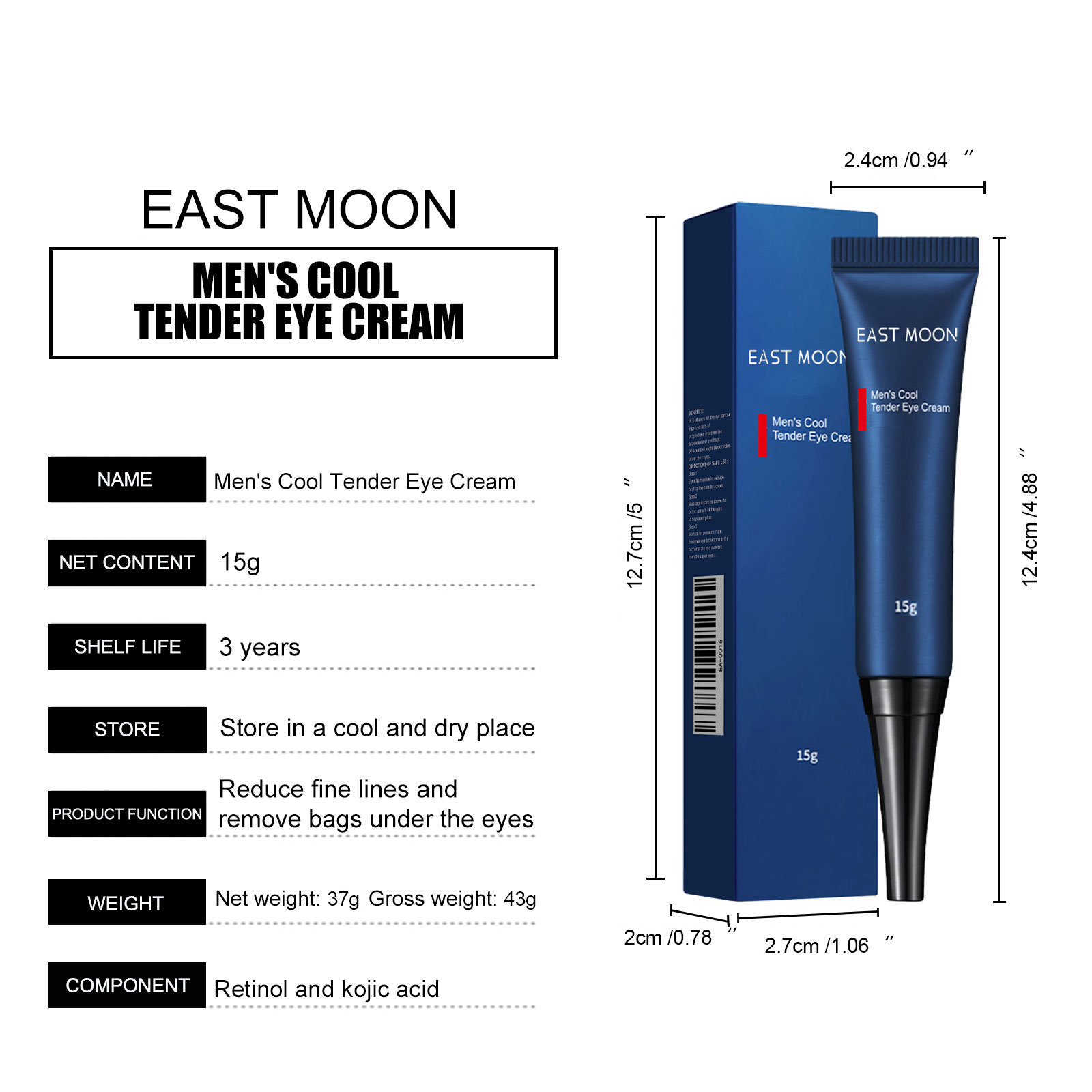 East Moon Men's Retinol Eye Cream, Gentle Nourishing Eye Skin Moisturizing And Firming Apply Eye Cream