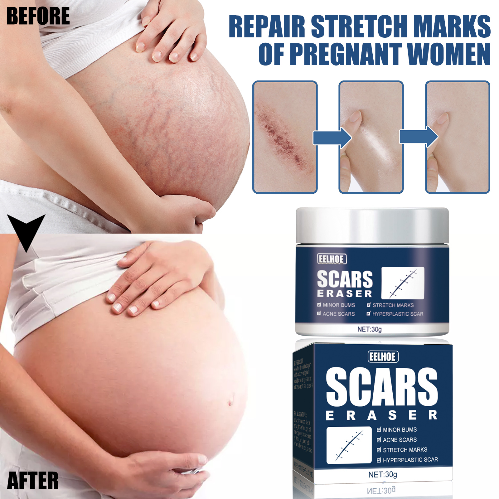 Our scar balm contains fruit fat, Jojoba seed oil and hydrolyzed collagen essence. It helps to repair damaged tissue knots. Effectively reduce melanin precipitation. Fade scars and restore soft tissue repair. Its use is very simple: apply it every day for a period of time, and the scar will slowly fade. After persistent use, the scar gradually disappeared.