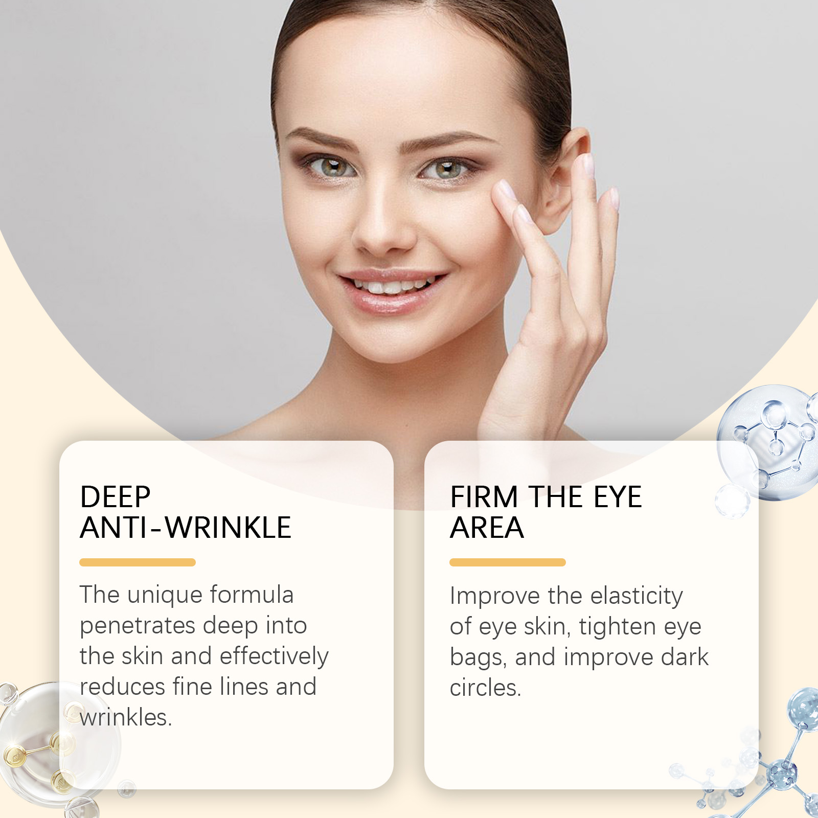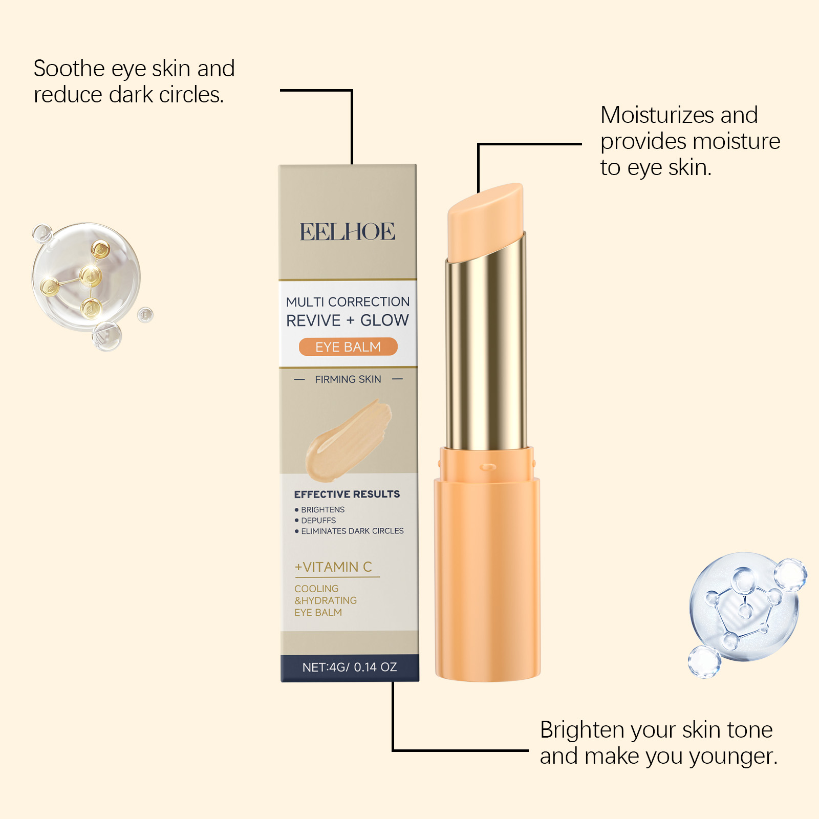 Our Vitamin C brightening and firming Eye cream bar contains ascorbic acid (vitamin C), hyaluronic acid, and glycerin. It can penetrate deep into the skin and effectively reduce fine lines and wrinkles. Its application is simple: clean the skin around your eyes and gently dry it. Gently apply the product to the entire eye area. Gently pat around the eyes to promote absorption. And can improve the elasticity of the eye skin, tighten the bags under the eye, improve the black eye roll.