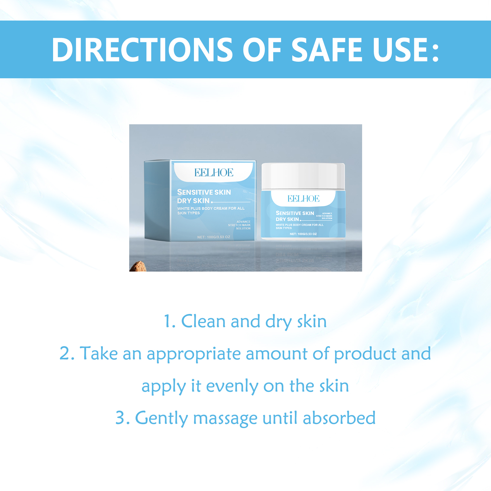 Our White Plus Body Cream contains Mentha Piperita(Peppermint)Leaf Extract, Collagen, Ascorbic Acid. It can effectively fade dark spots, reduce wrinkles, make the skin more bright and even, so that you have smooth and translucent skin, can deeply moisturize the skin, increase the skin elasticity, make the skin firmer, make you feel young and energetic. The way to use it is very simple: clean and dry the skin, apply an appropriate amount of the product evenly on the skin, gently massage until absorbed. It can balance skin oil secretion, reduce skin shine, and keep skin fresh at all times.
