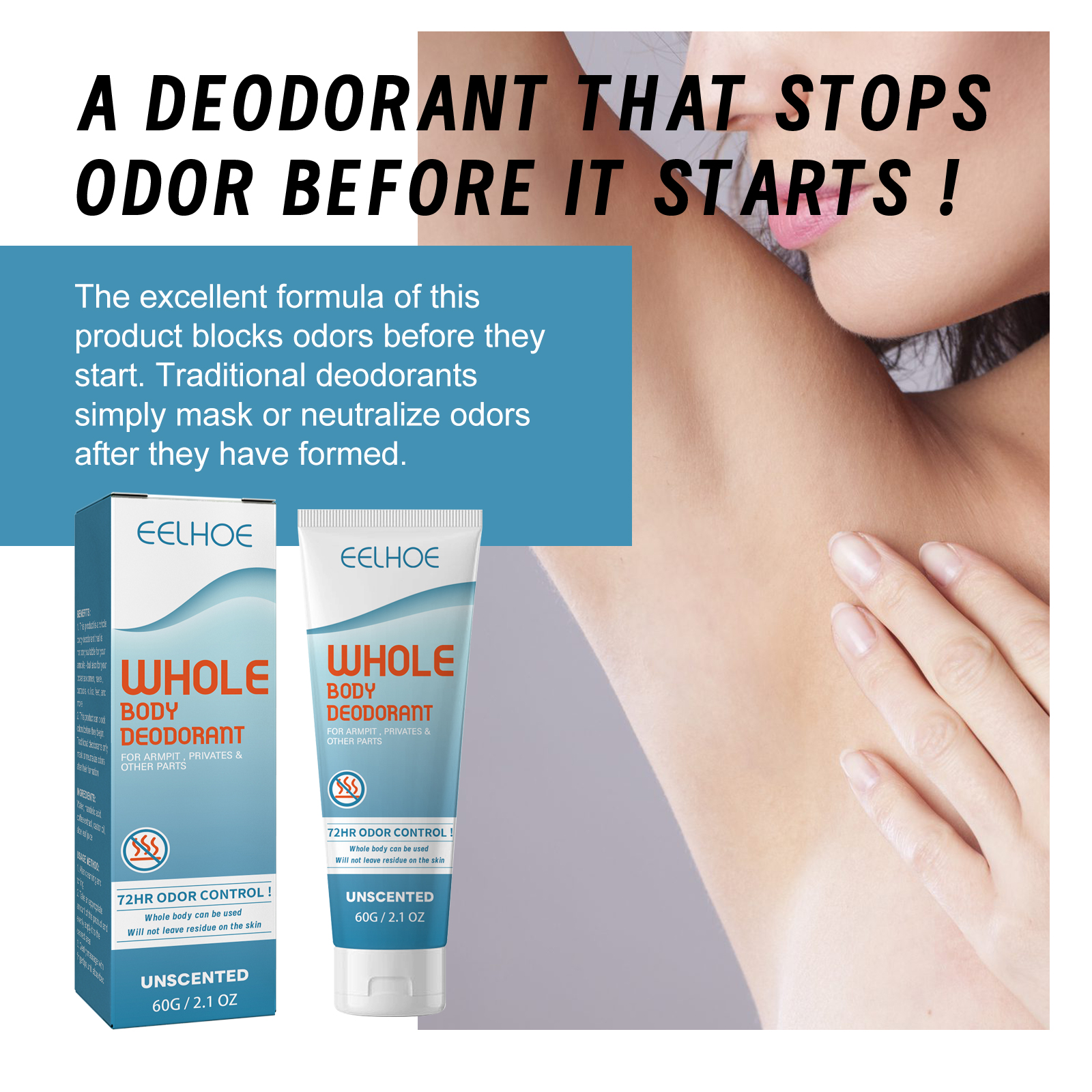 EELHOE Whole Body Deodorant, Long Lasting Fragrance Clean Body Odor Body Odor Sweat Refreshing Fragrance Care Cream