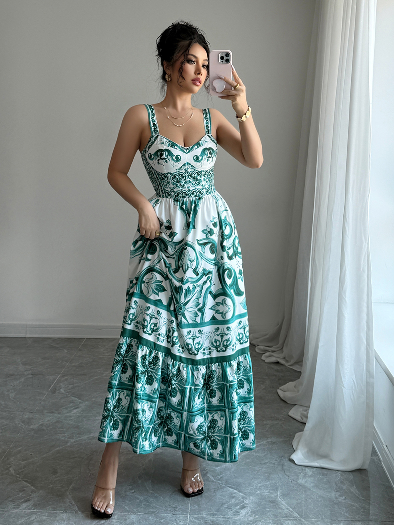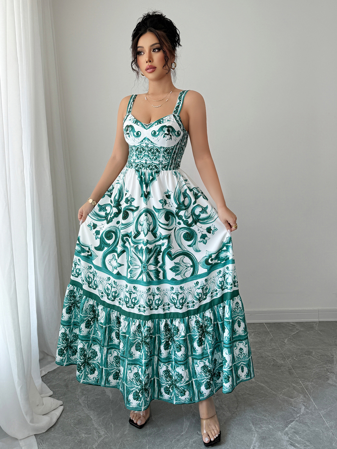 -Length: Medium length skirt