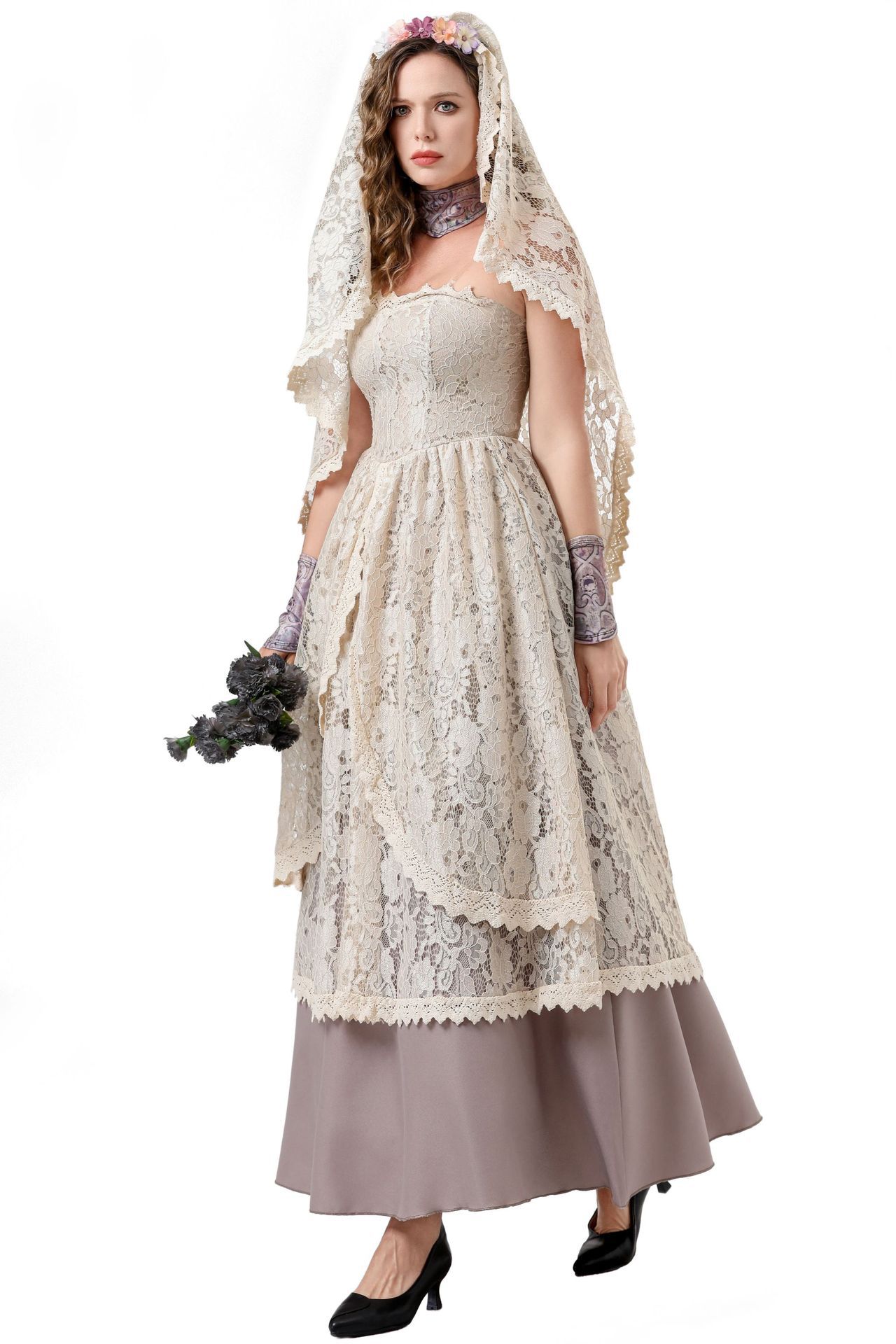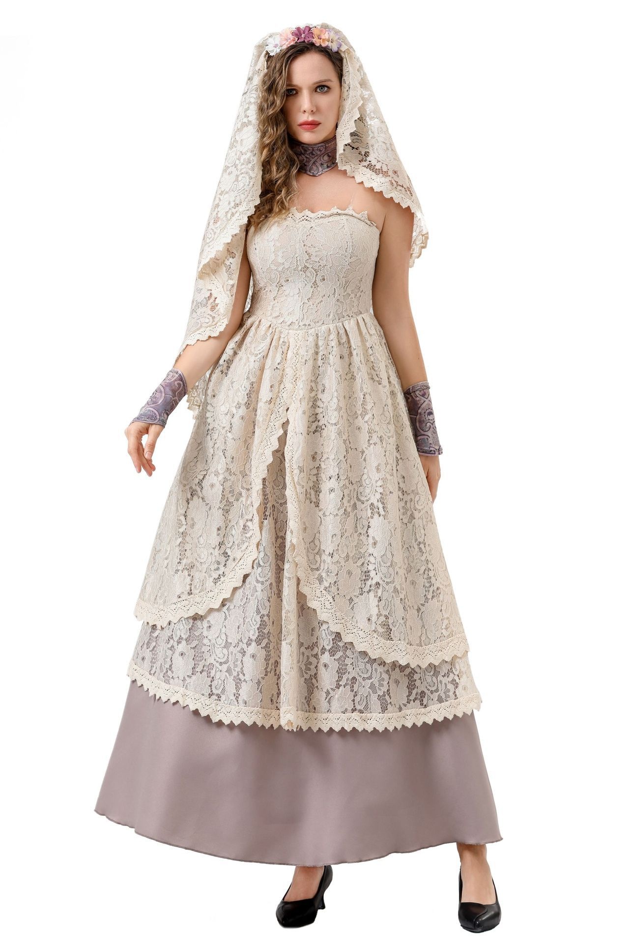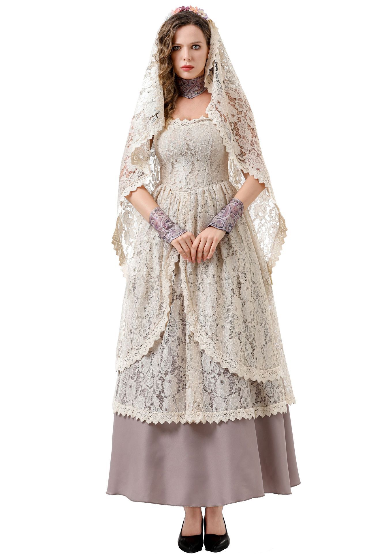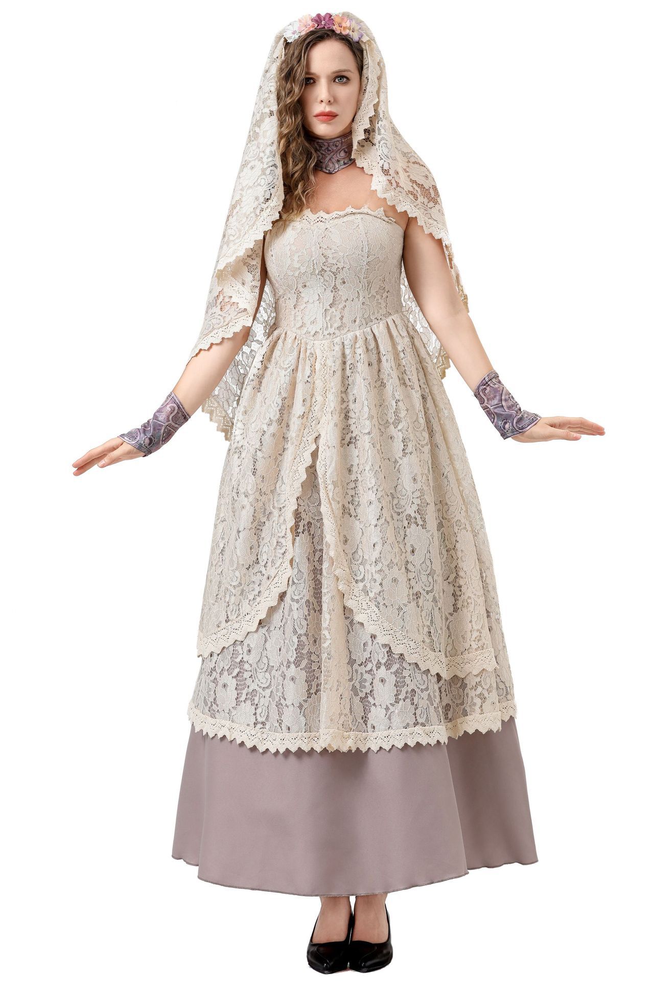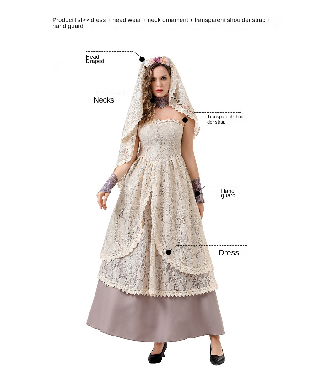 Color: 8760【Dress + Head Scarf + Neck Decoration + Transparent Shoulder Straps + Arm Guards】