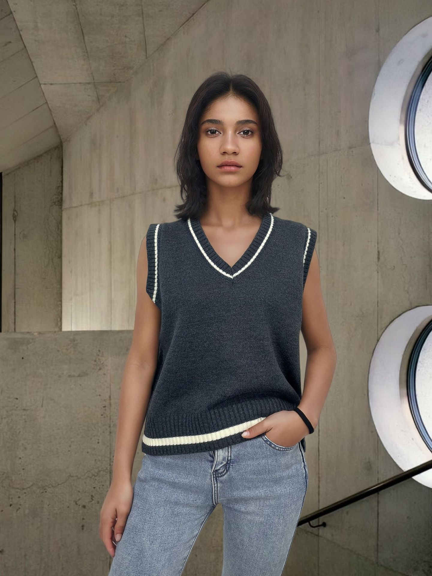 Neckline: V-neck