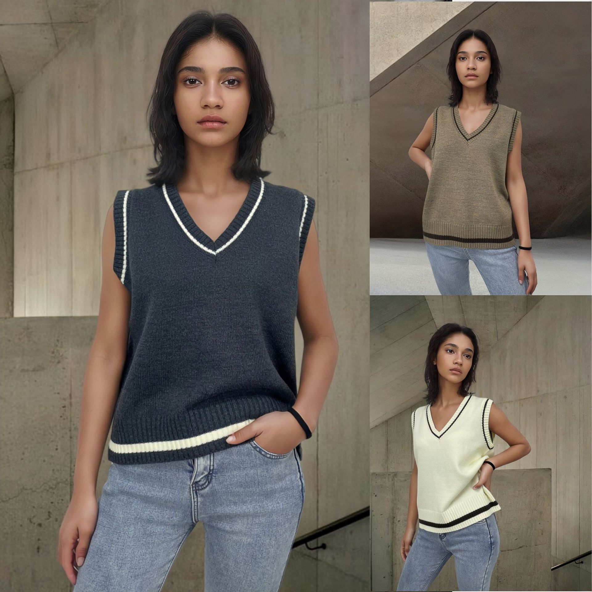 Color: Dark Gray, Ivory White, Camel