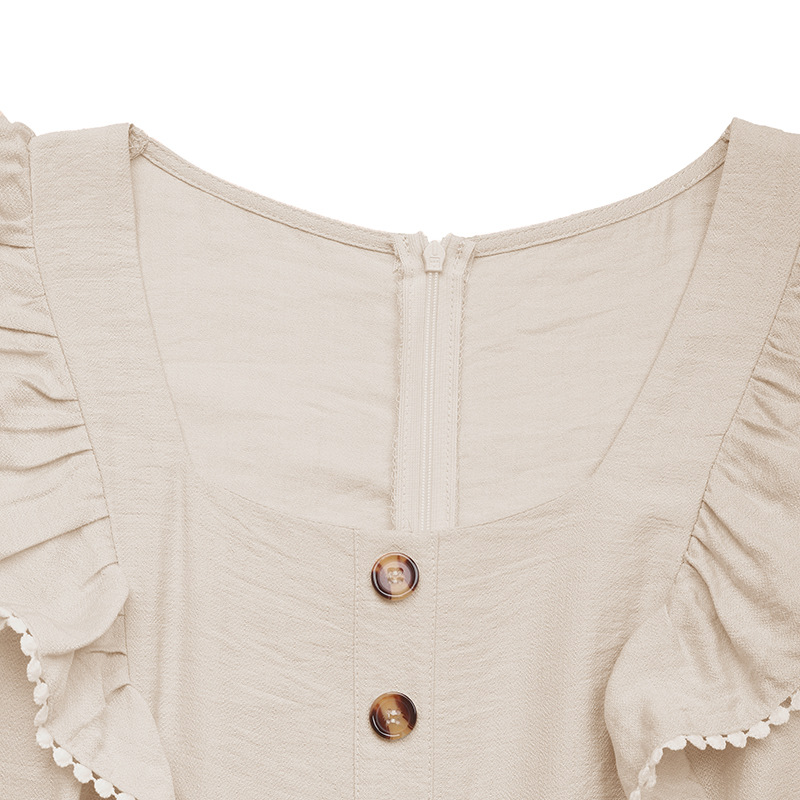亚马逊欧美夏季新款拼接荷叶袖直筒连体裤时尚气质通勤高腰连体裤