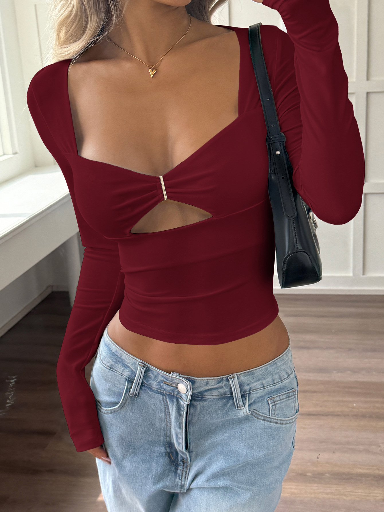 Neckline: Low neck