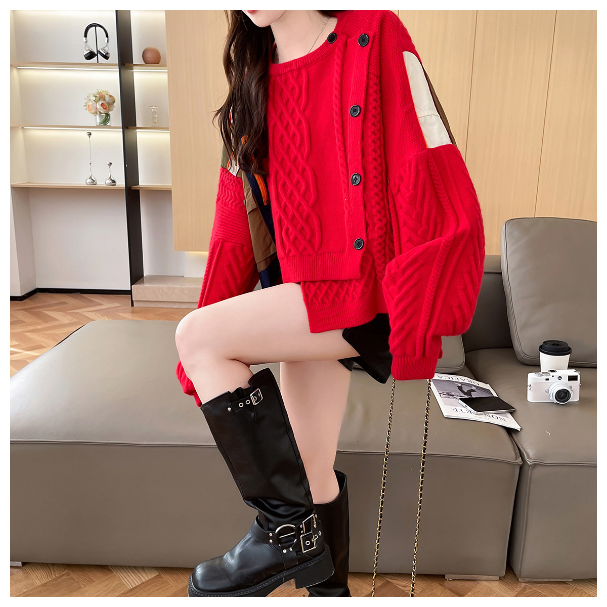 Color: Dark Coffee, Red, Blue, Light Coffee, Khaki, Black