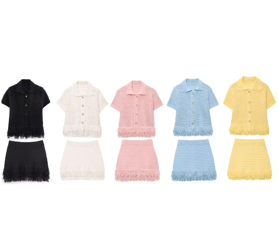 Color: White Top, White Skirt, Black Top, Black Skirt, Yellow Top, Yellow Skirt, Blue Top, Blue Skirt, Pink Top, Pink Skirt, White Set, Black Set, Yellow Set, Blue Set, Pink Set