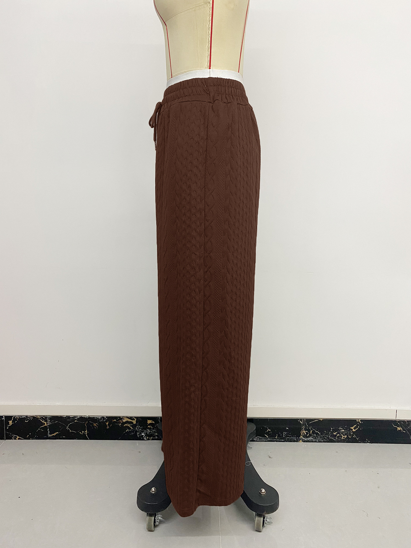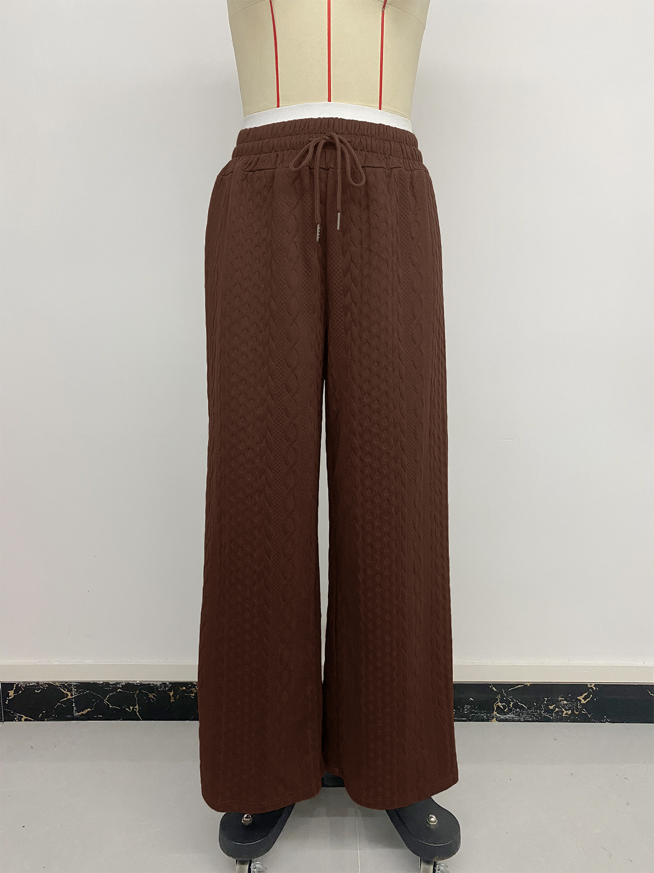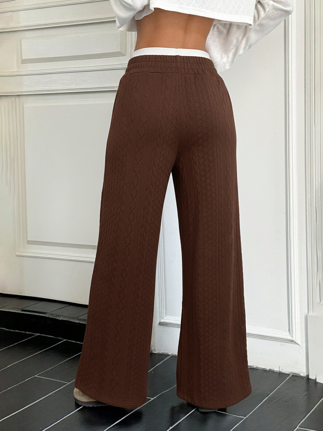 tiktok秋冬季热卖新款拼接松紧腰假两件棕色撞色直筒长裤女