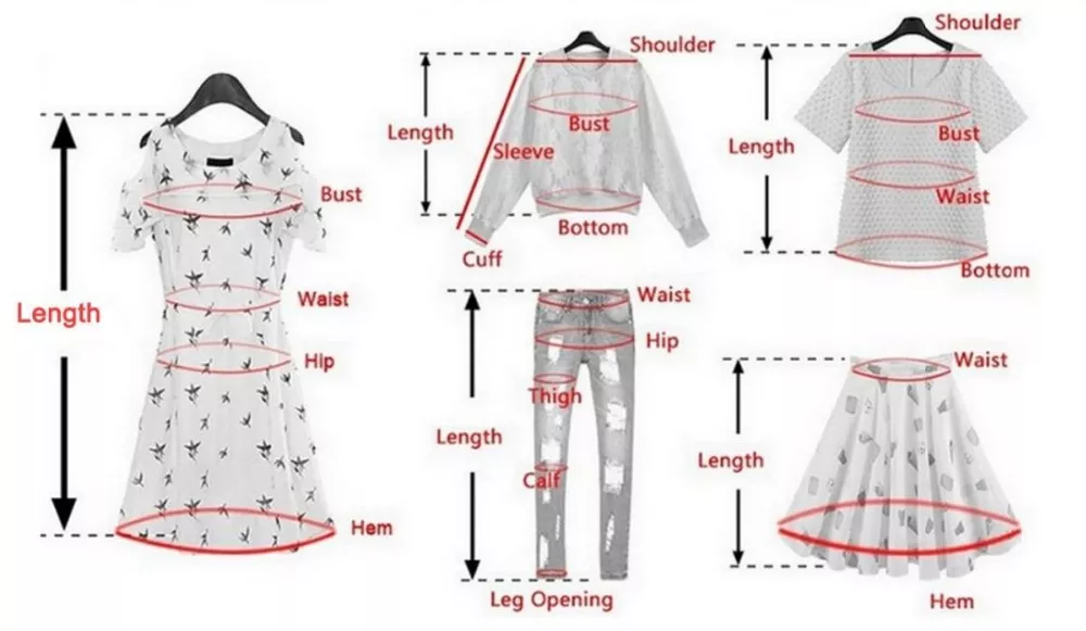Size Chart : 1 inch = 2.54 cm