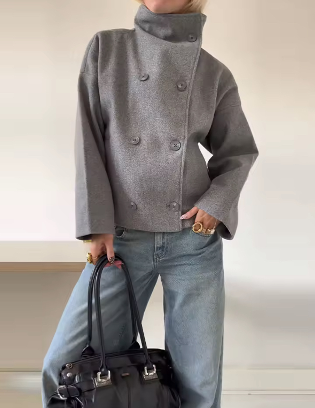 Color: Double-breasted Black, Double-breasted Gray, Double-breasted Beige, Double-breasted Navy Blue