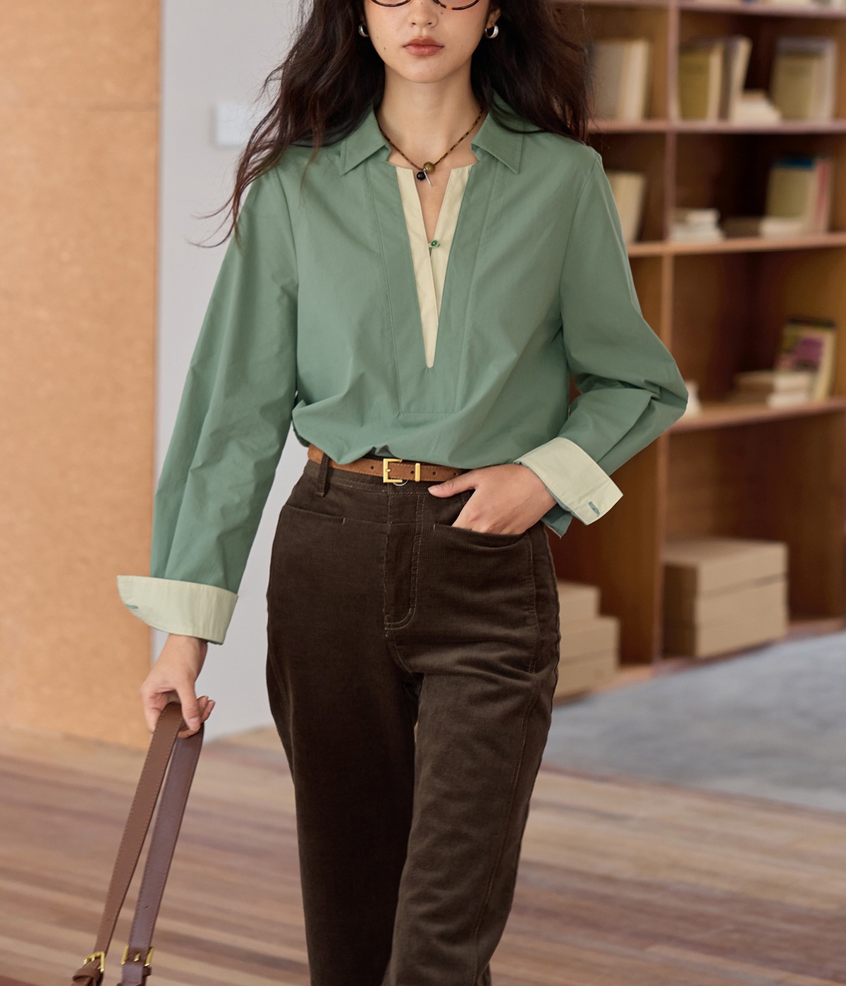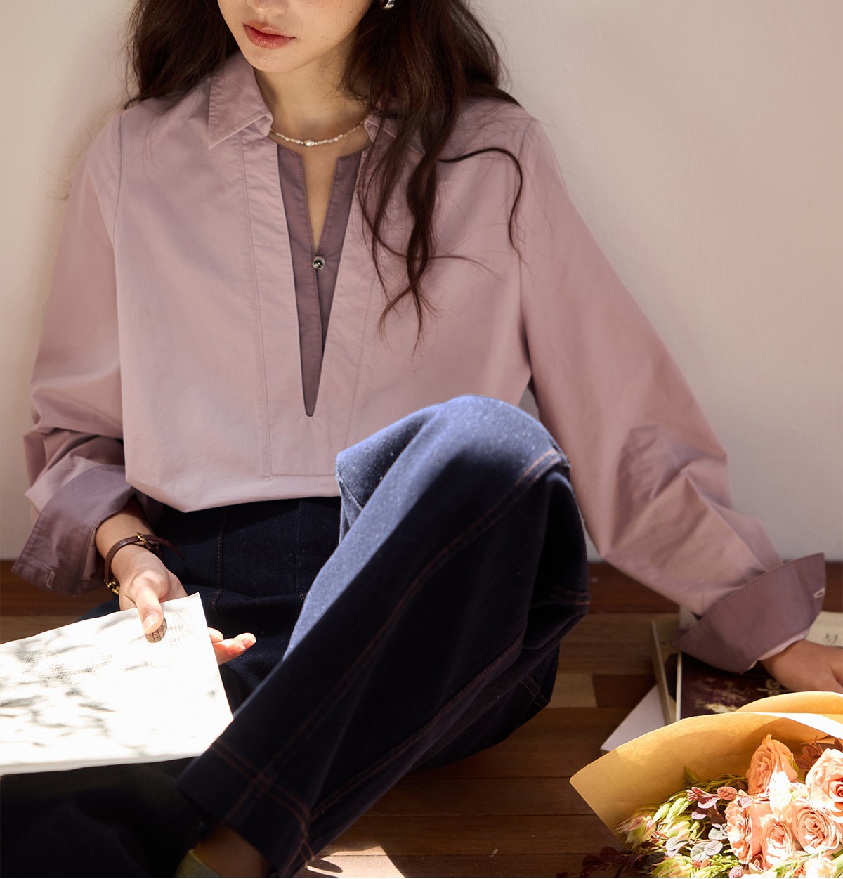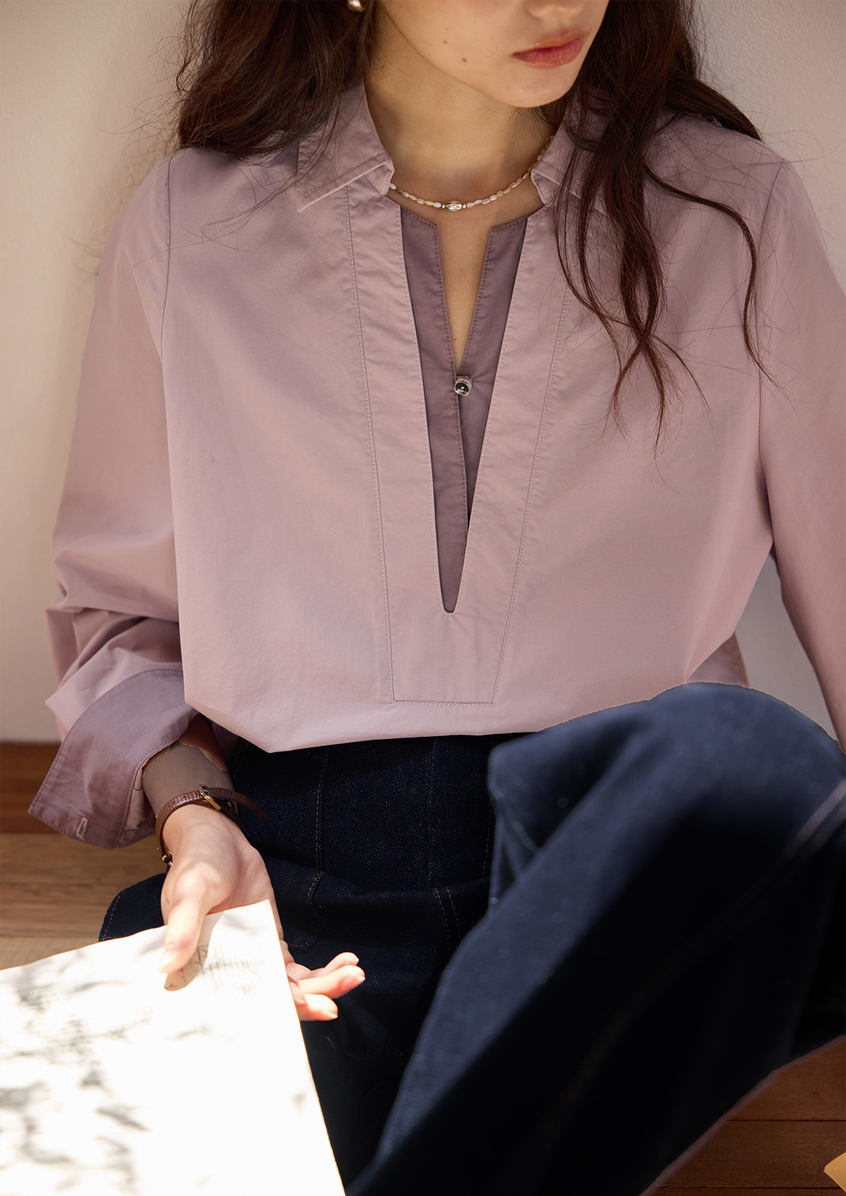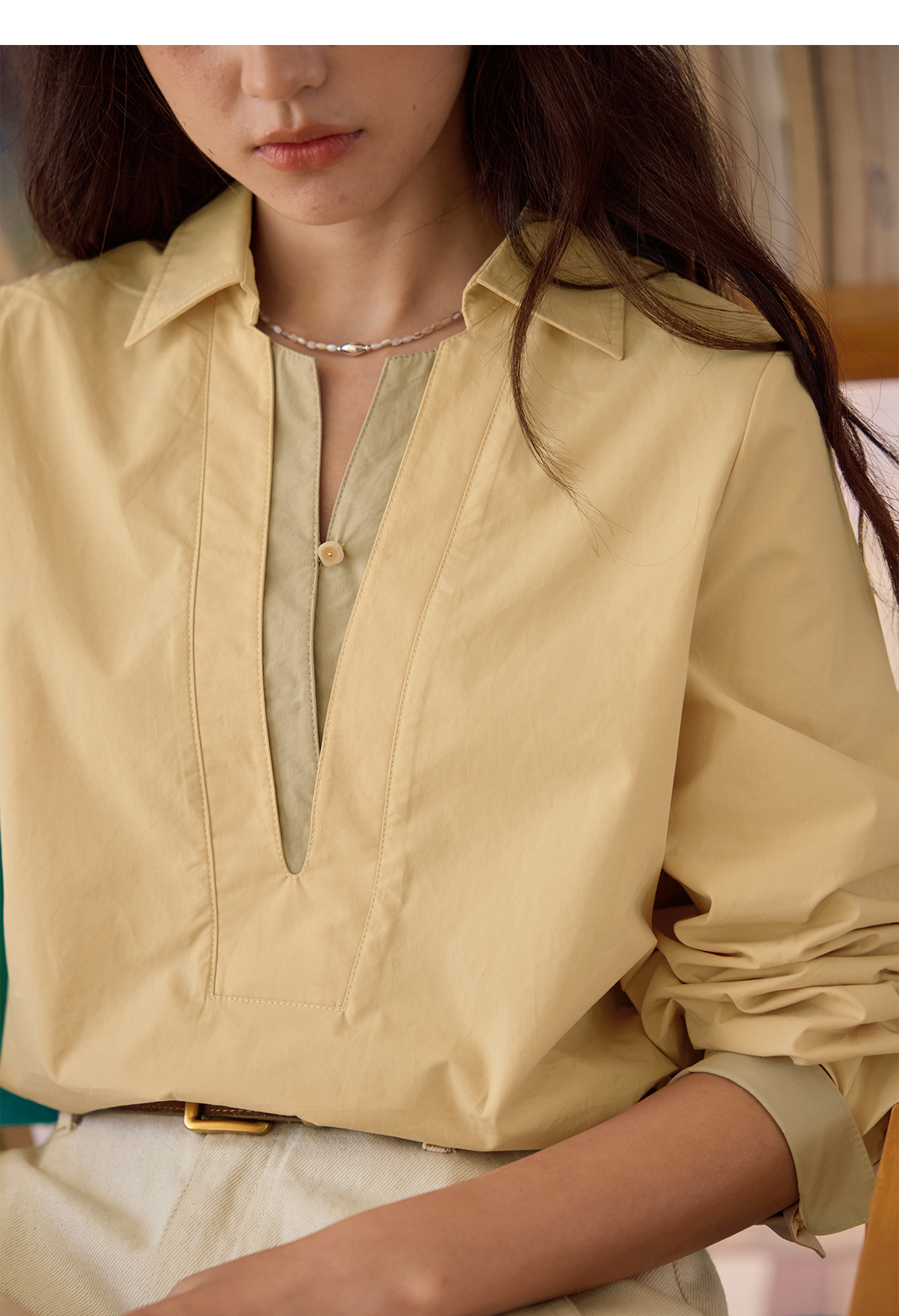 solighter 法式复古假两件衬衫女秋季2025新款宽松套头长袖衬衣