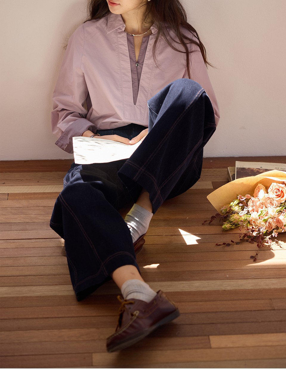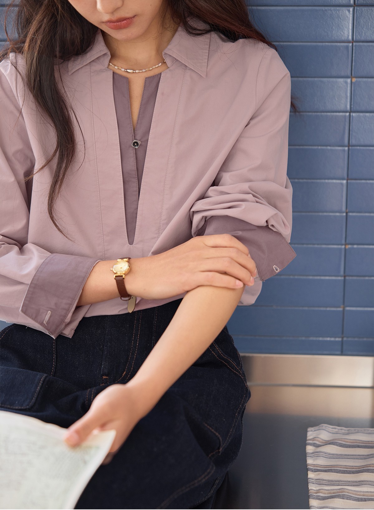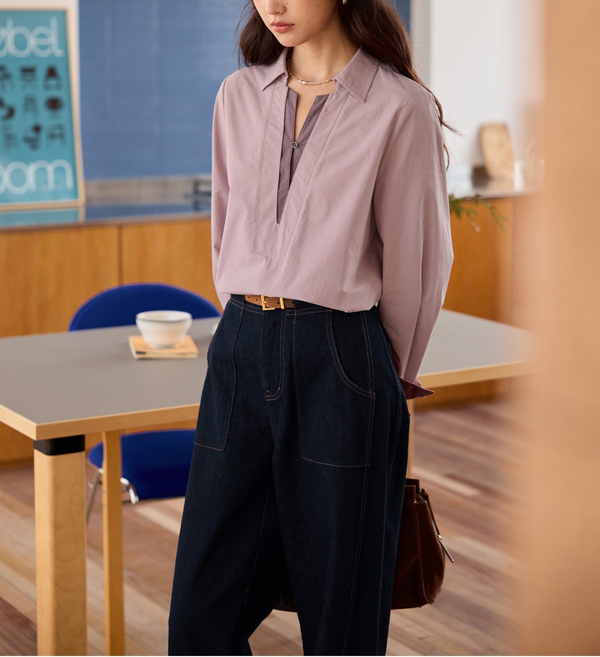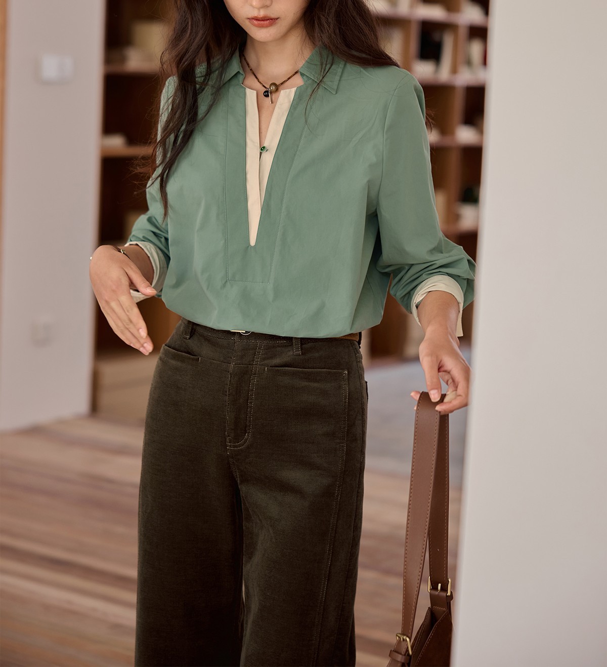 solighter 法式复古假两件衬衫女秋季2025新款宽松套头长袖衬衣