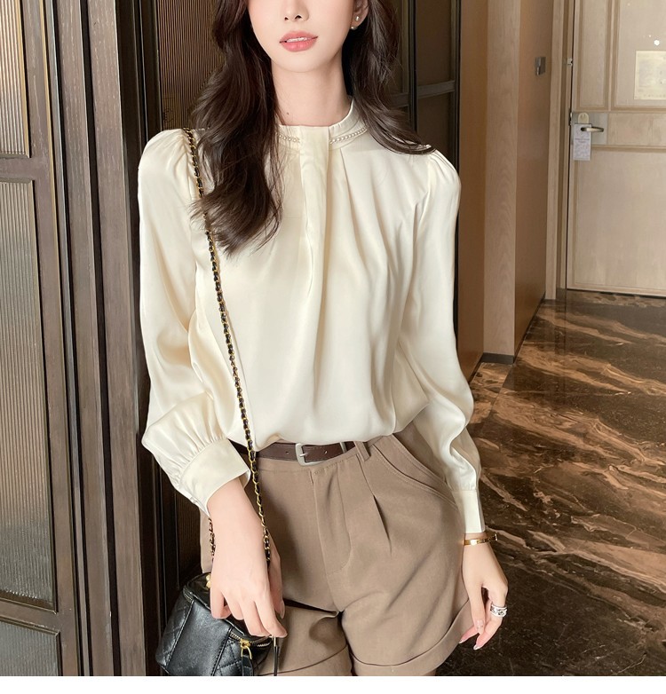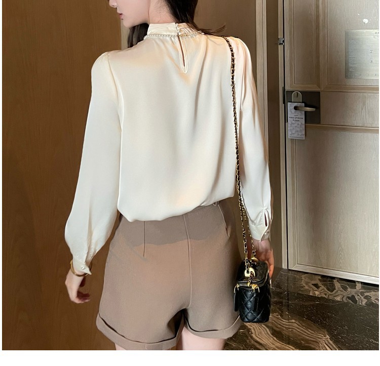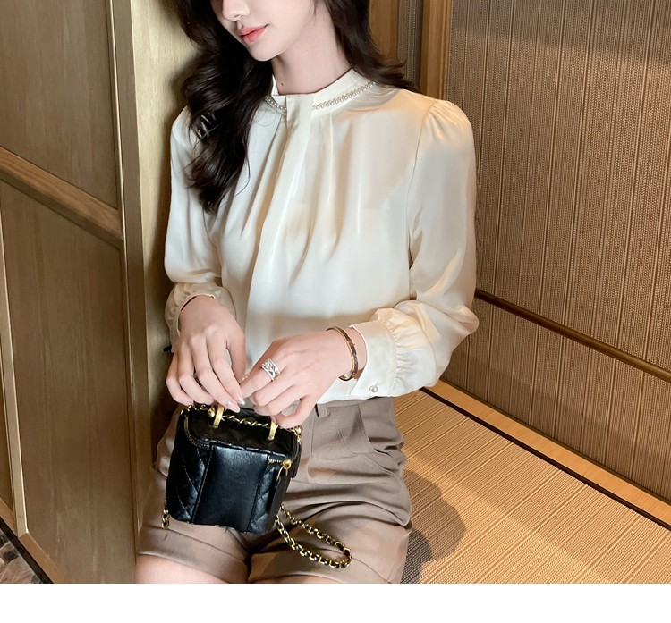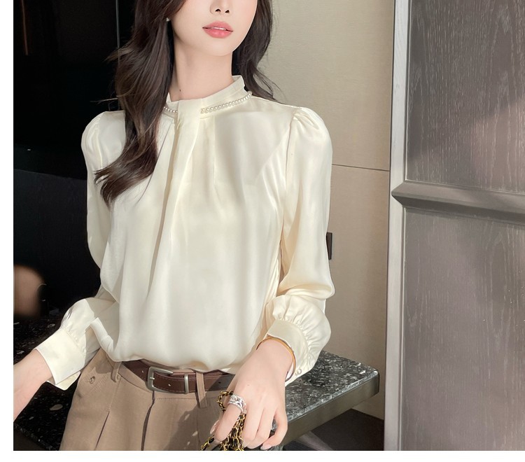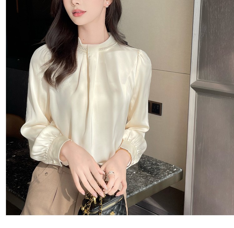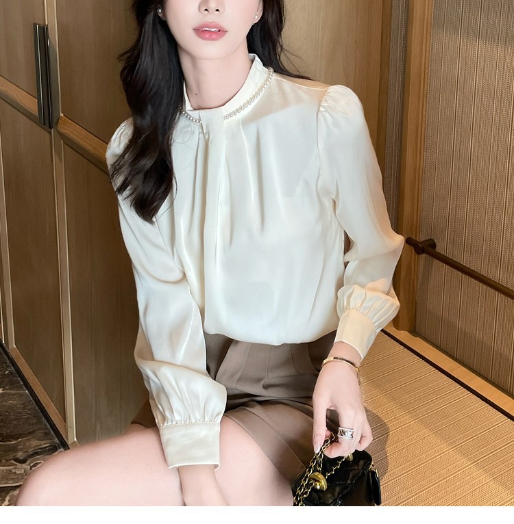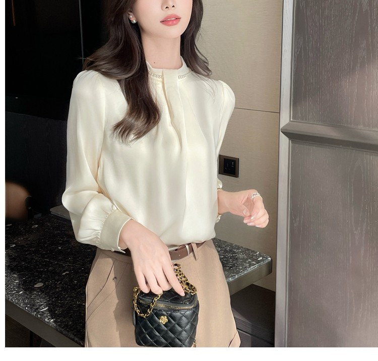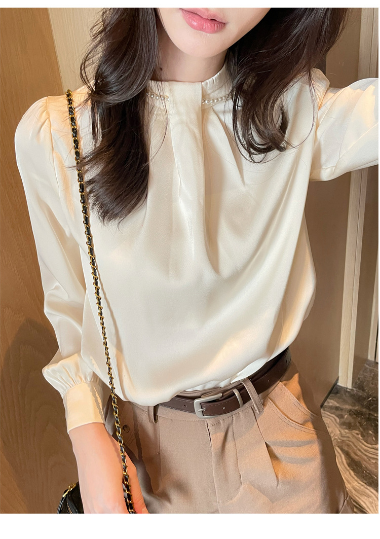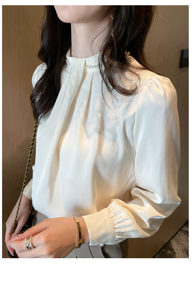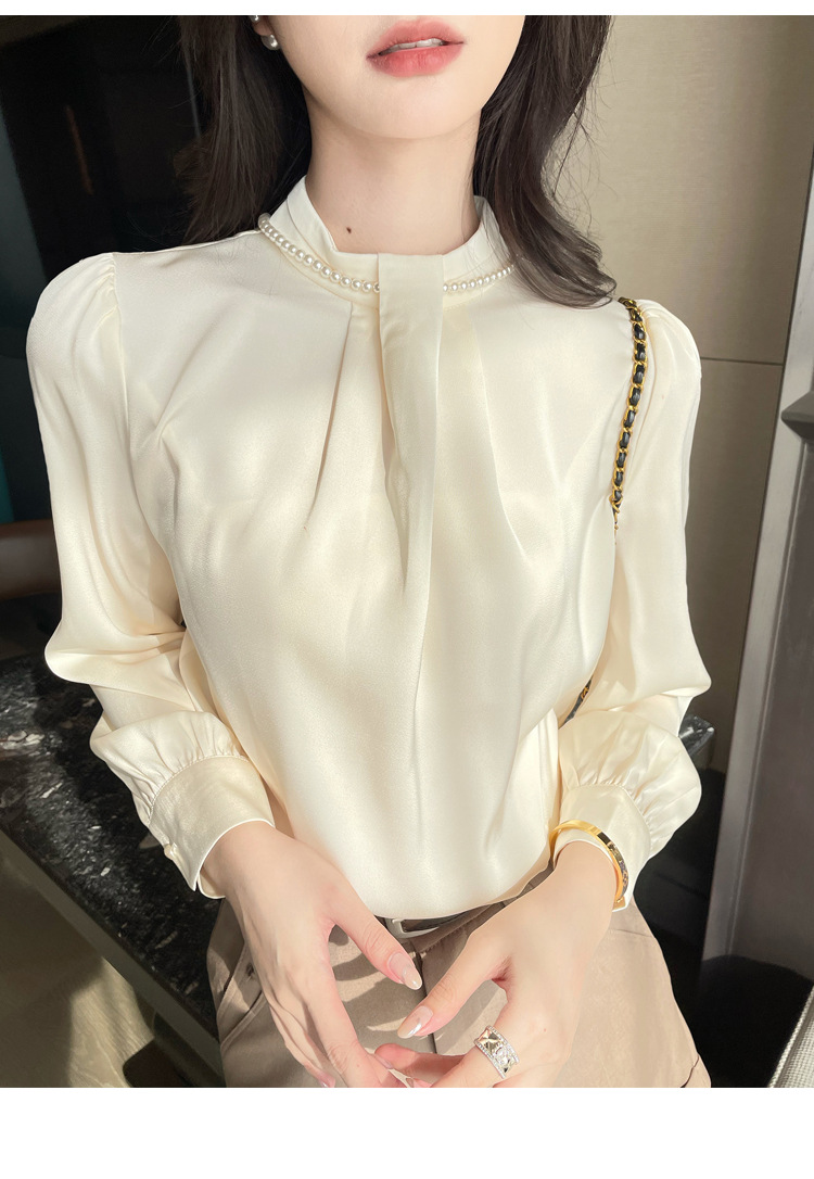 2025秋装新款法式复古气质珍珠衬衫女设计感上衣职业雪纺衫