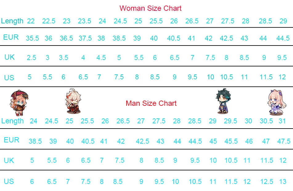 2.Shoes Size (Needed at least) (refer to standard size chart bellow)-(YOU CAN TELL US/UK...Size to transfer EUR Size)