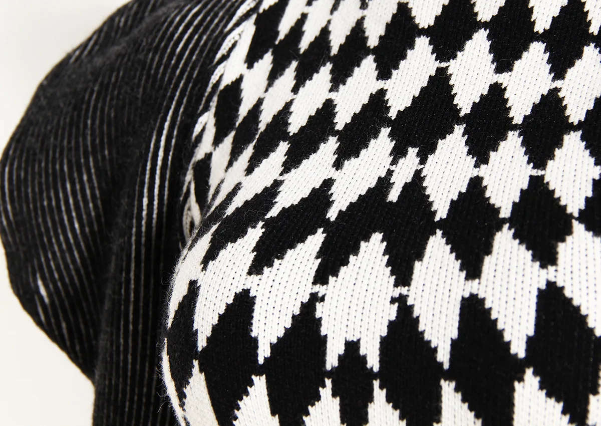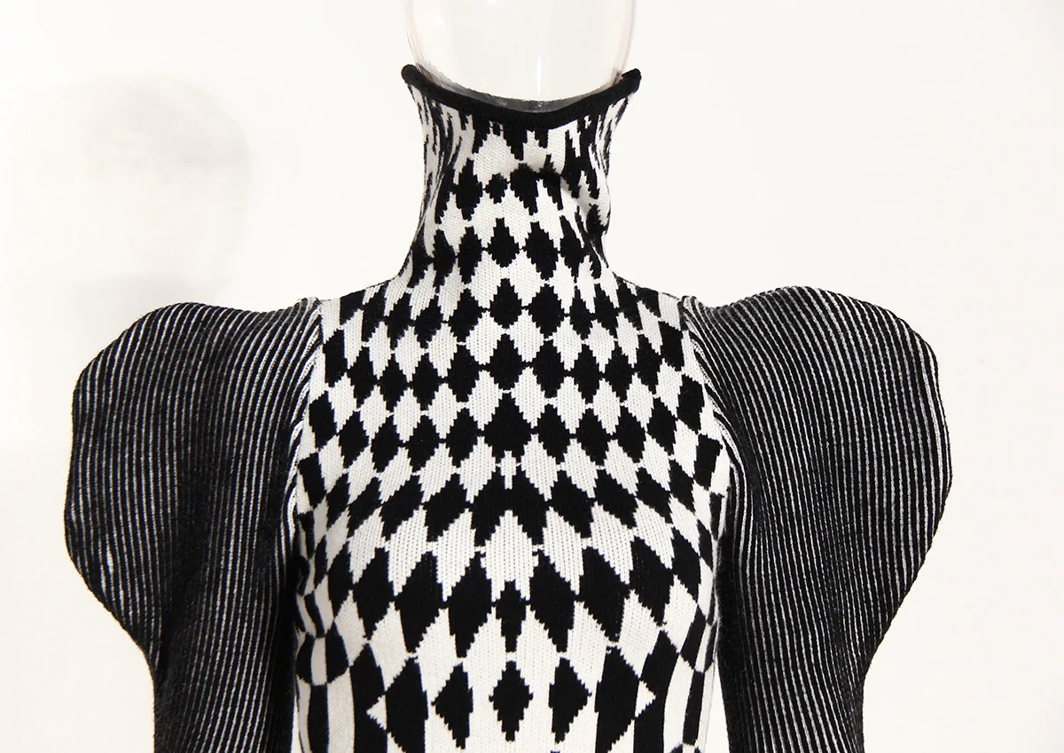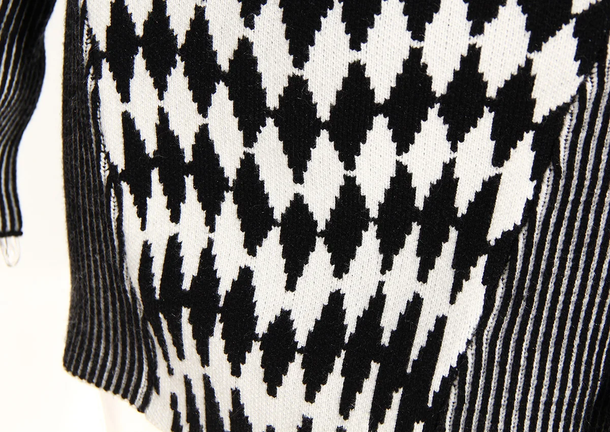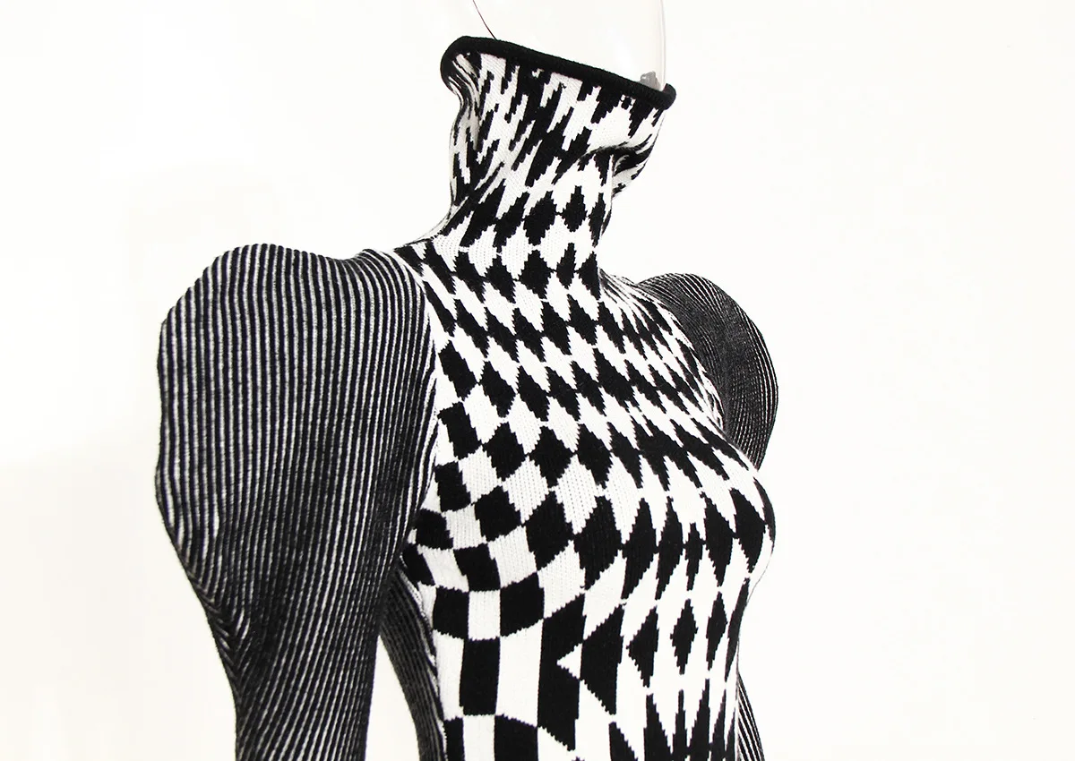 GetSpring Women Dress Autumn Winter Plaid Striped Patchwork Full Sleeve Turtleneck Slim Fit Sweater Short Knitted Dresses