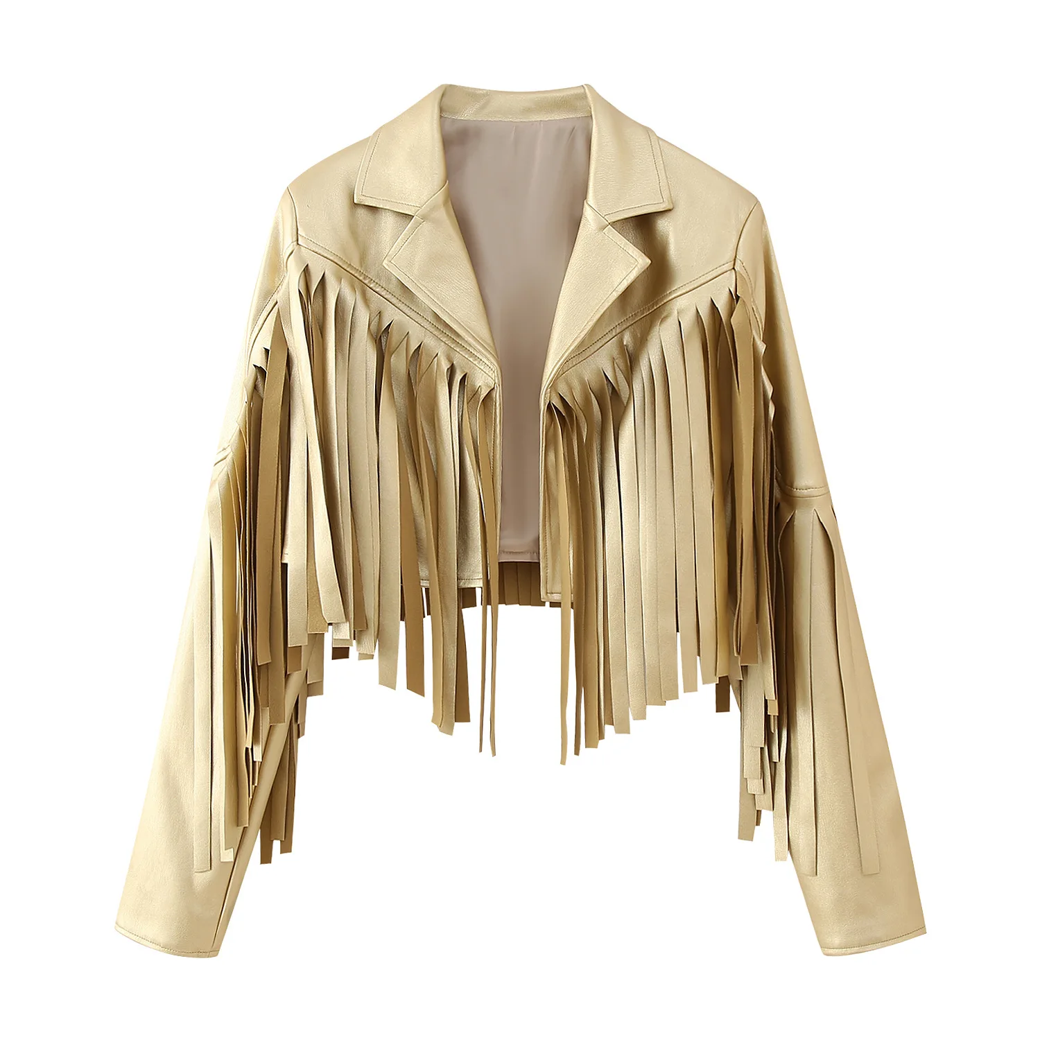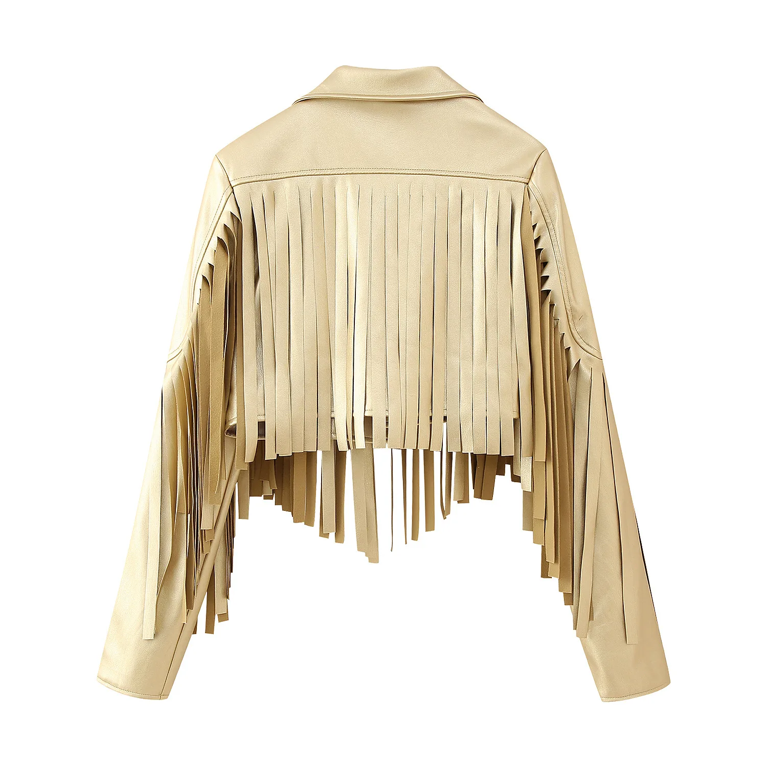 GetSpring Women Leather Coat Autumn New Fashion Simple Classic Tassel Leather Jacket Fashionable All Match Solid Loose Tops